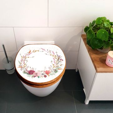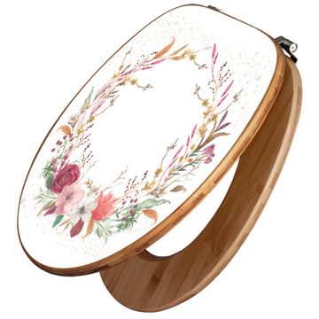 Design WC-Sitz Bambus Holz Motiv Floraler Blumenkranz