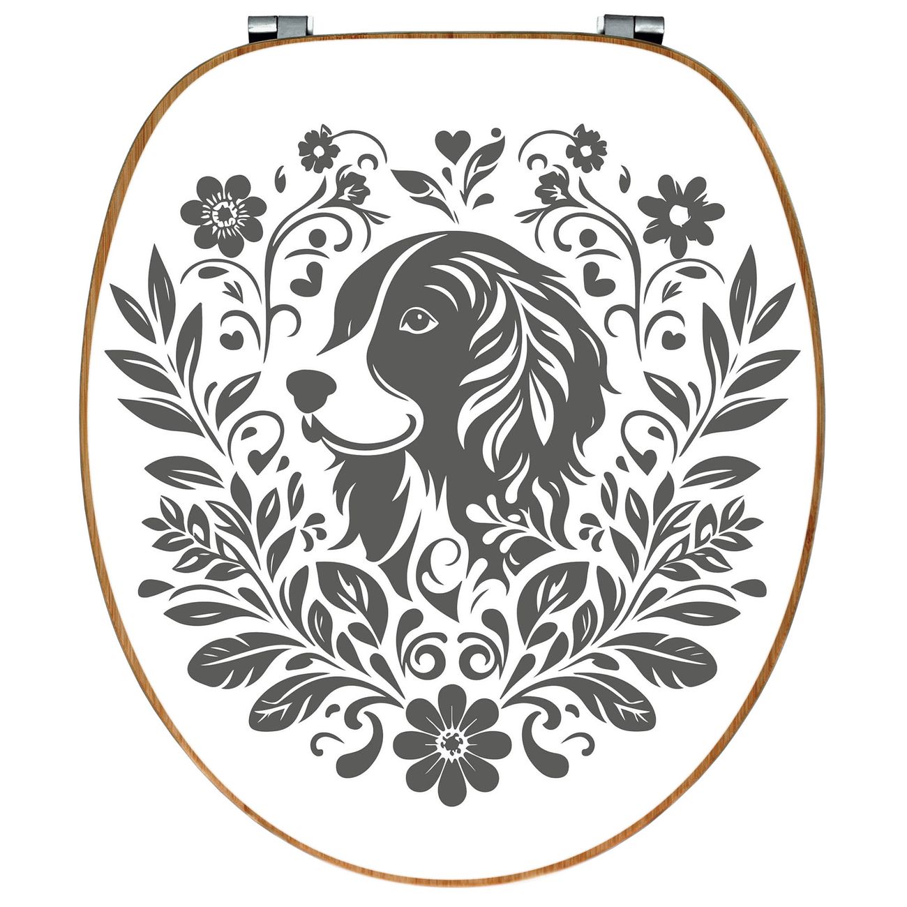 Design WC-Sitz Bambus Holz Motiv Floraler Hund