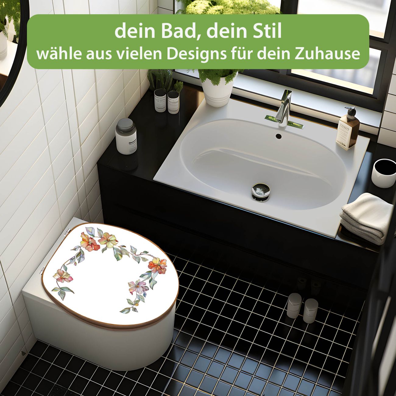Design WC-Sitz Bambus Holz Motiv Floraler Rahmen