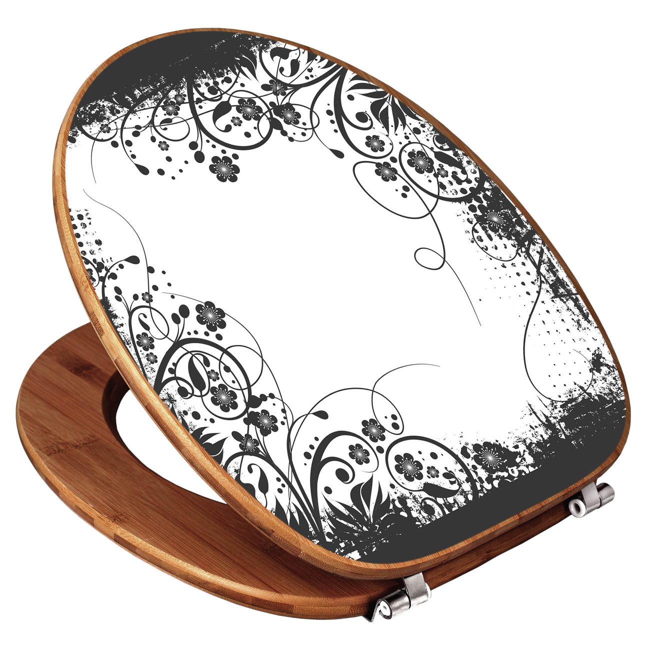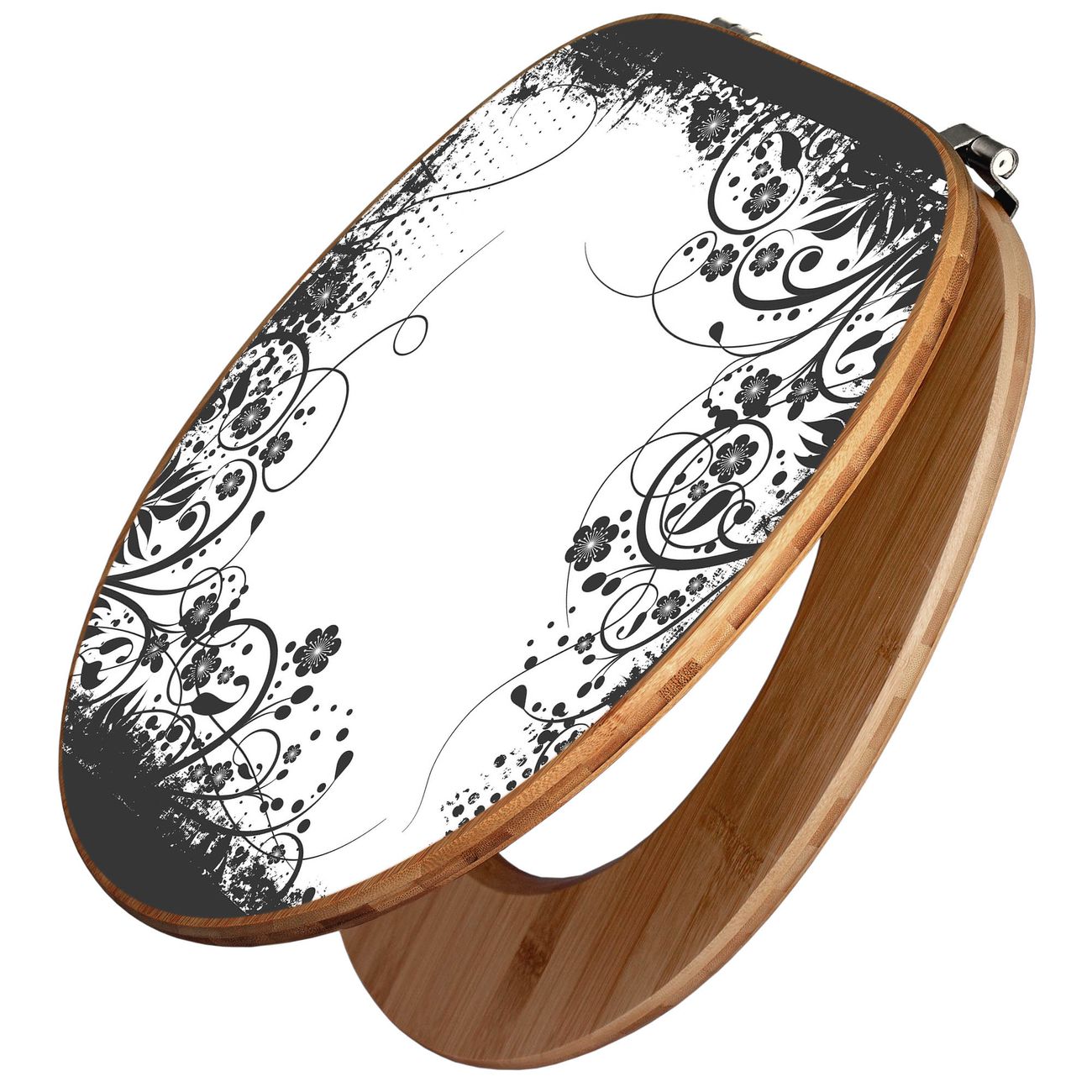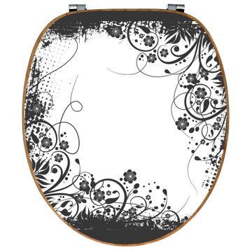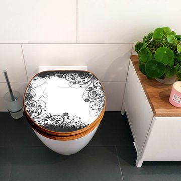 Design WC-Sitz Bambus Holz Motiv Florales Schwarz-Weiß Muster