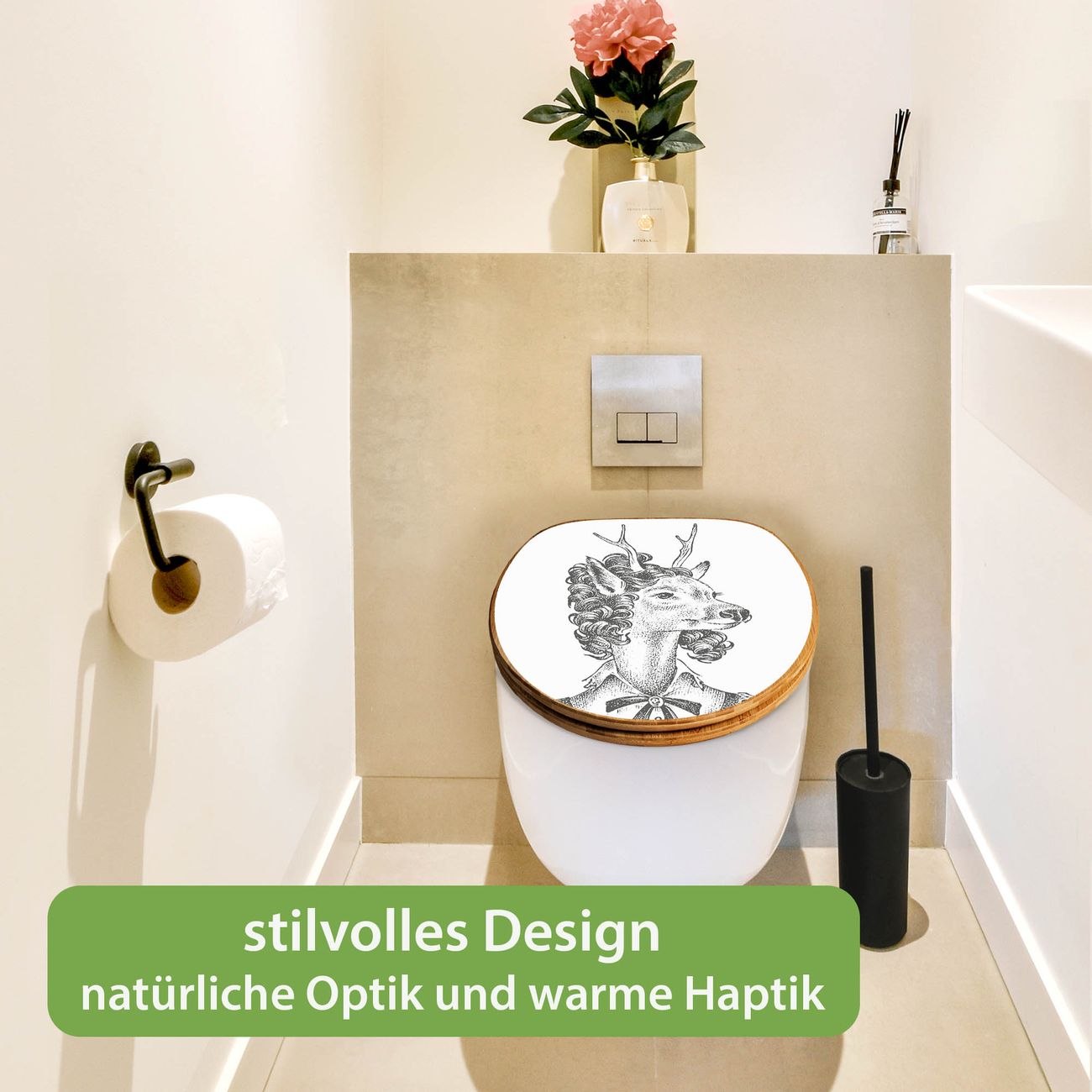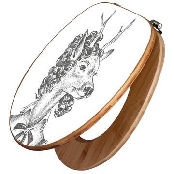 Design WC-Sitz Bambus Holz Motiv Frau Hirsch 2