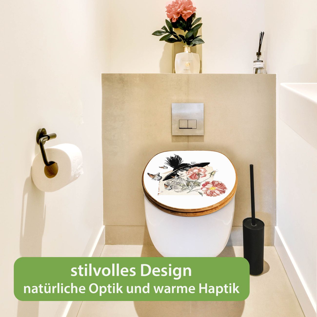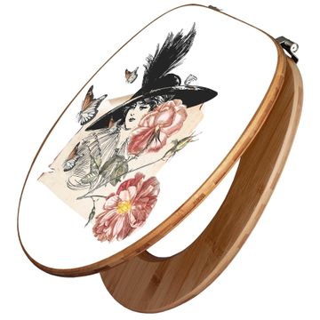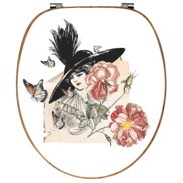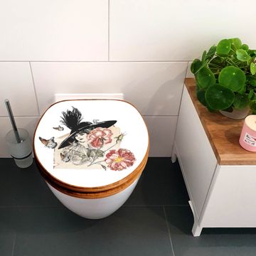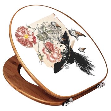 Design WC-Sitz Bambus Holz Motiv Frau und Blühten Vintage
