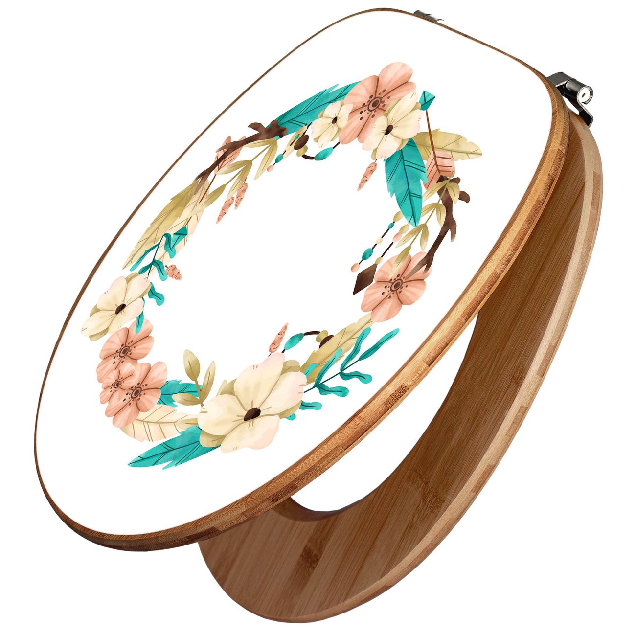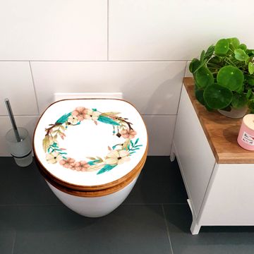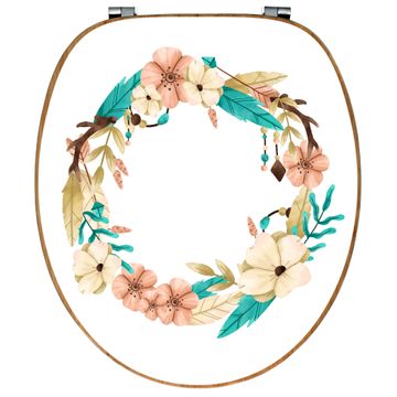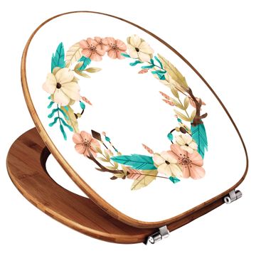 Design WC-Sitz Bambus Holz Motiv Frühlingsblütenkranz