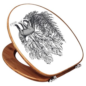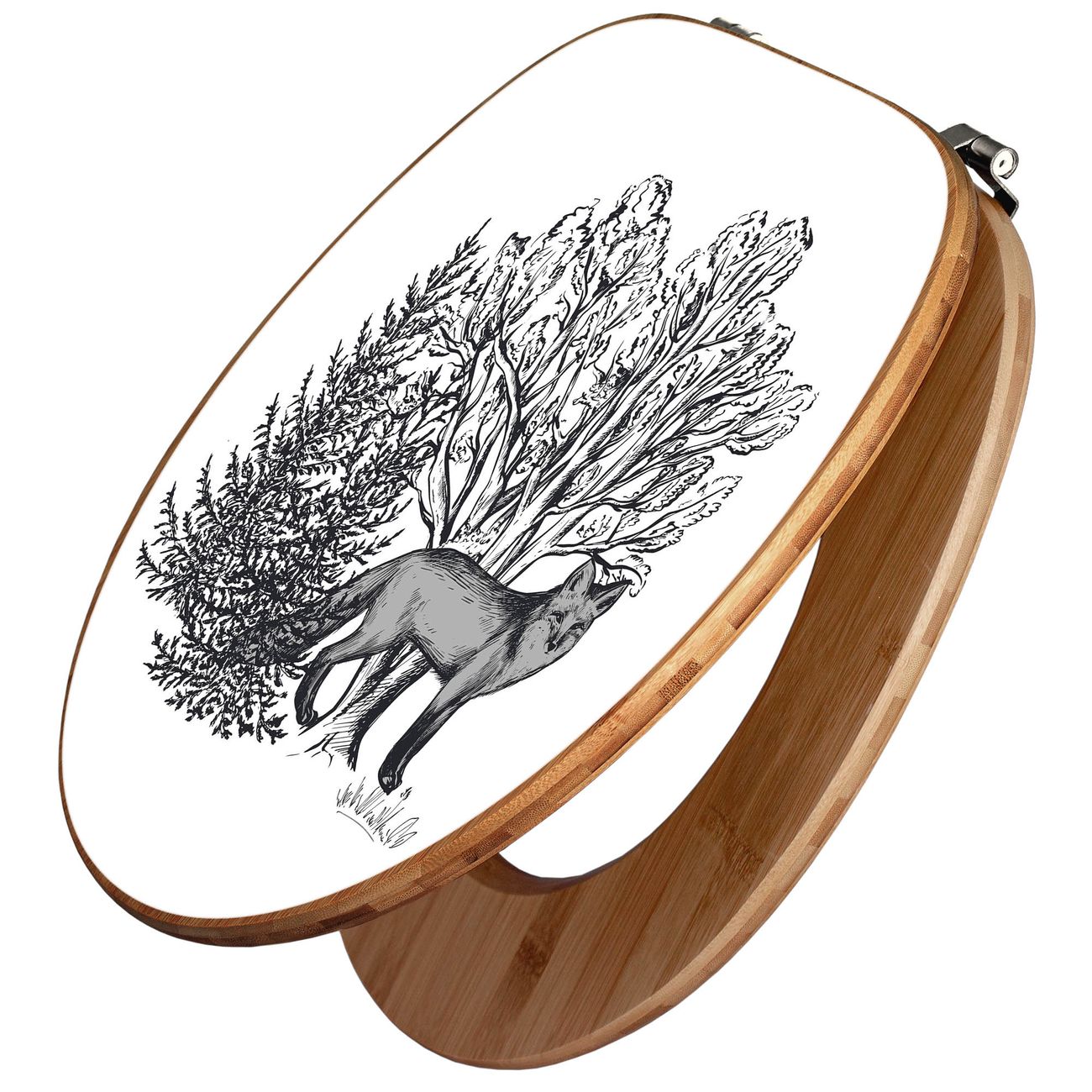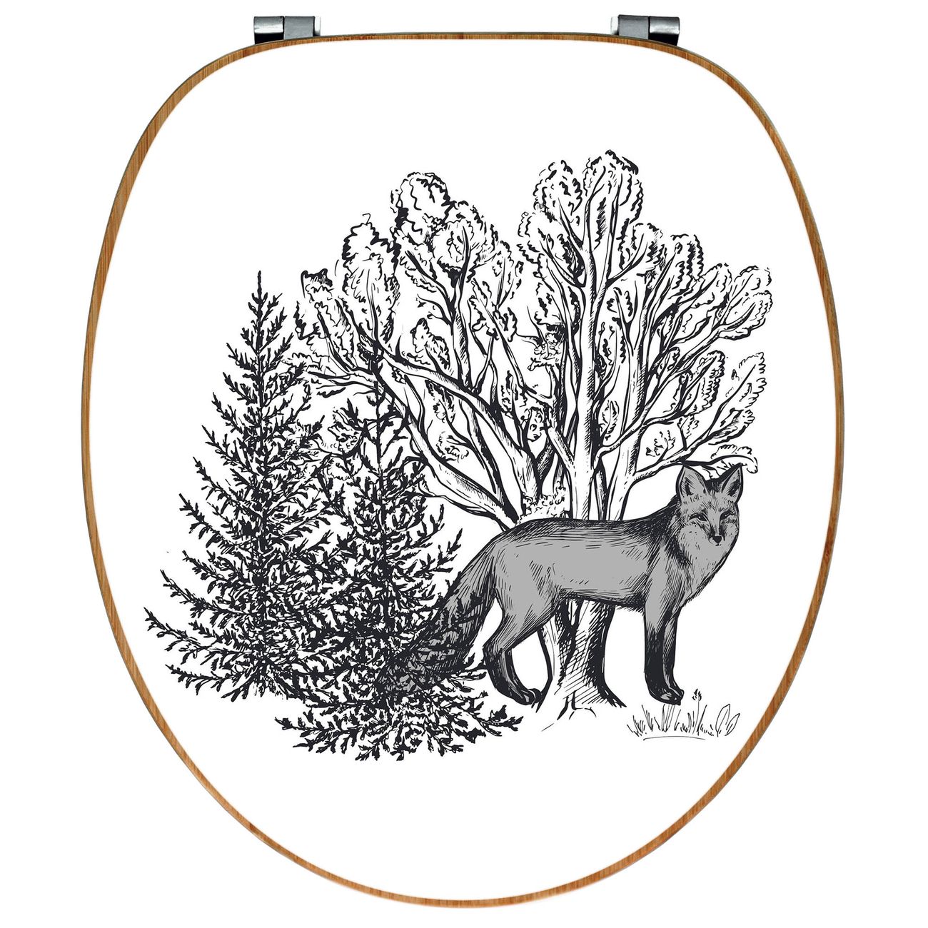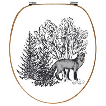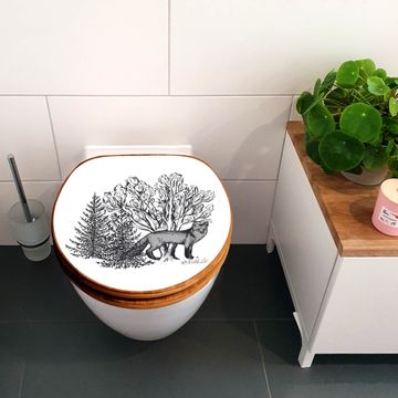 Design WC-Sitz Bambus Holz Motiv Fuchs in Schwarz-Weiß