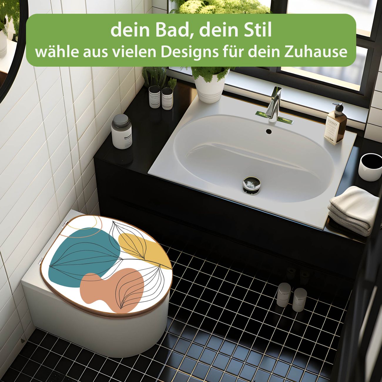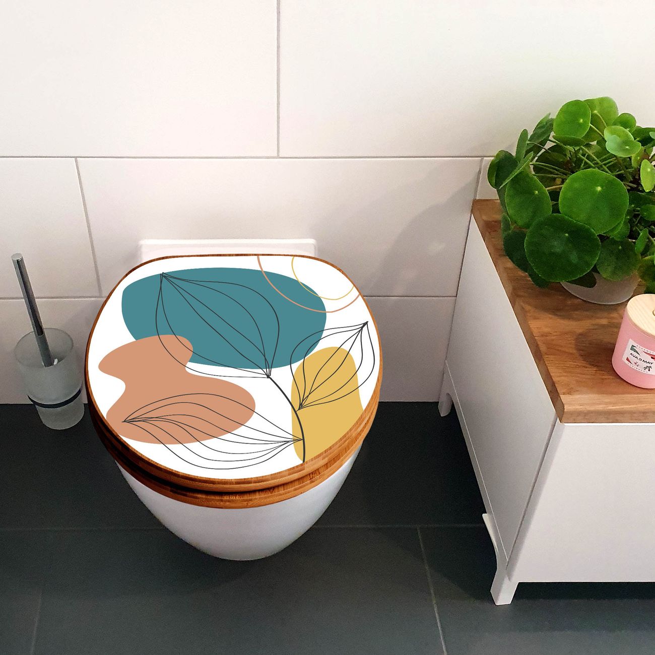 Design WC-Sitz Bambus Holz Motiv Geometrische Blätter Lineart