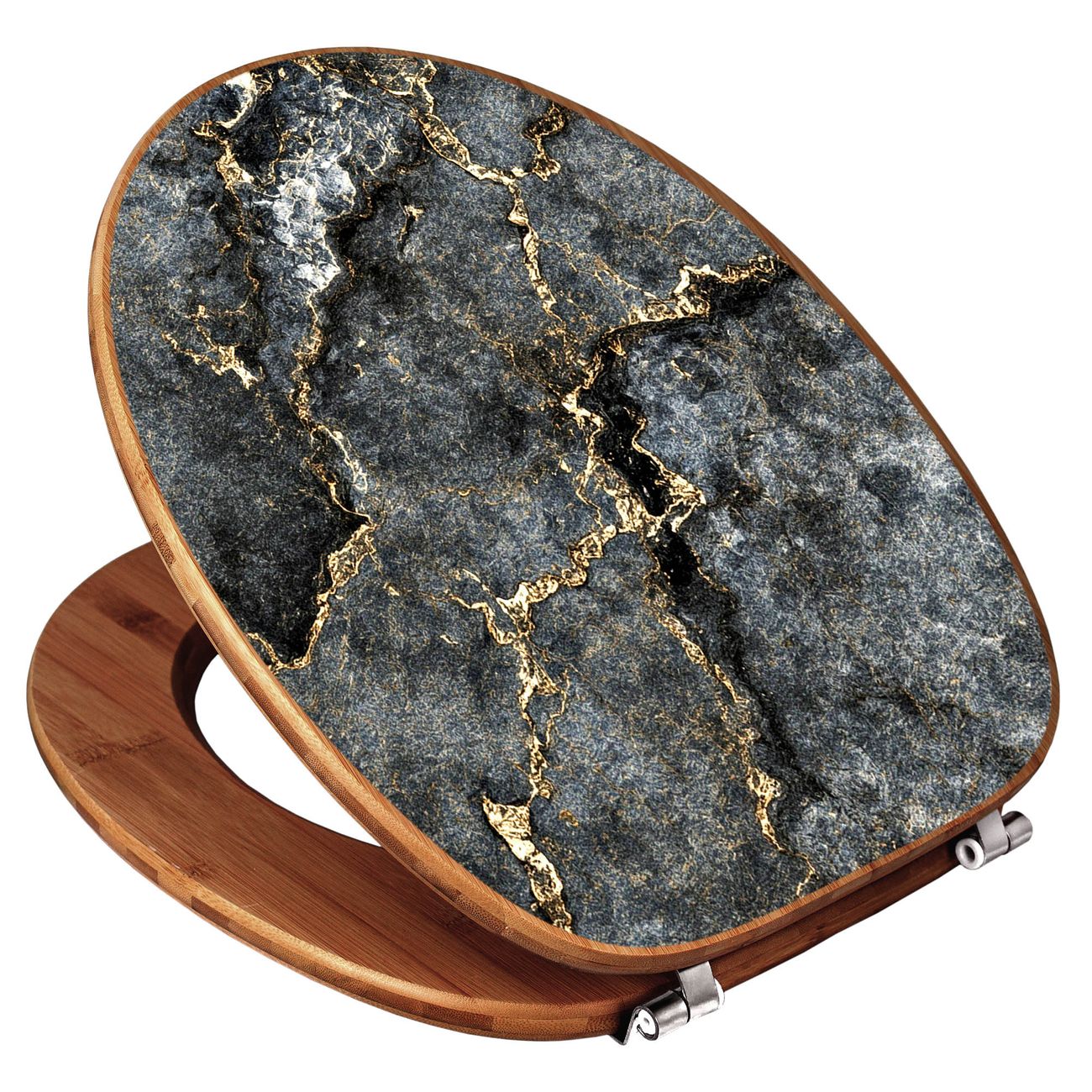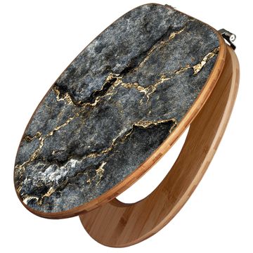 Design WC-Sitz Bambus Holz Motiv grauer Marmor mit Gold 2