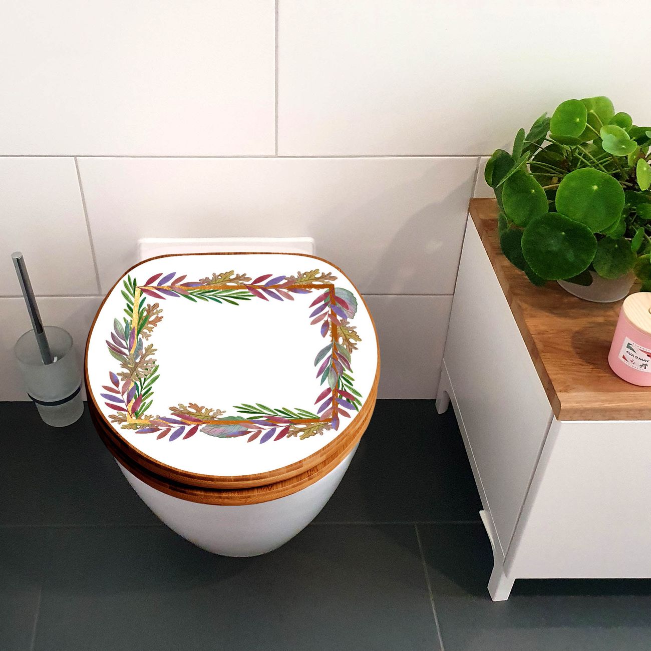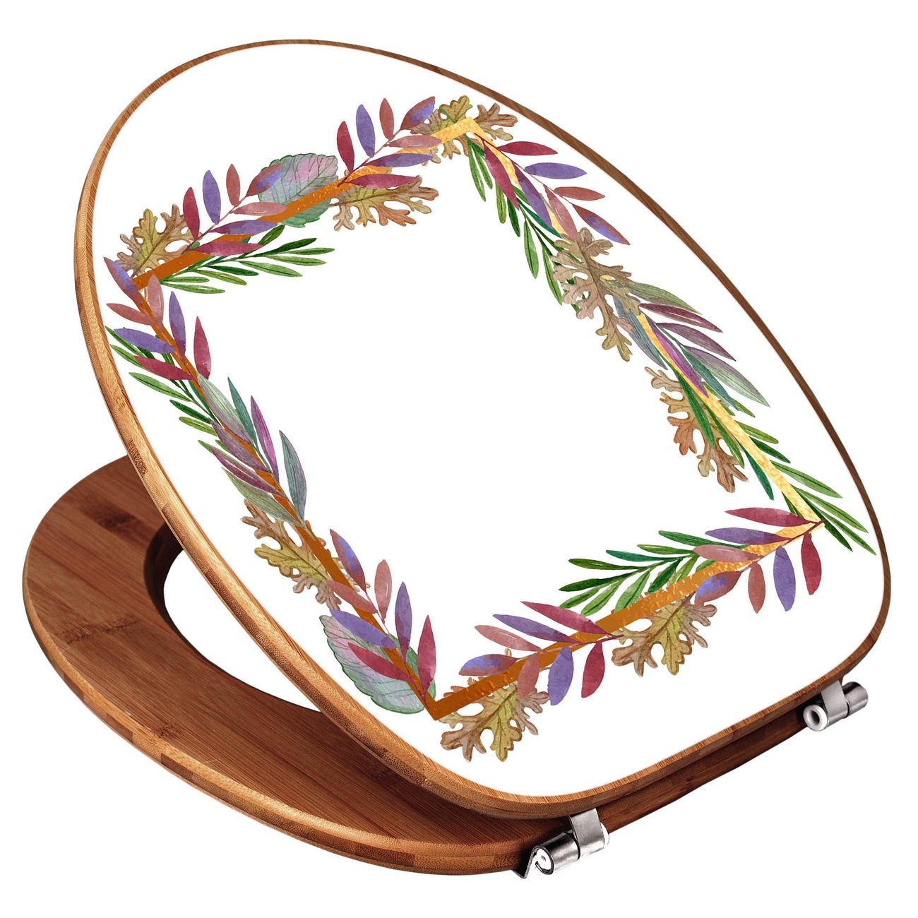 Design WC-Sitz Bambus Holz Motiv Herbstliche Blattgirlande