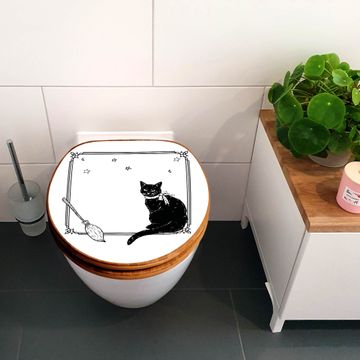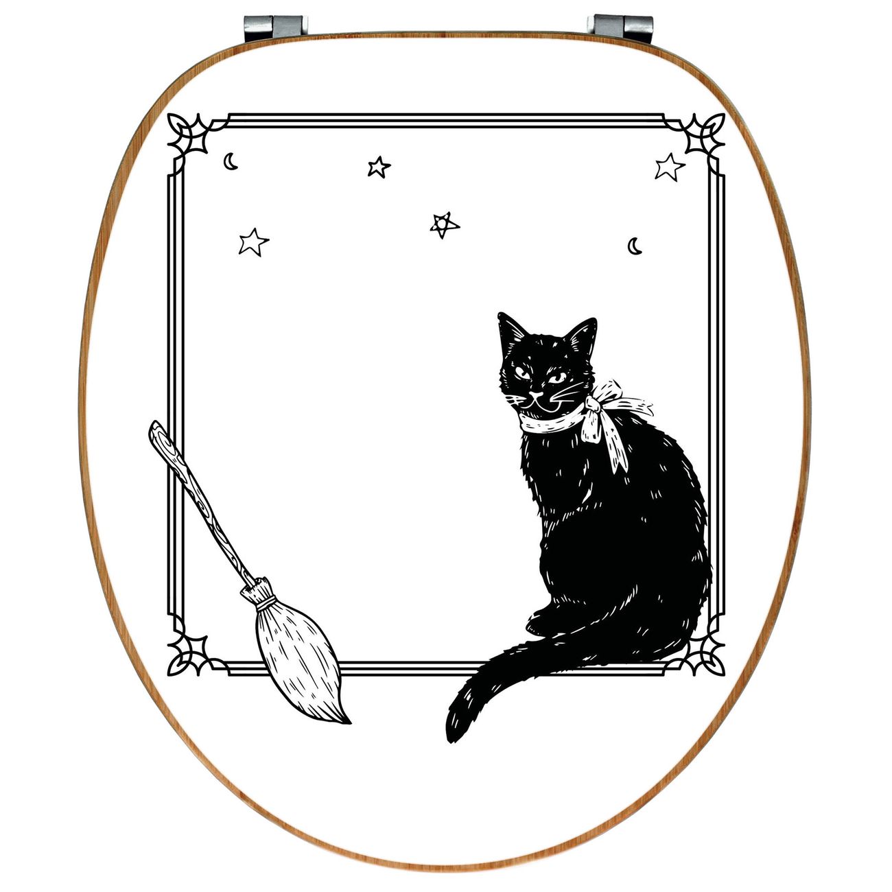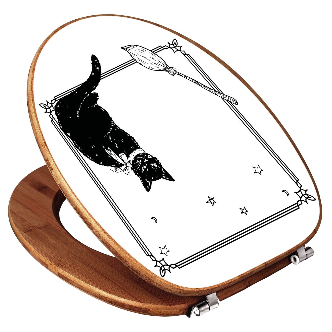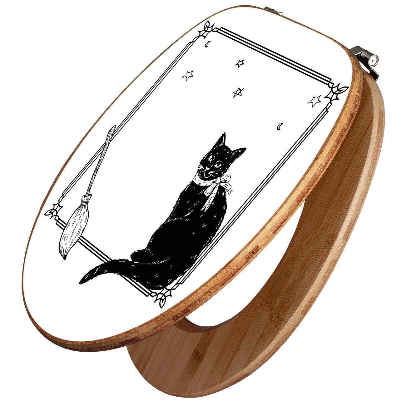 Design WC-Sitz Bambus Holz Motiv Hexen und Kater