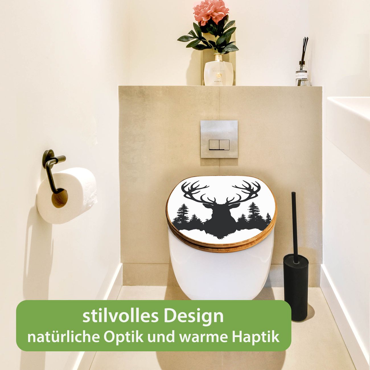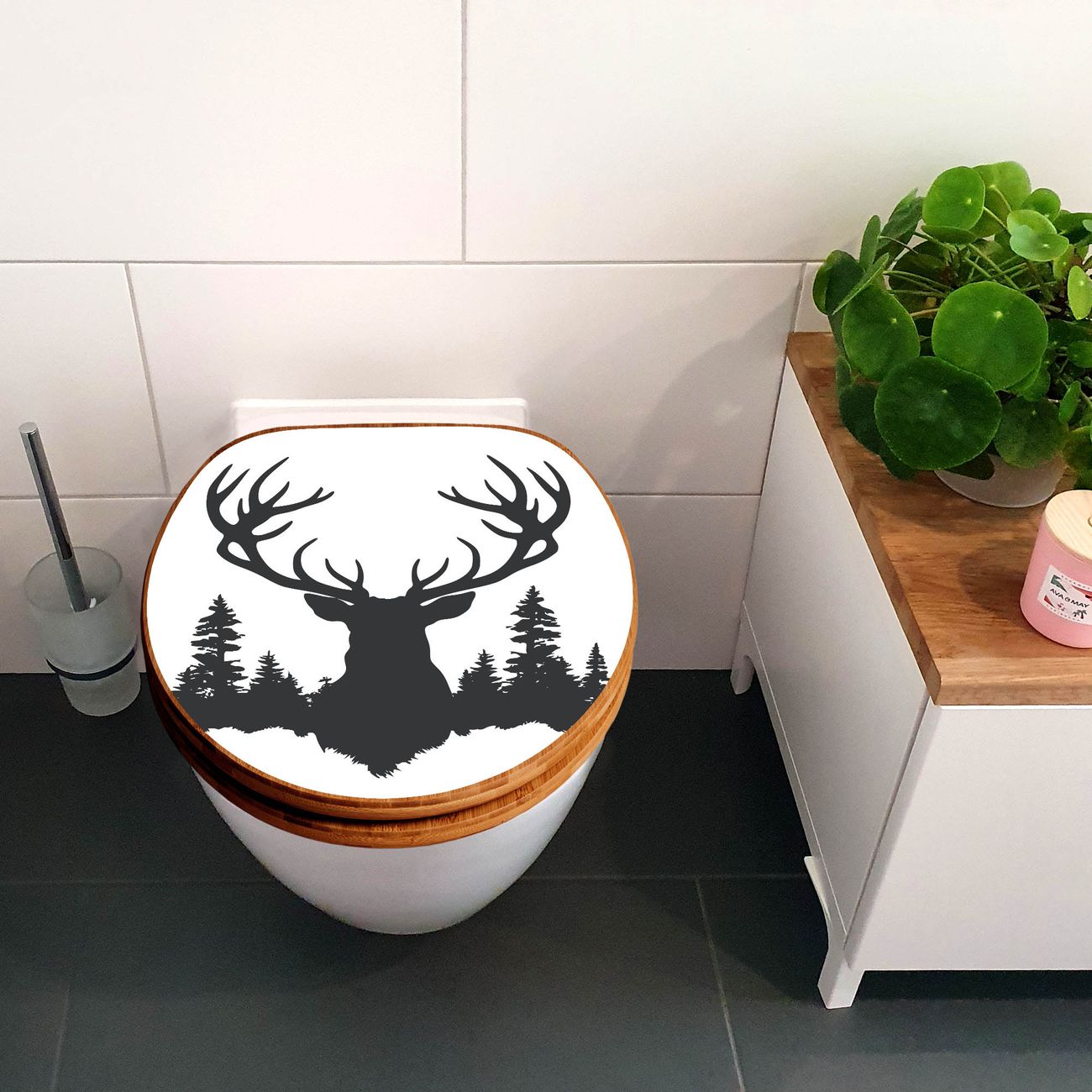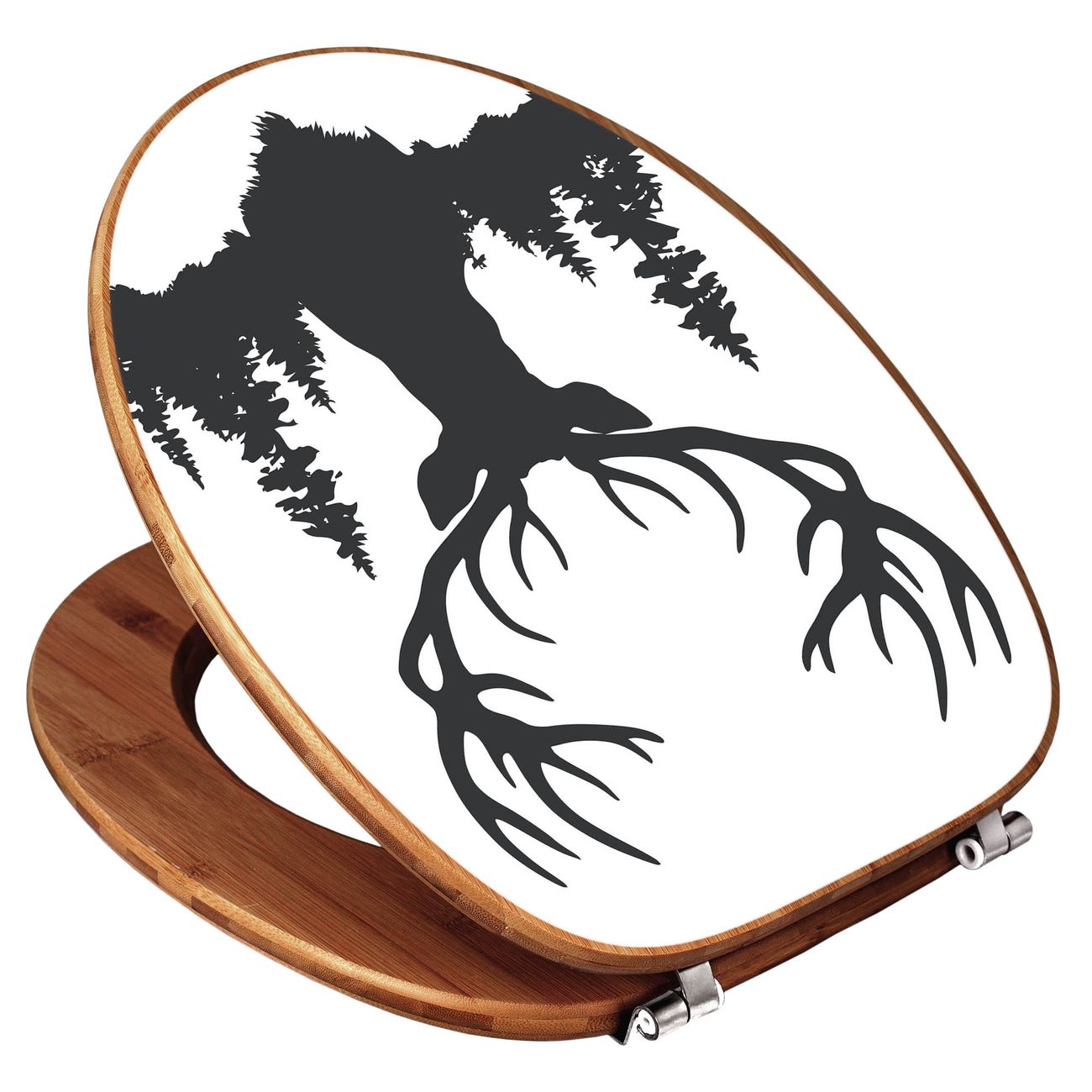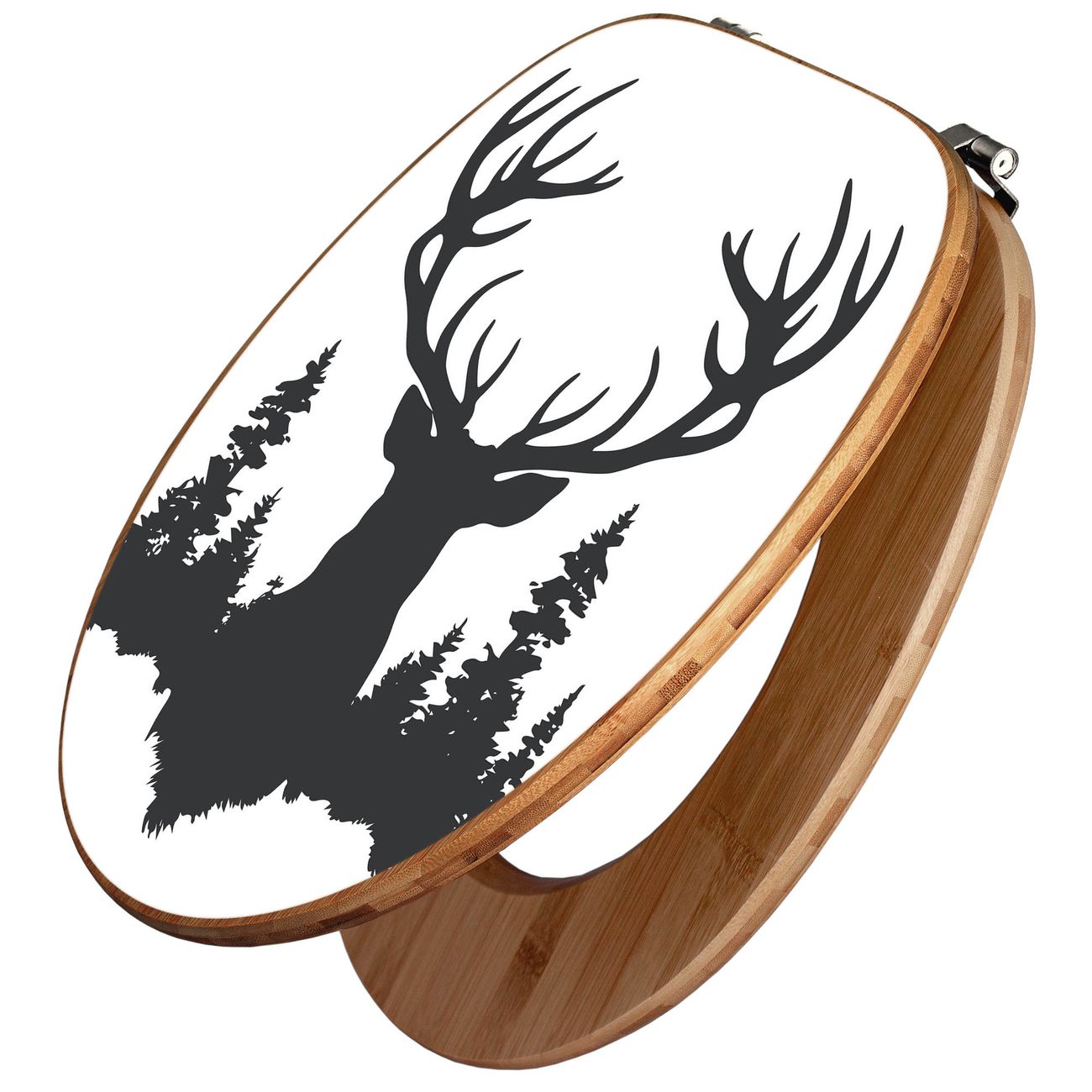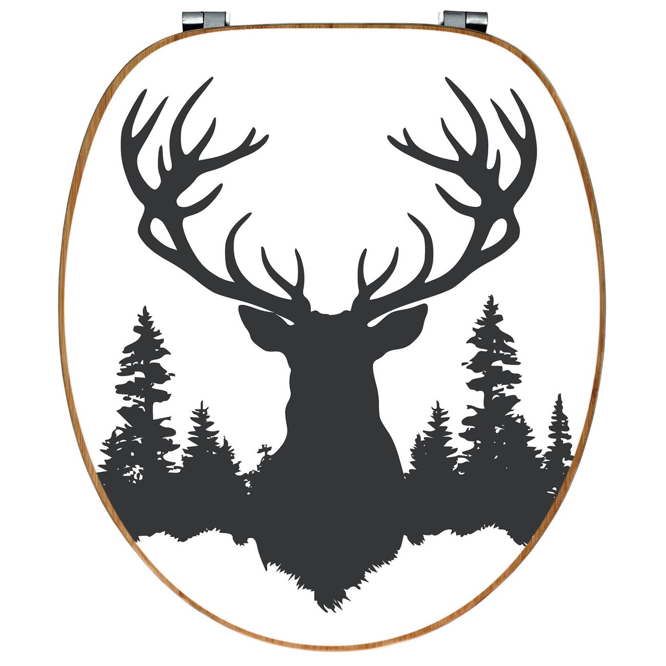 Design WC-Sitz Bambus Holz Motiv Hirsch im Wald Silhouette