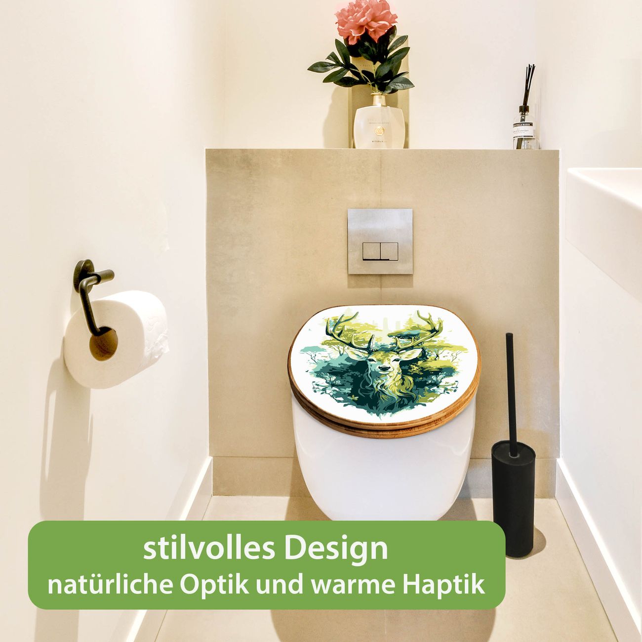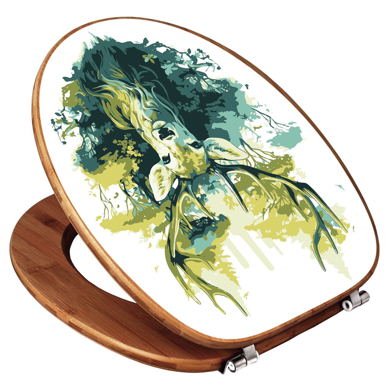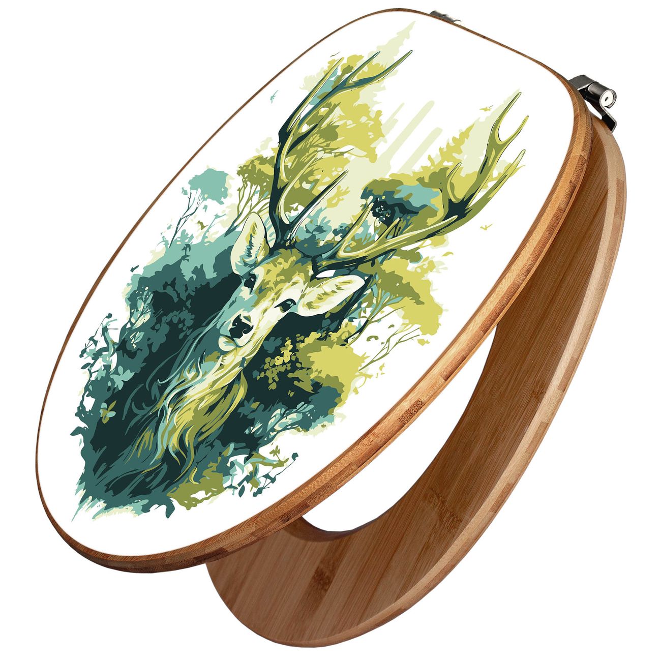 Design WC-Sitz Bambus Holz Motiv Hirsch Wald Aquarell