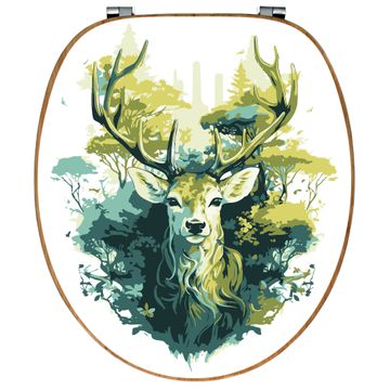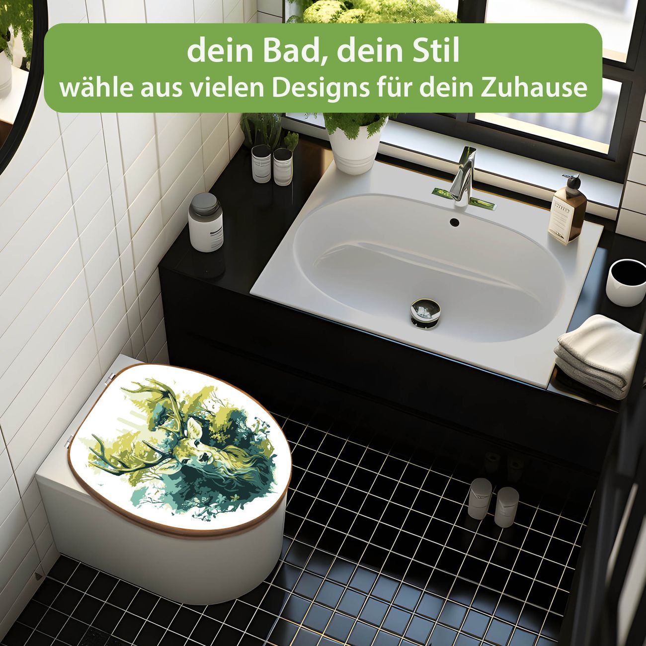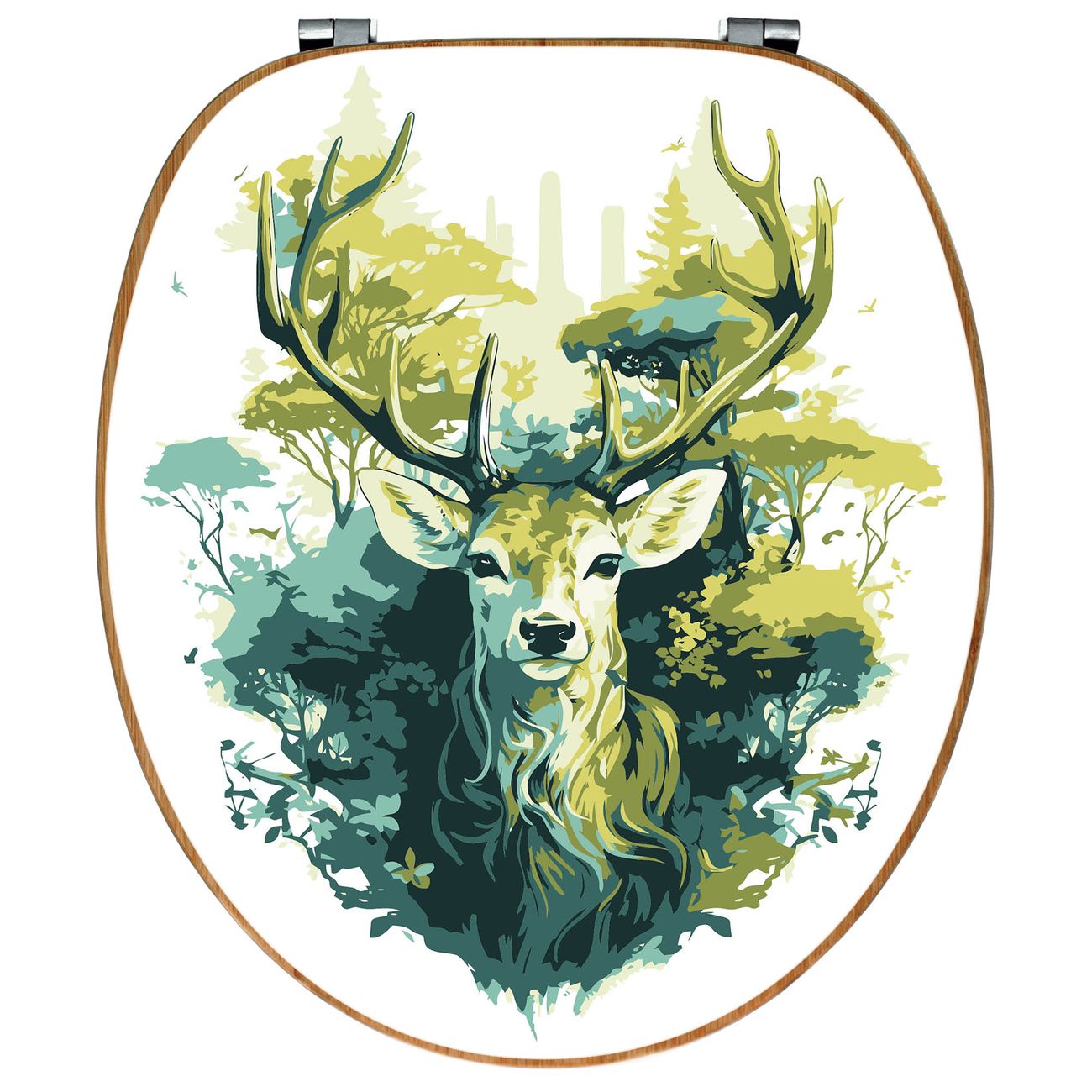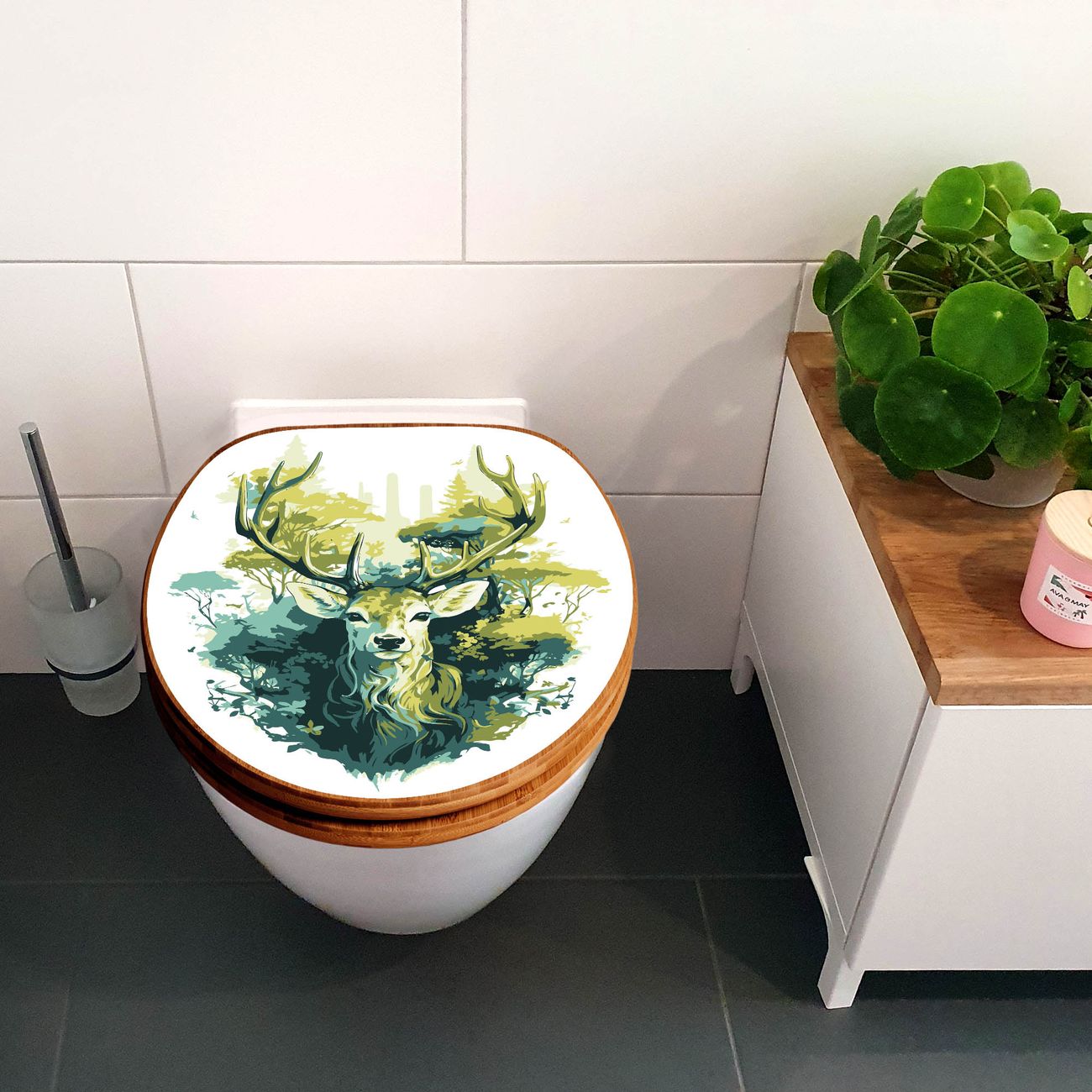 Design WC-Sitz Bambus Holz Motiv Hirsch Wald Aquarell