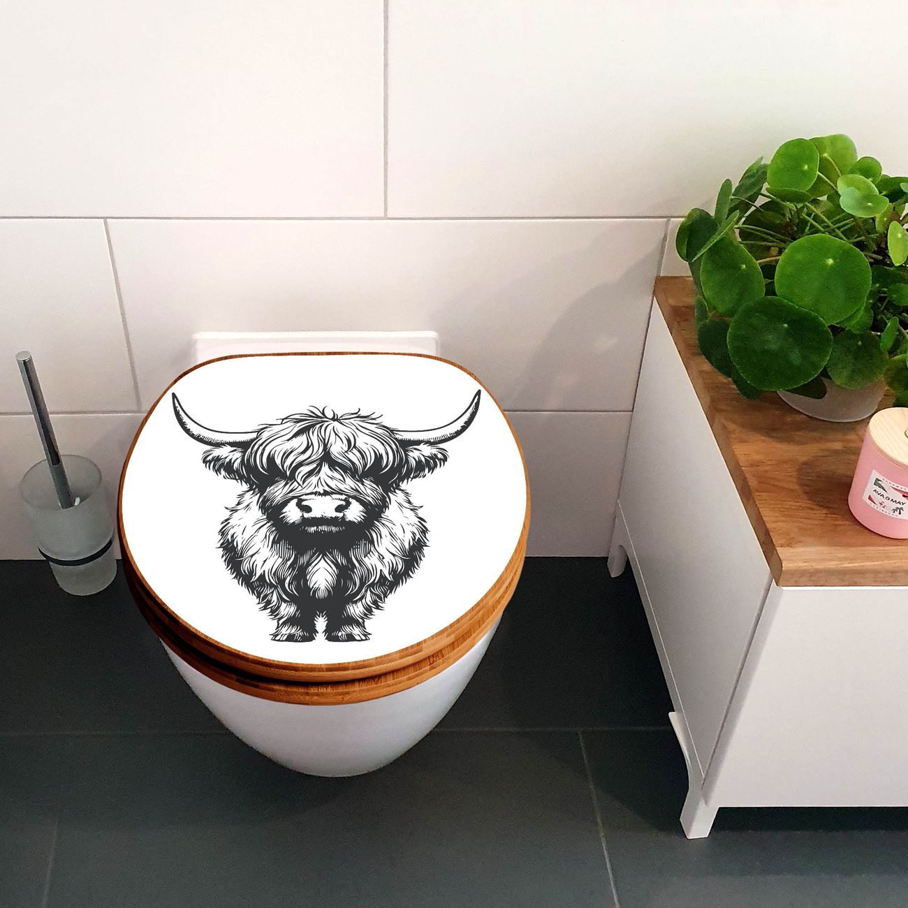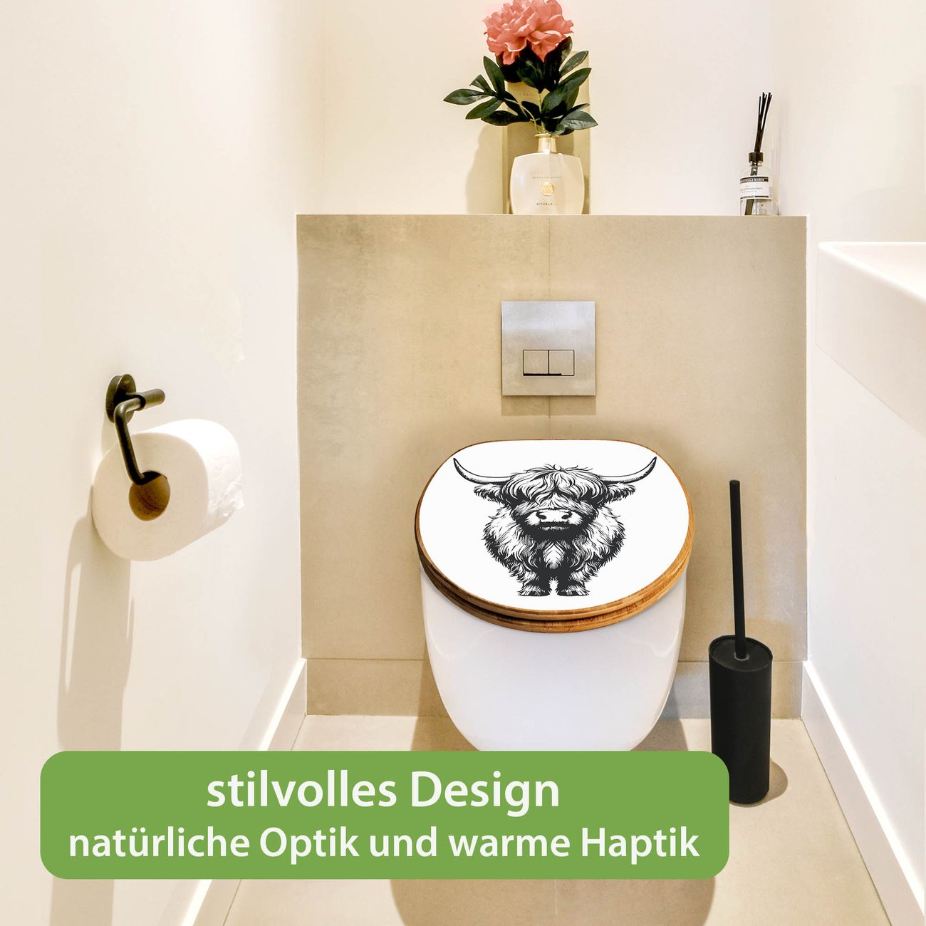 Design WC-Sitz Bambus Holz Motiv Hochlandrind