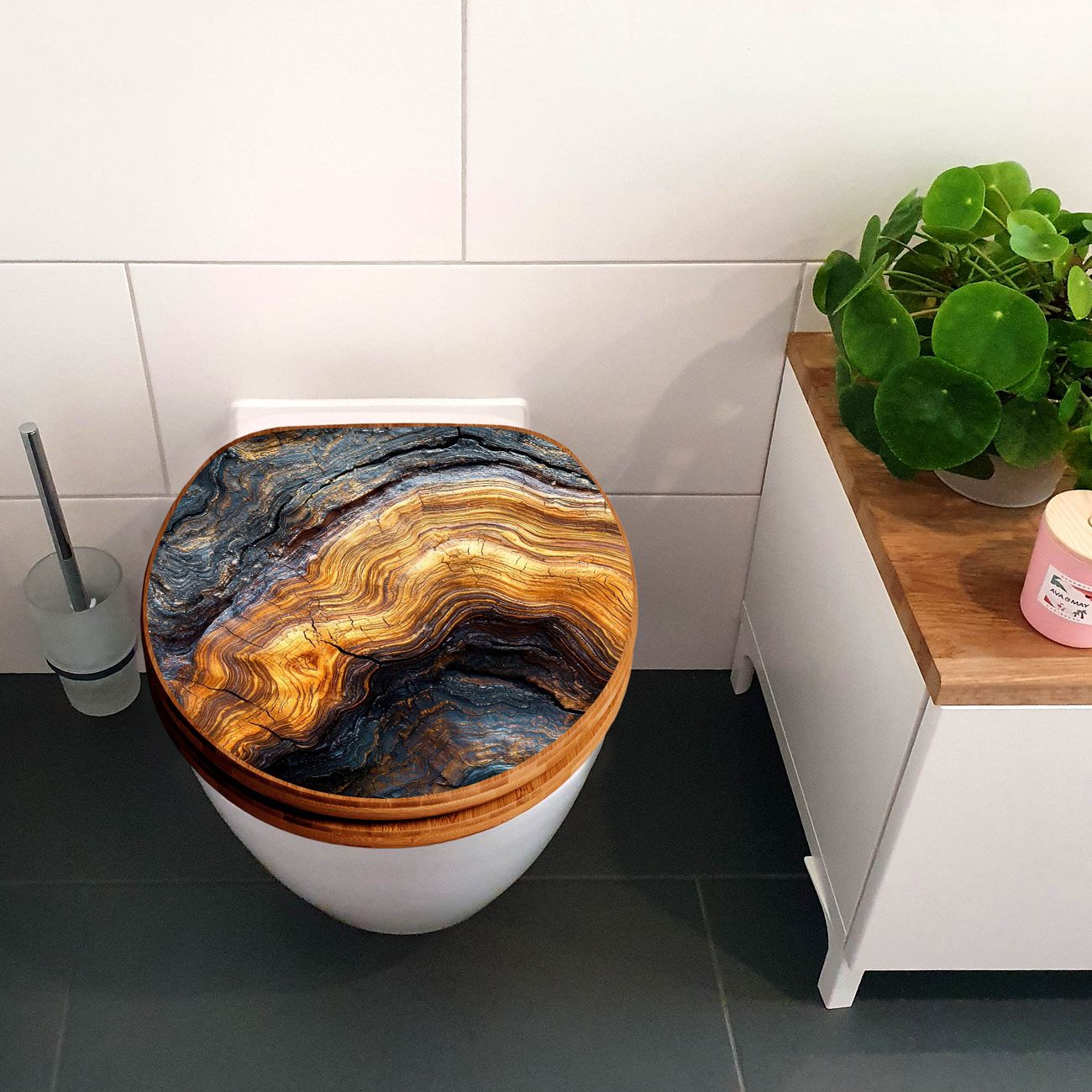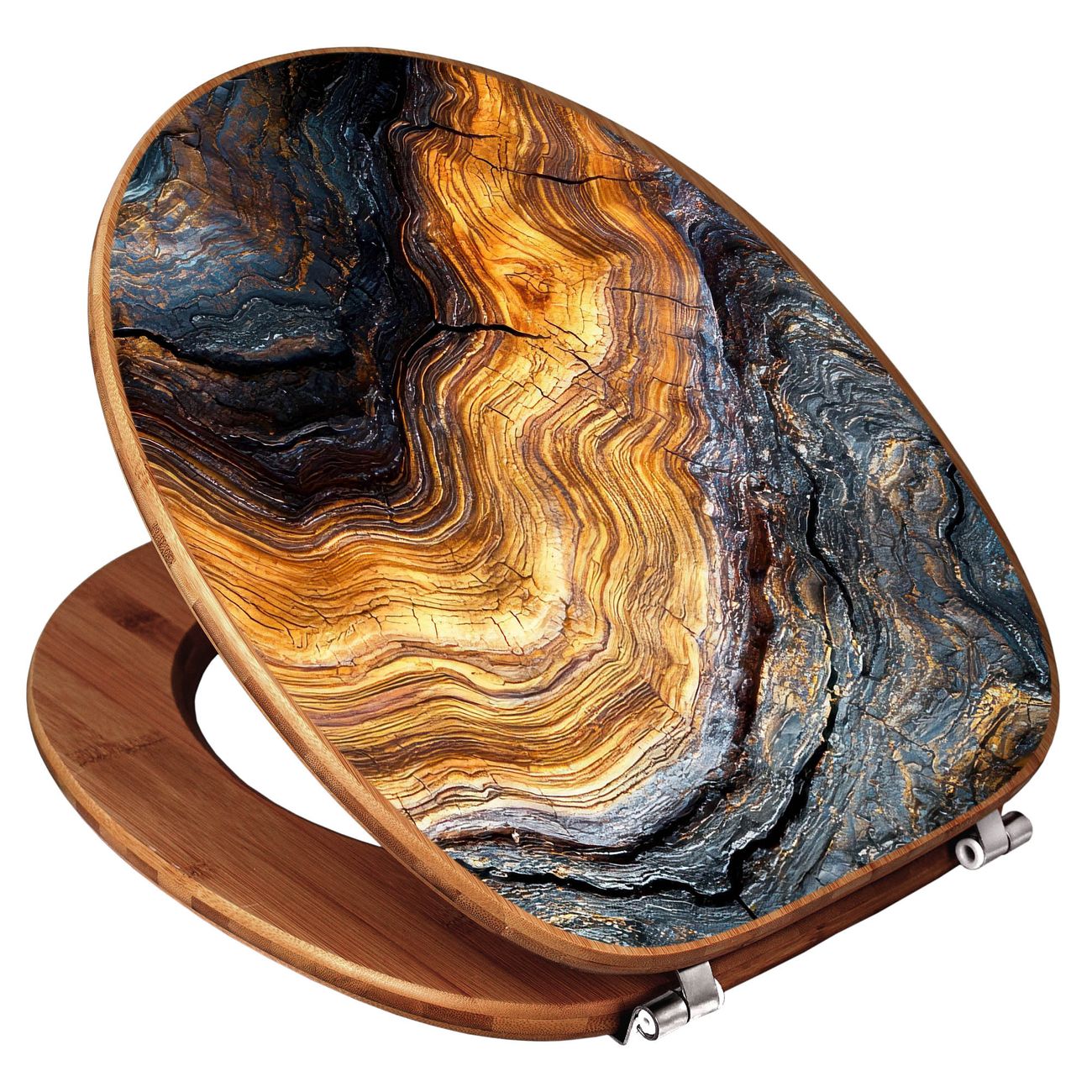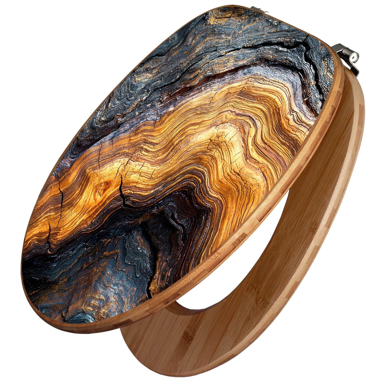 Design WC-Sitz Bambus Holz Motiv Holz Gemasert Fluss Gold