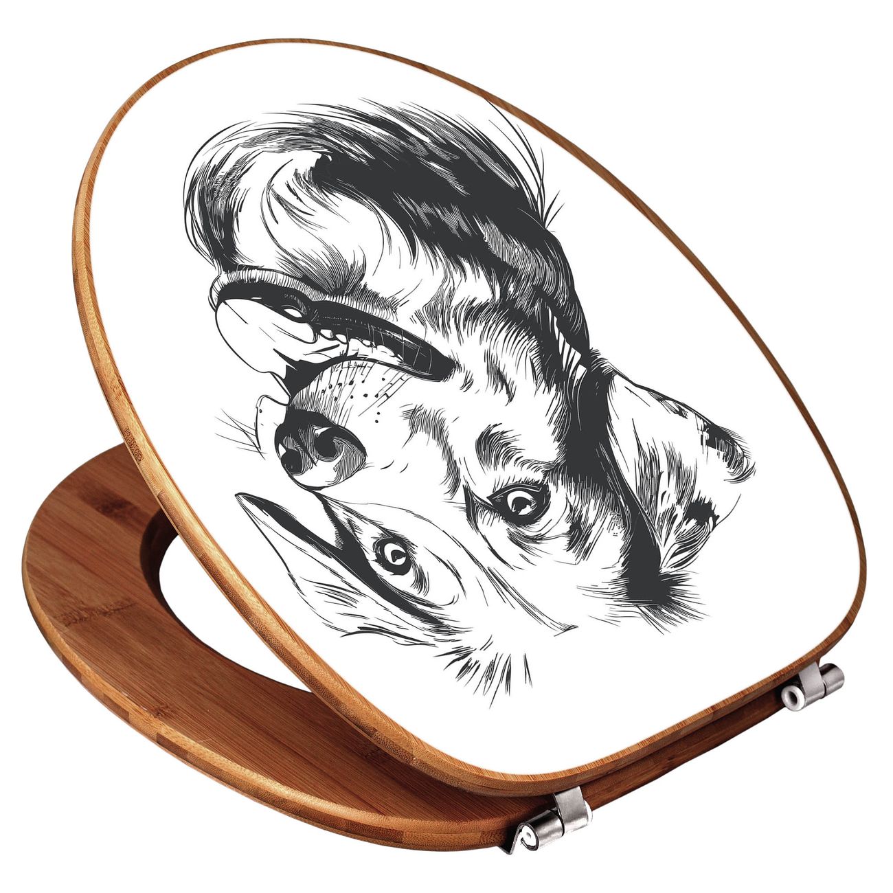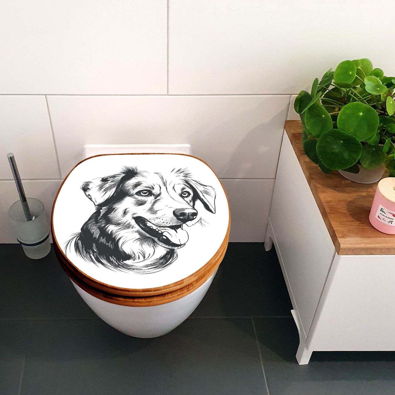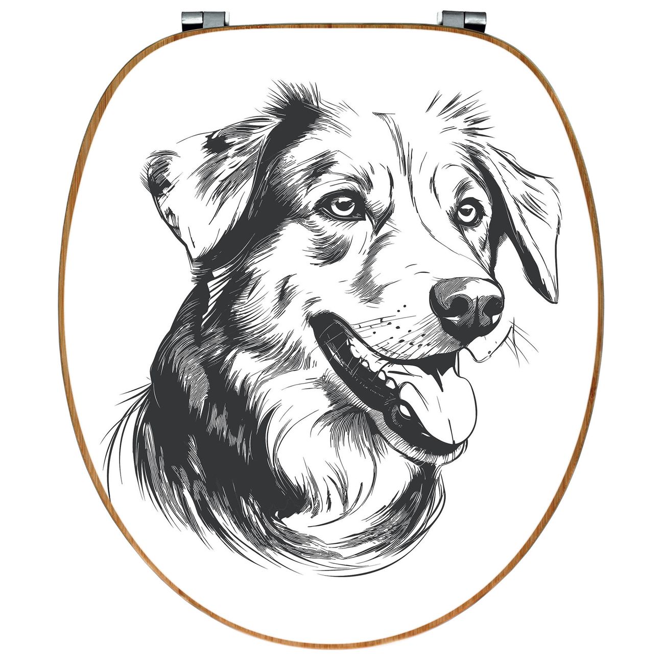 Design WC-Sitz Bambus Holz Motiv Hund Illustration