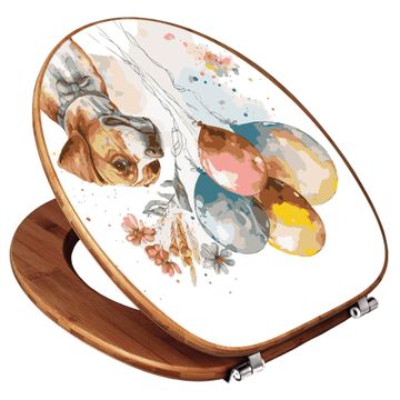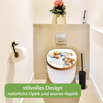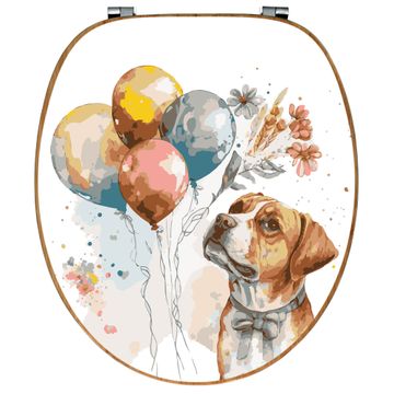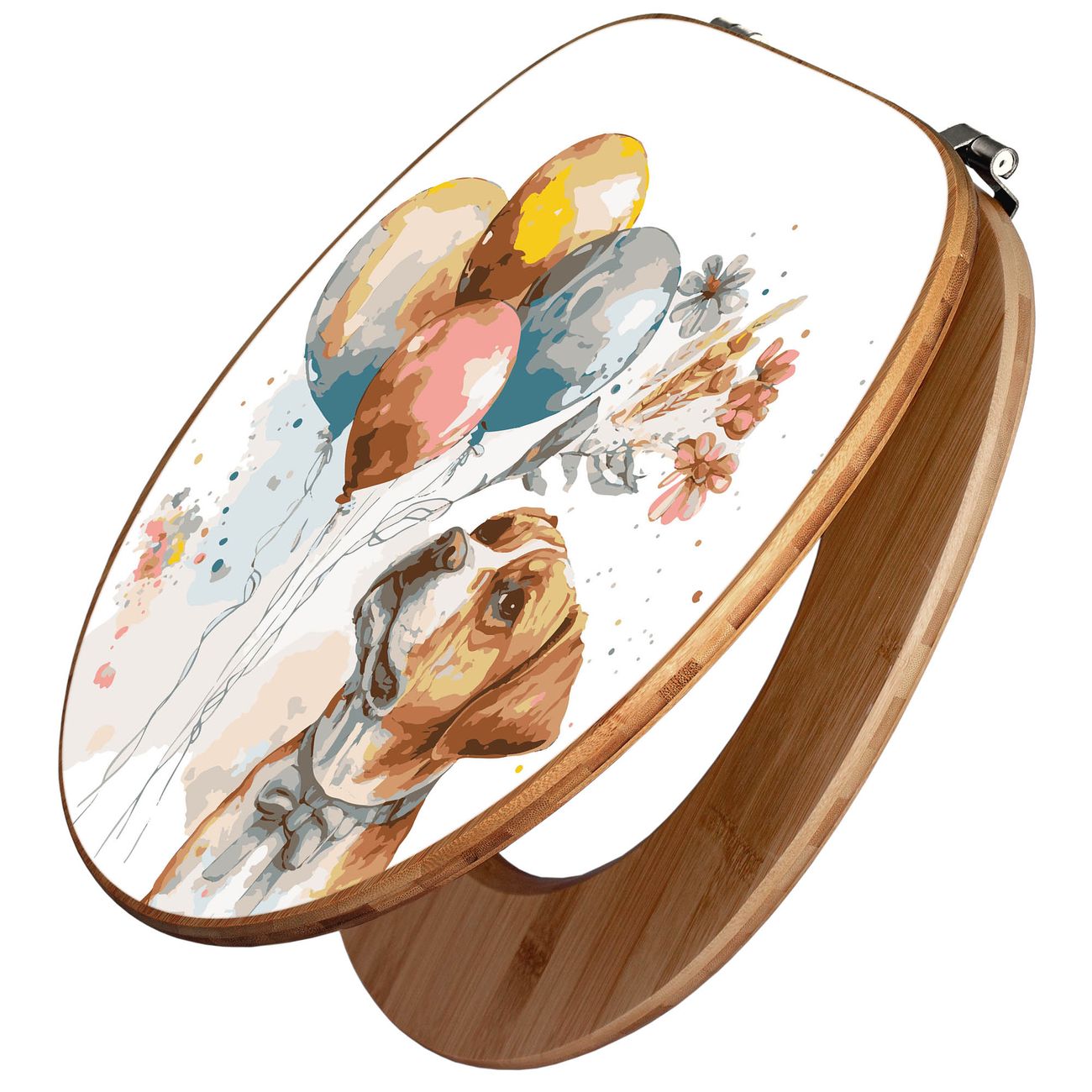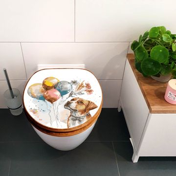Design WC-Sitz Bambus Holz Motiv Hund mit Ballons Aquarell