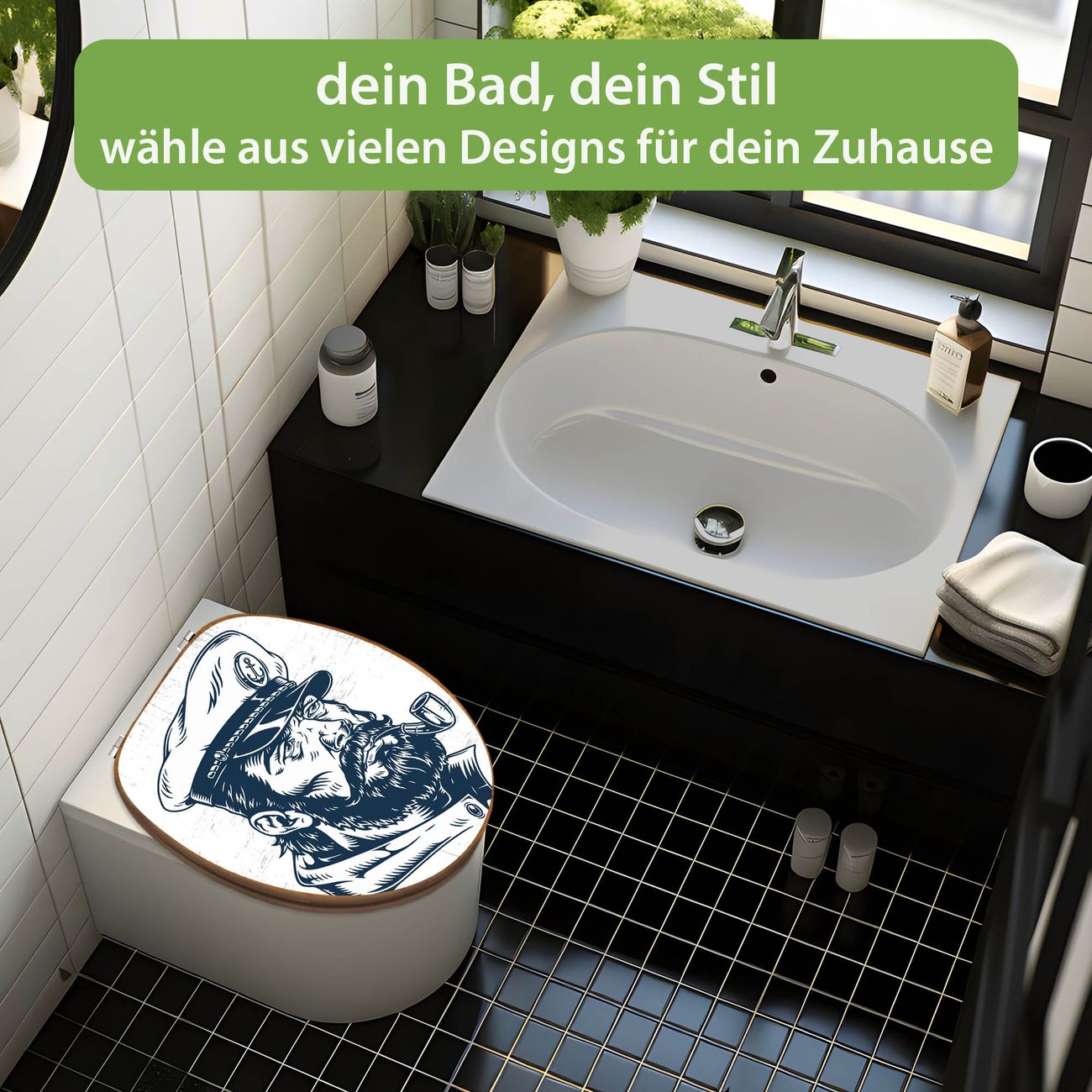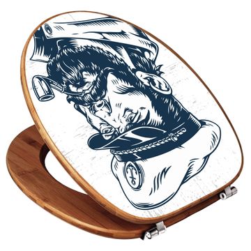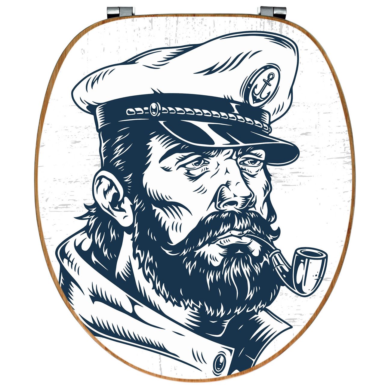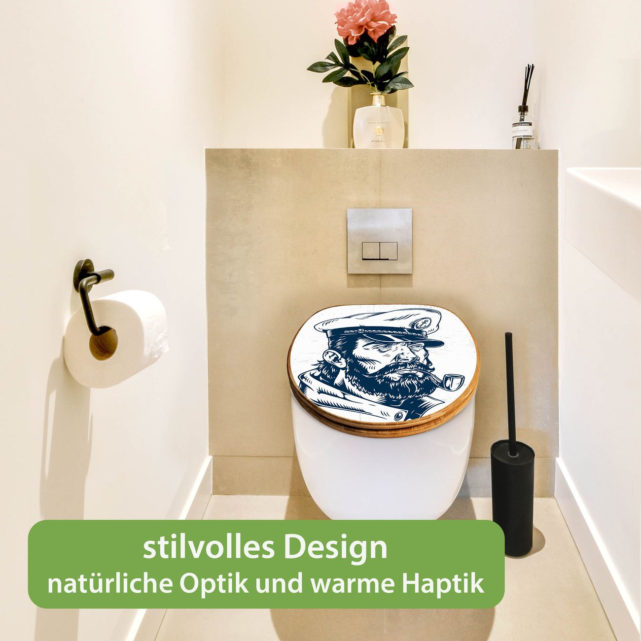 Design WC-Sitz Bambus Holz Motiv Kapitän Portrait