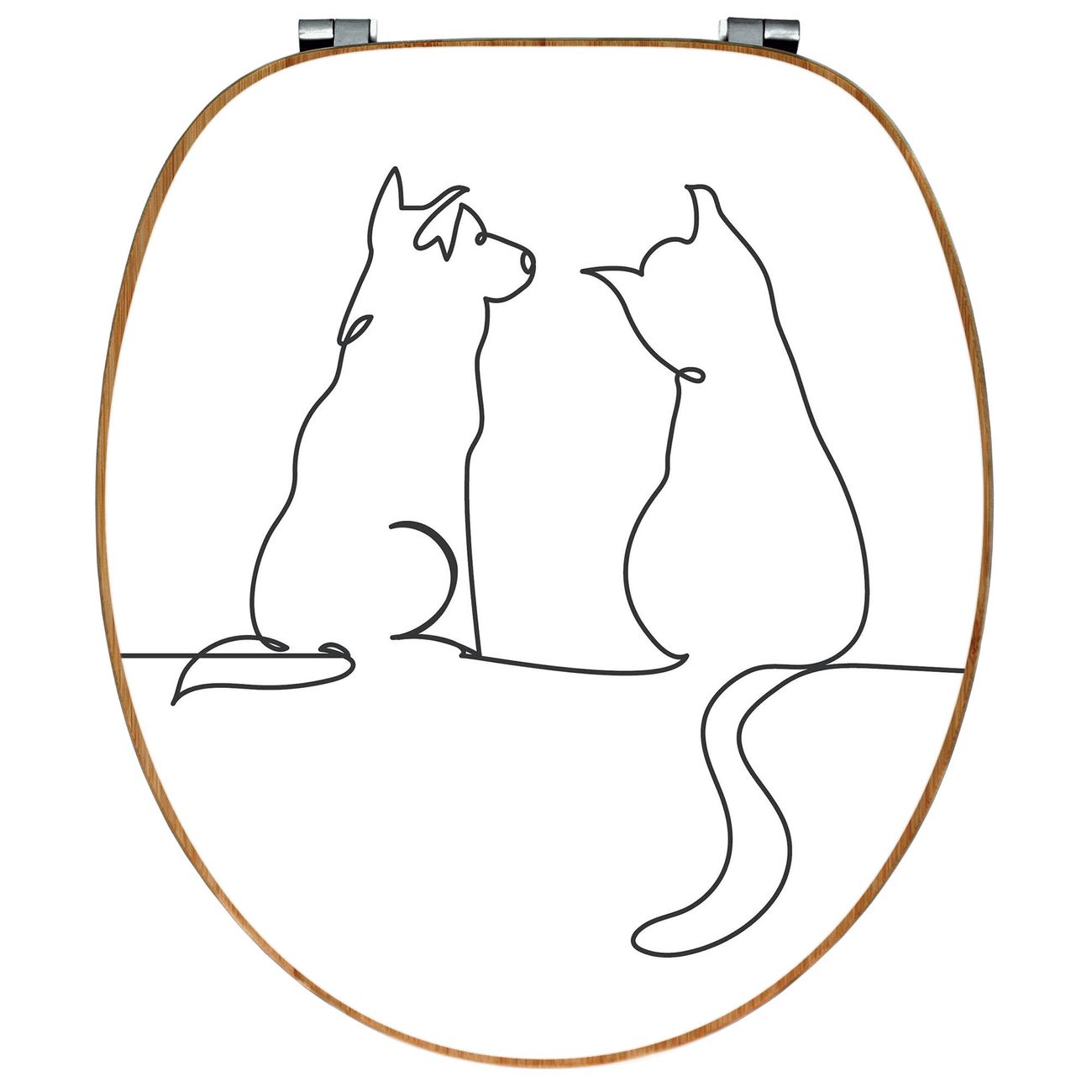 Design WC-Sitz Bambus Holz Motiv Katzen-Hunde-Freundschaft Lineart