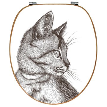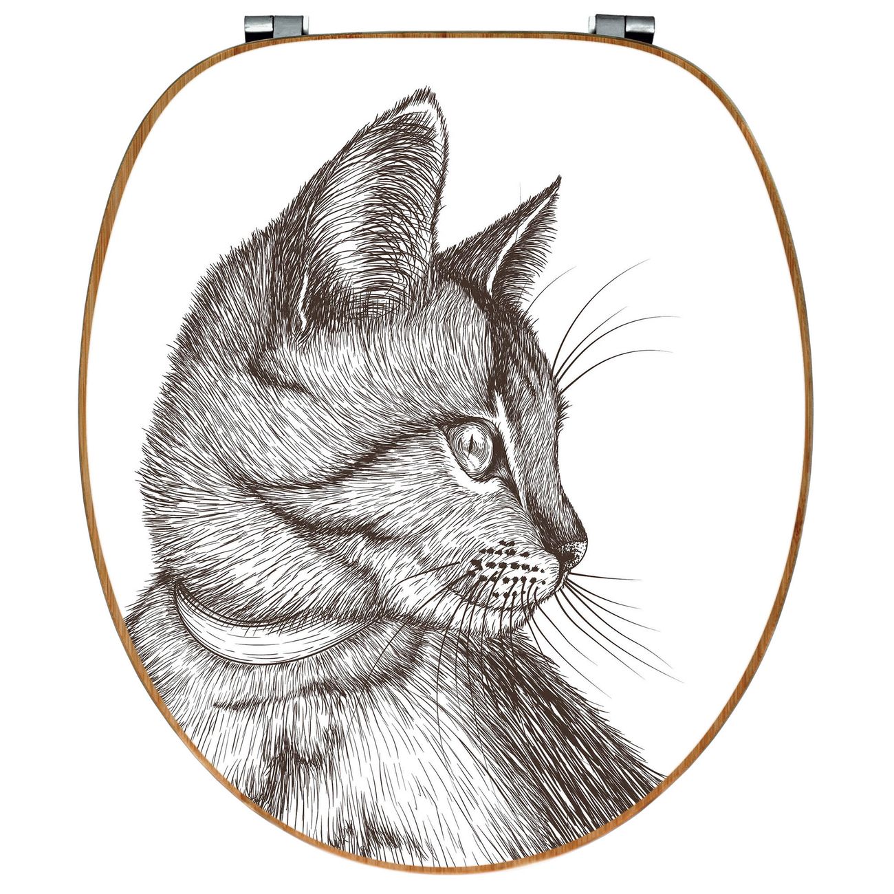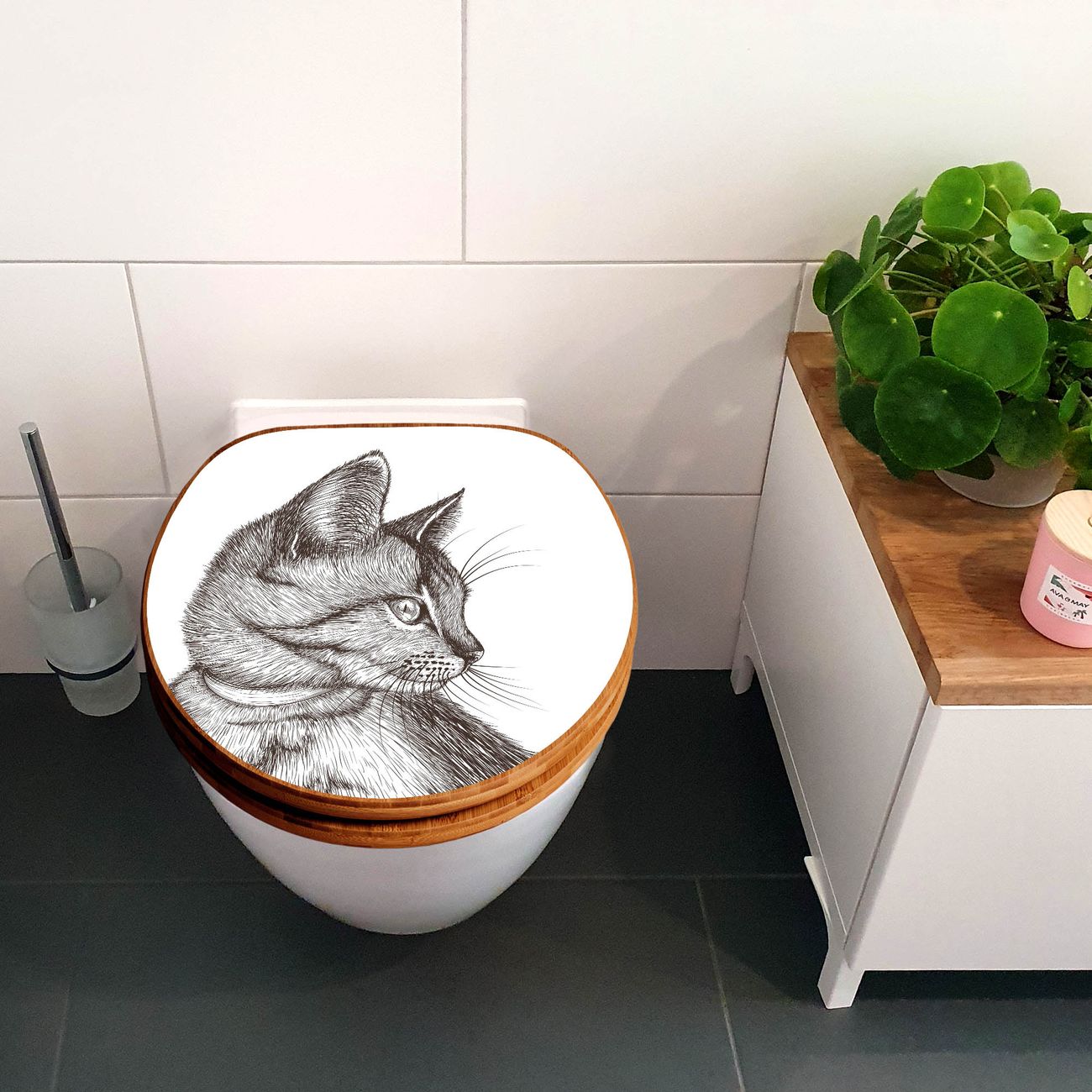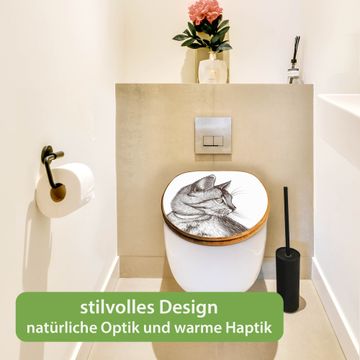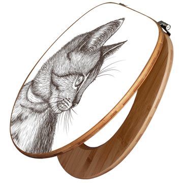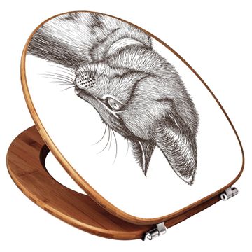 Design WC-Sitz Bambus Holz Motiv Katzenillustration
