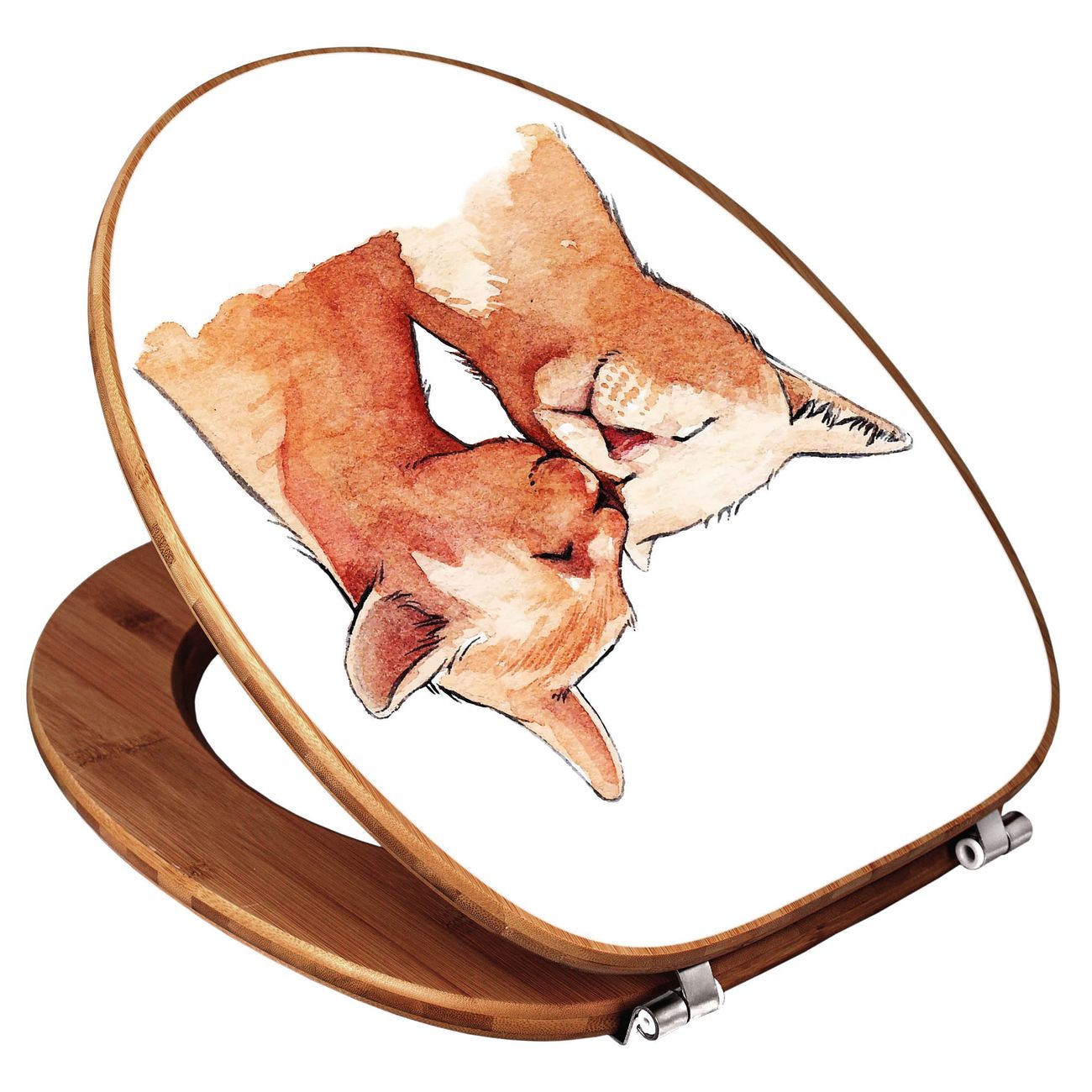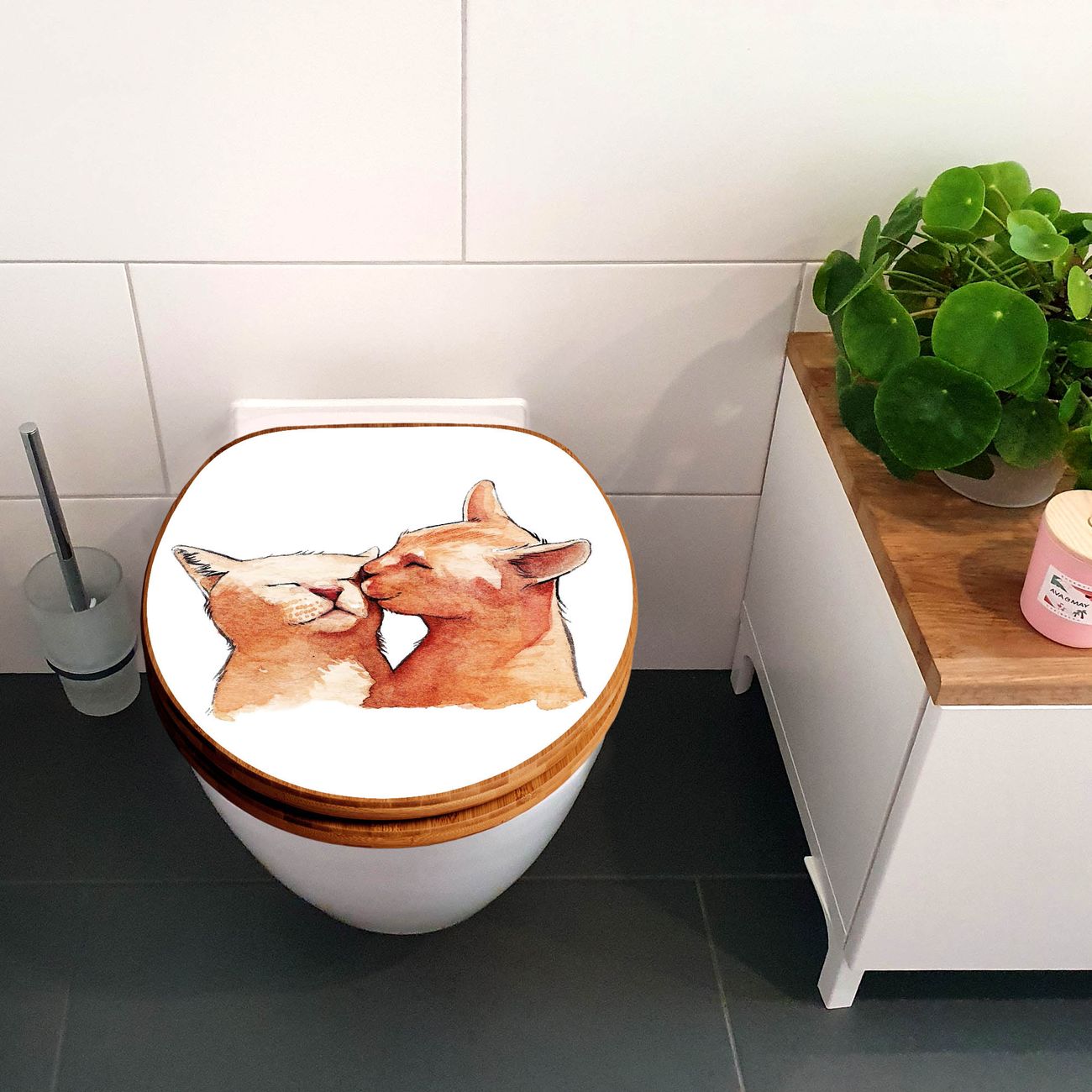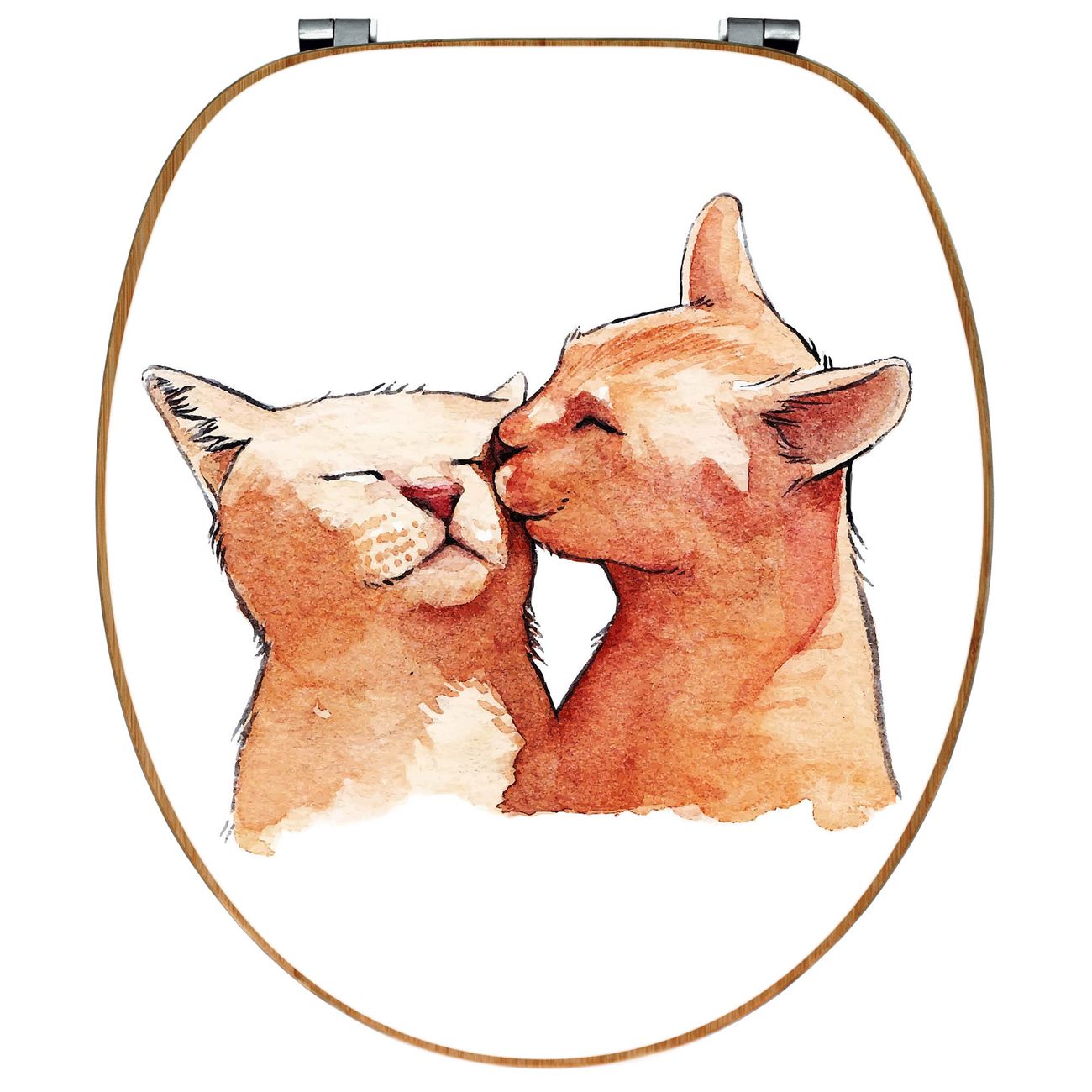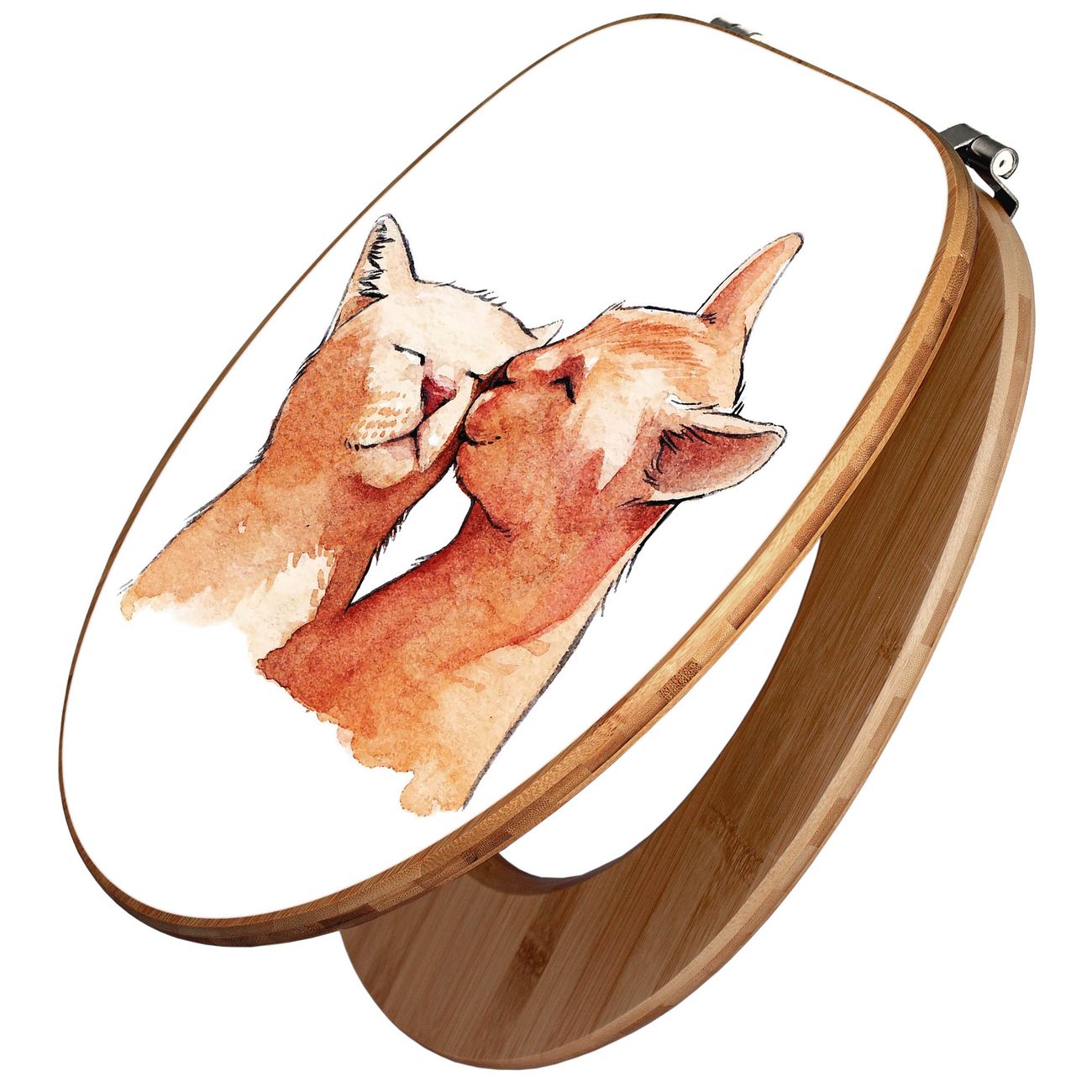 Design WC-Sitz Bambus Holz Motiv Katzenkuss
