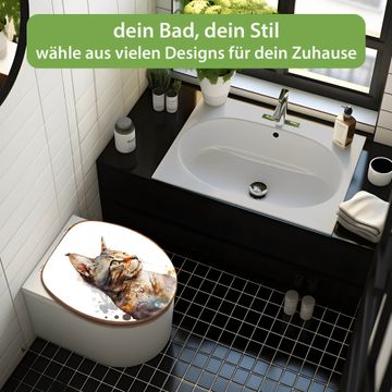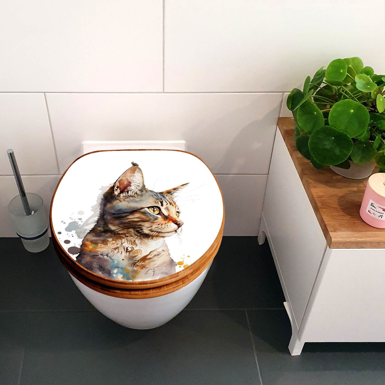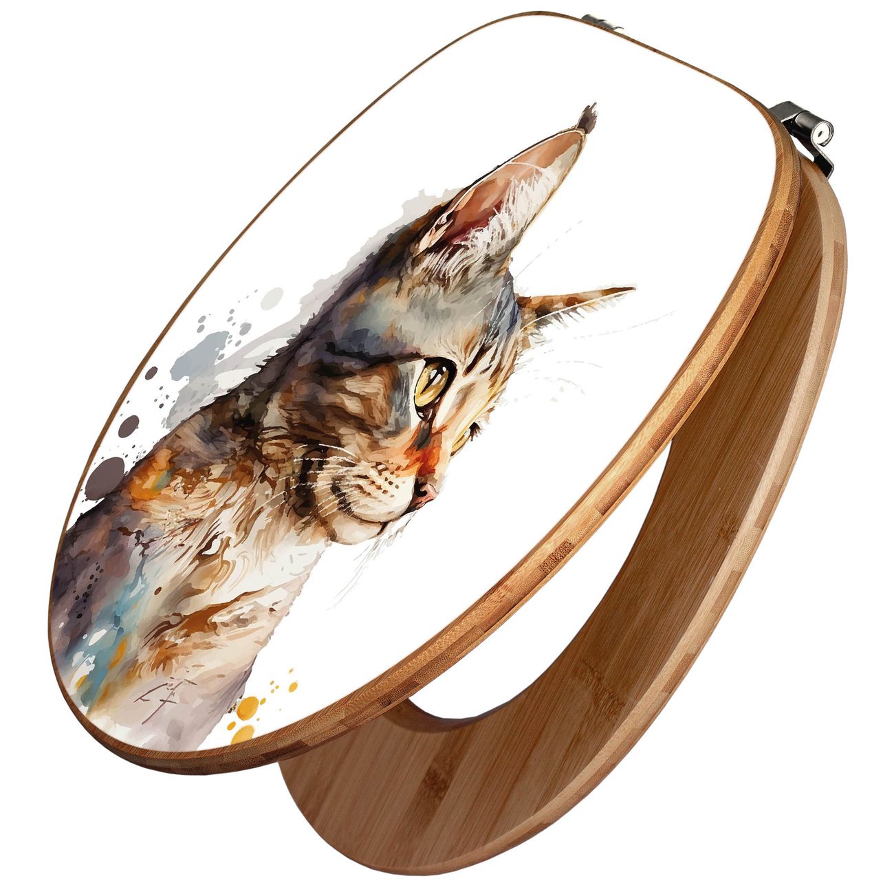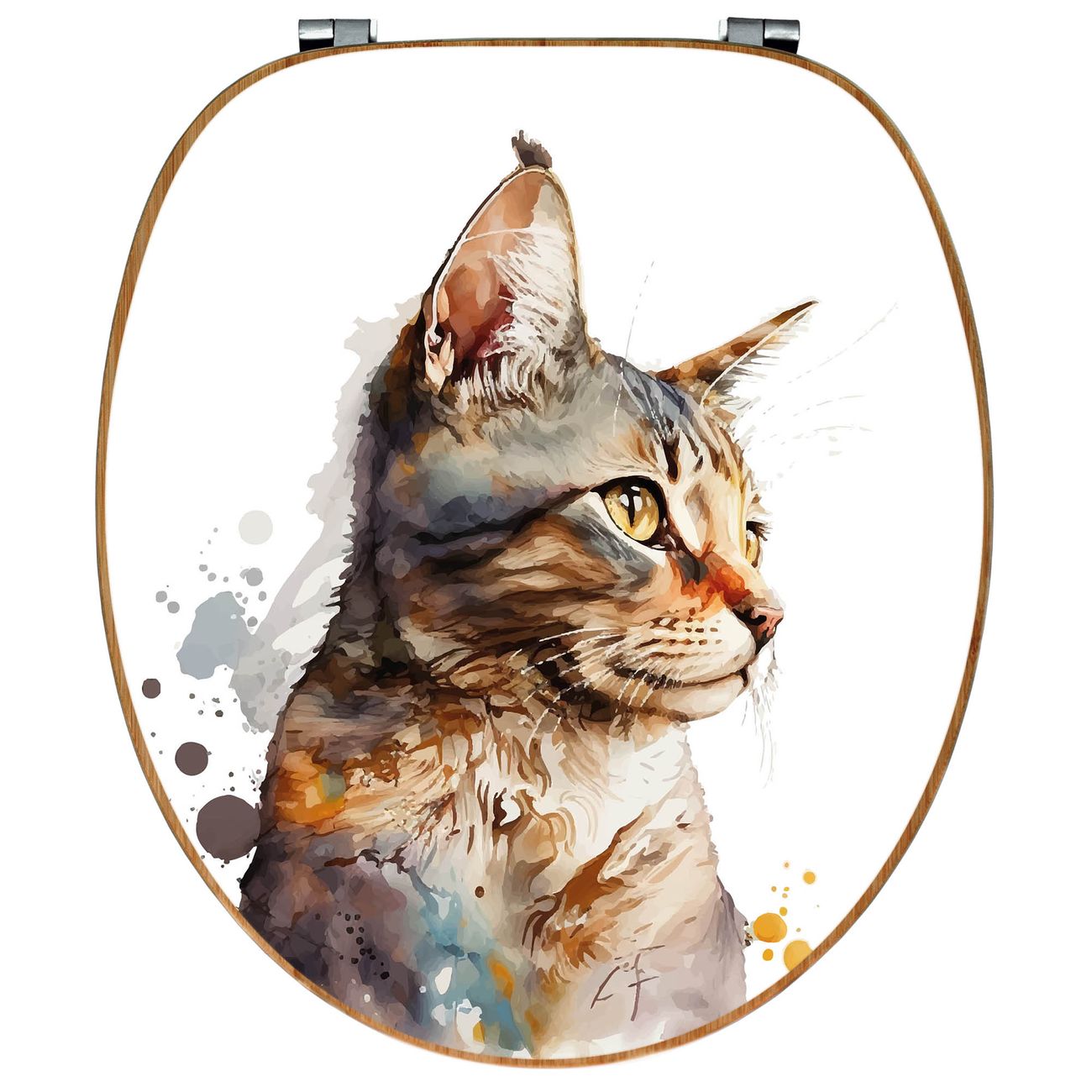 Design WC-Sitz Bambus Holz Motiv Katzenportrait in Aquarell 2