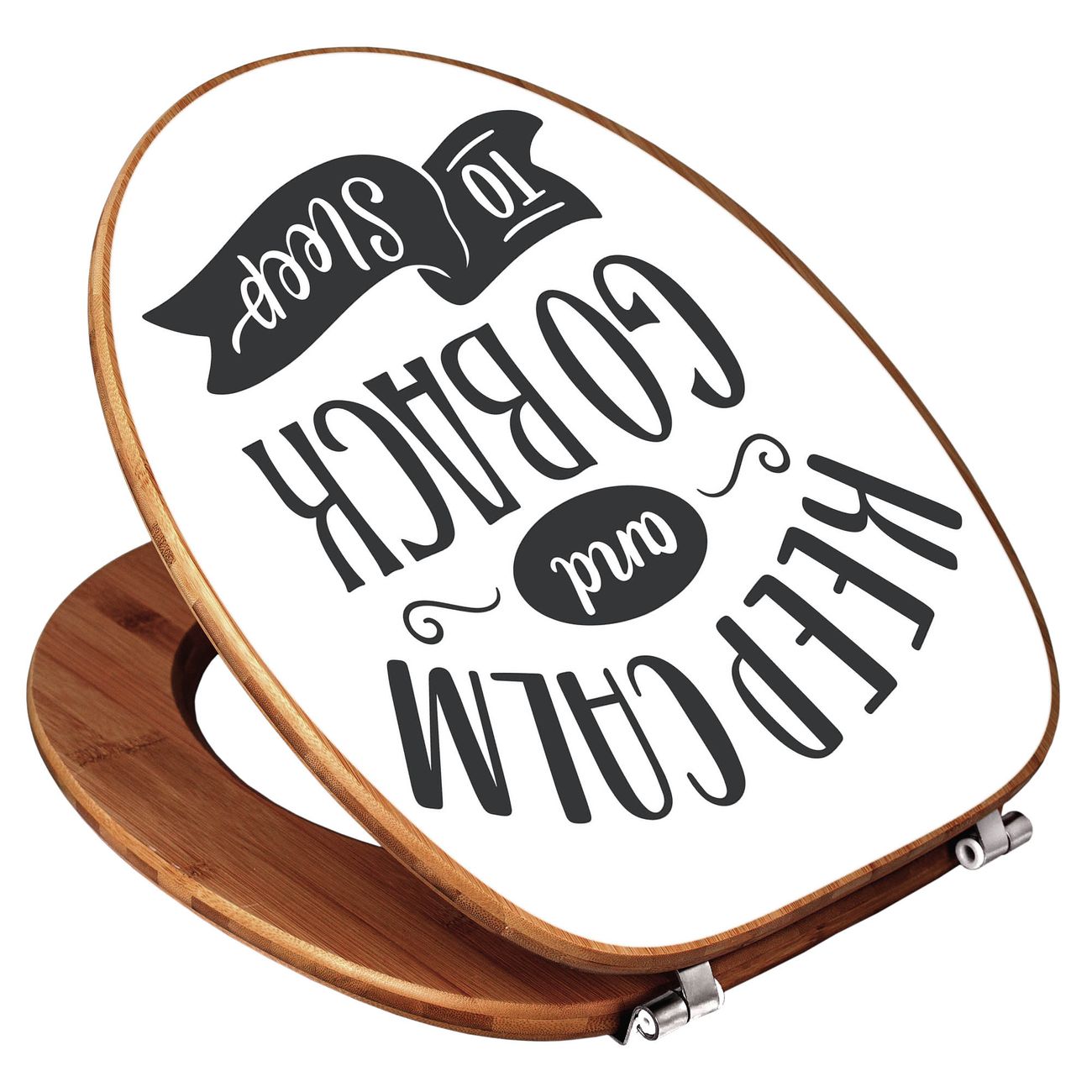 Design WC-Sitz Bambus Holz Motiv Keep Calm Schriftzug