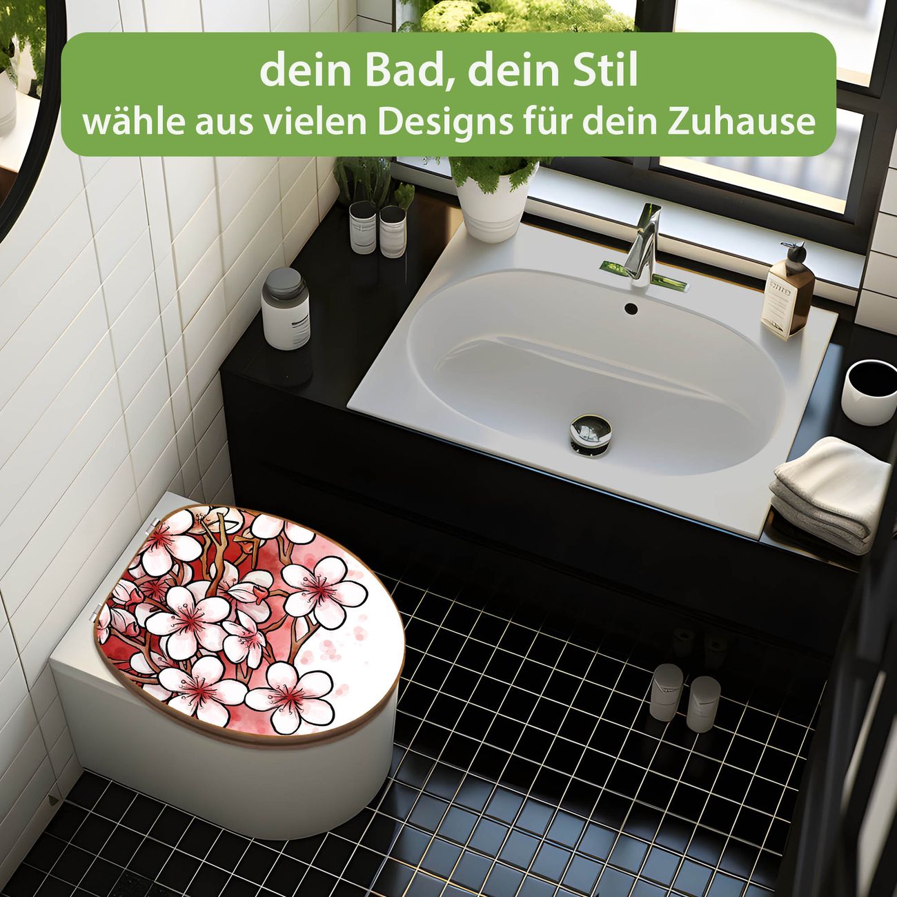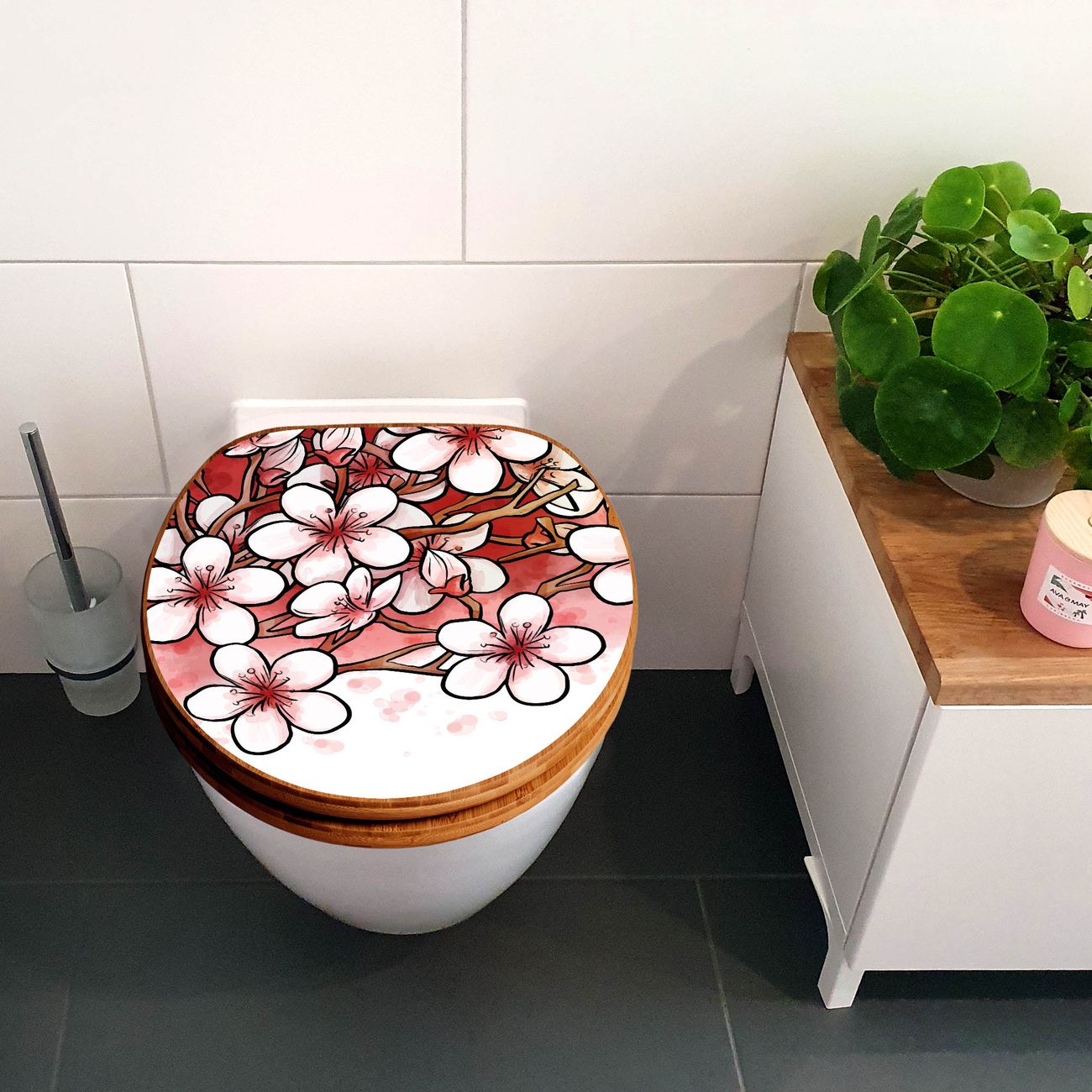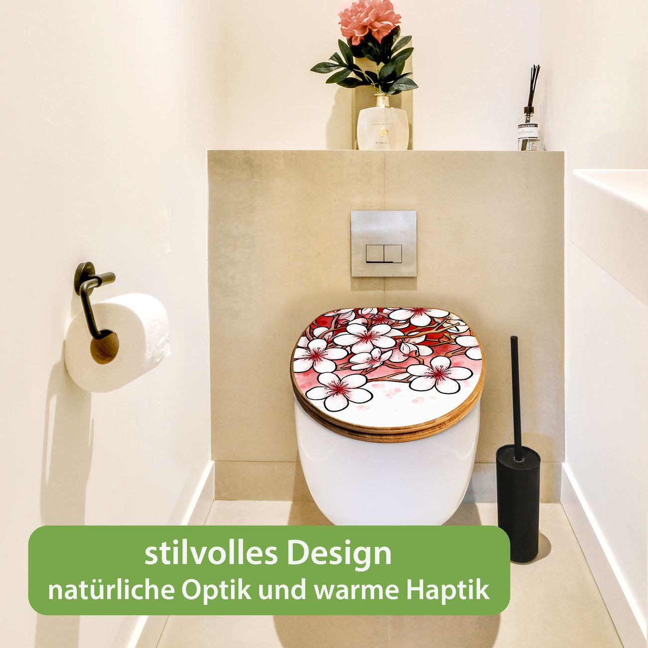 Design WC-Sitz Bambus Holz Motiv Kirschblütentraum