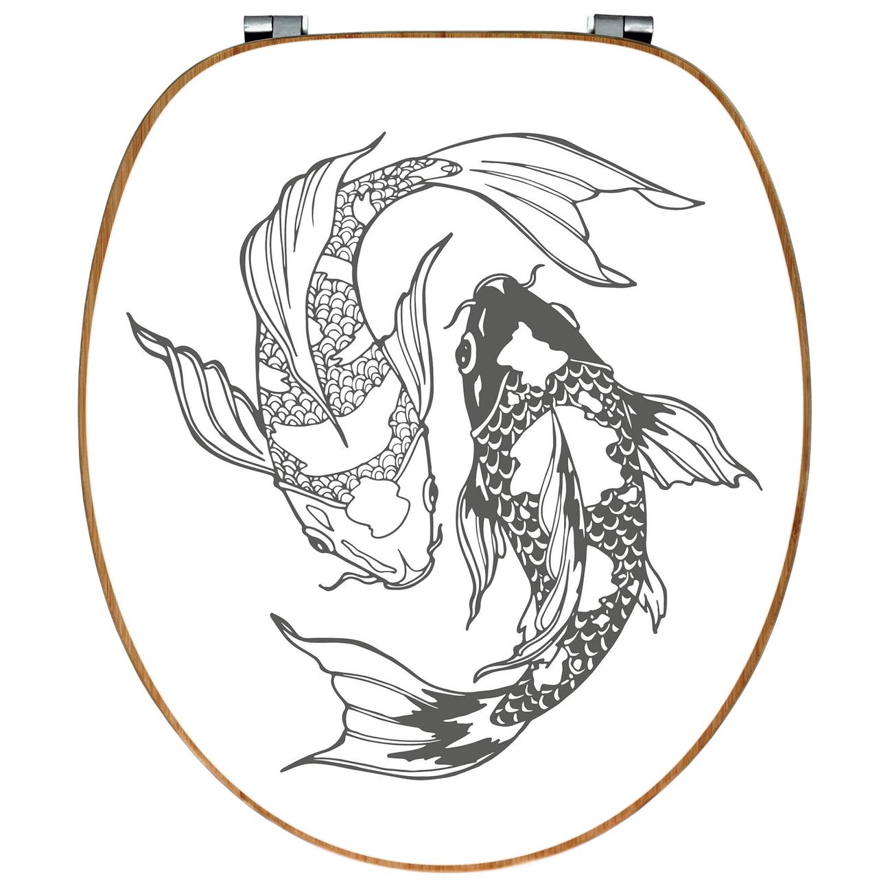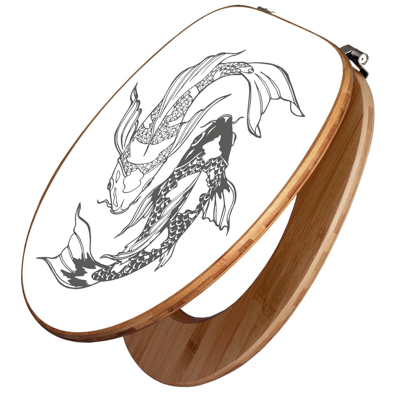 Design WC-Sitz Bambus Holz Motiv Koi Paar 3