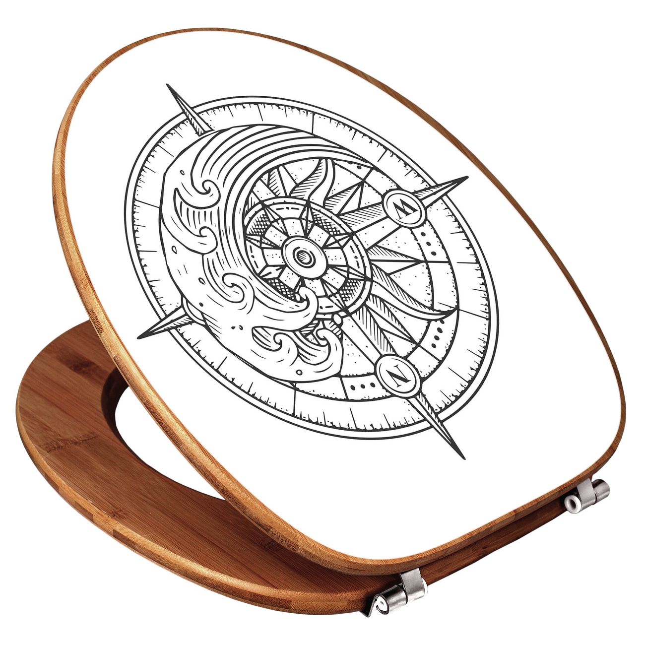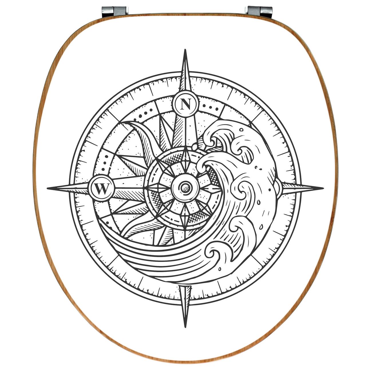 Design WC-Sitz Bambus Holz Motiv Kompass 2