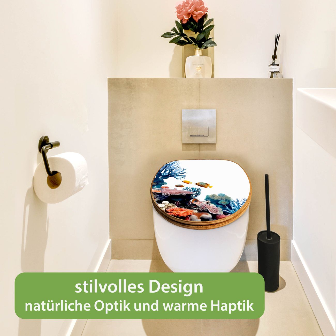 Design WC-Sitz Bambus Holz Motiv Korallenriff und Fische