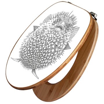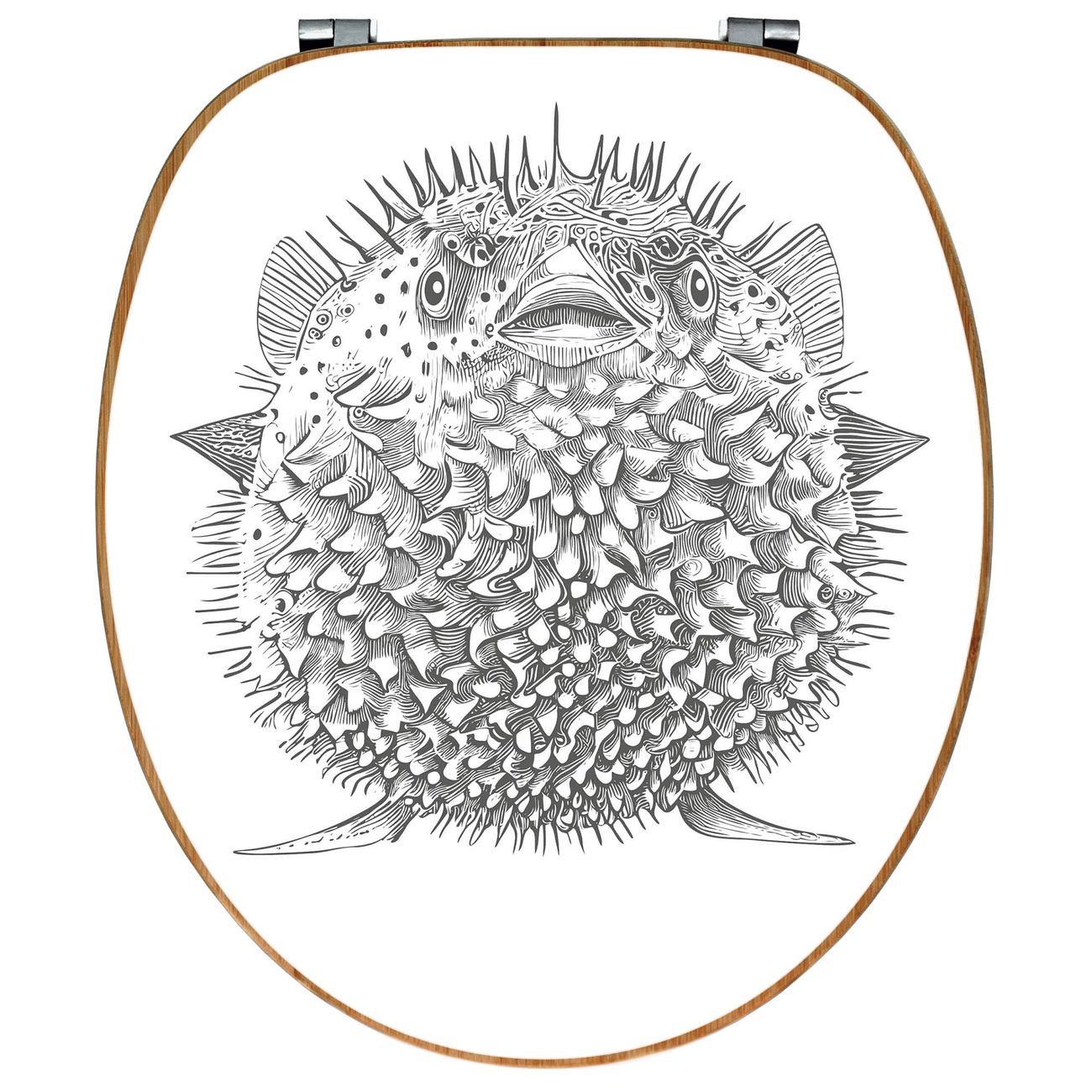 Design WC-Sitz Bambus Holz Motiv Kugelfisch 2