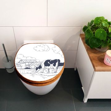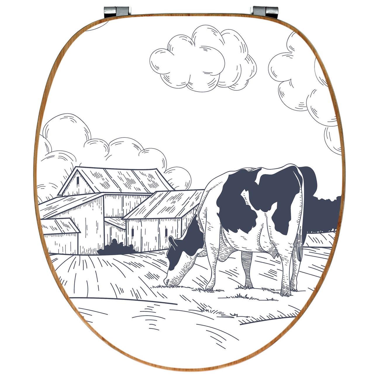 Design WC-Sitz Bambus Holz Motiv Ländliche Idylle mit Kuh