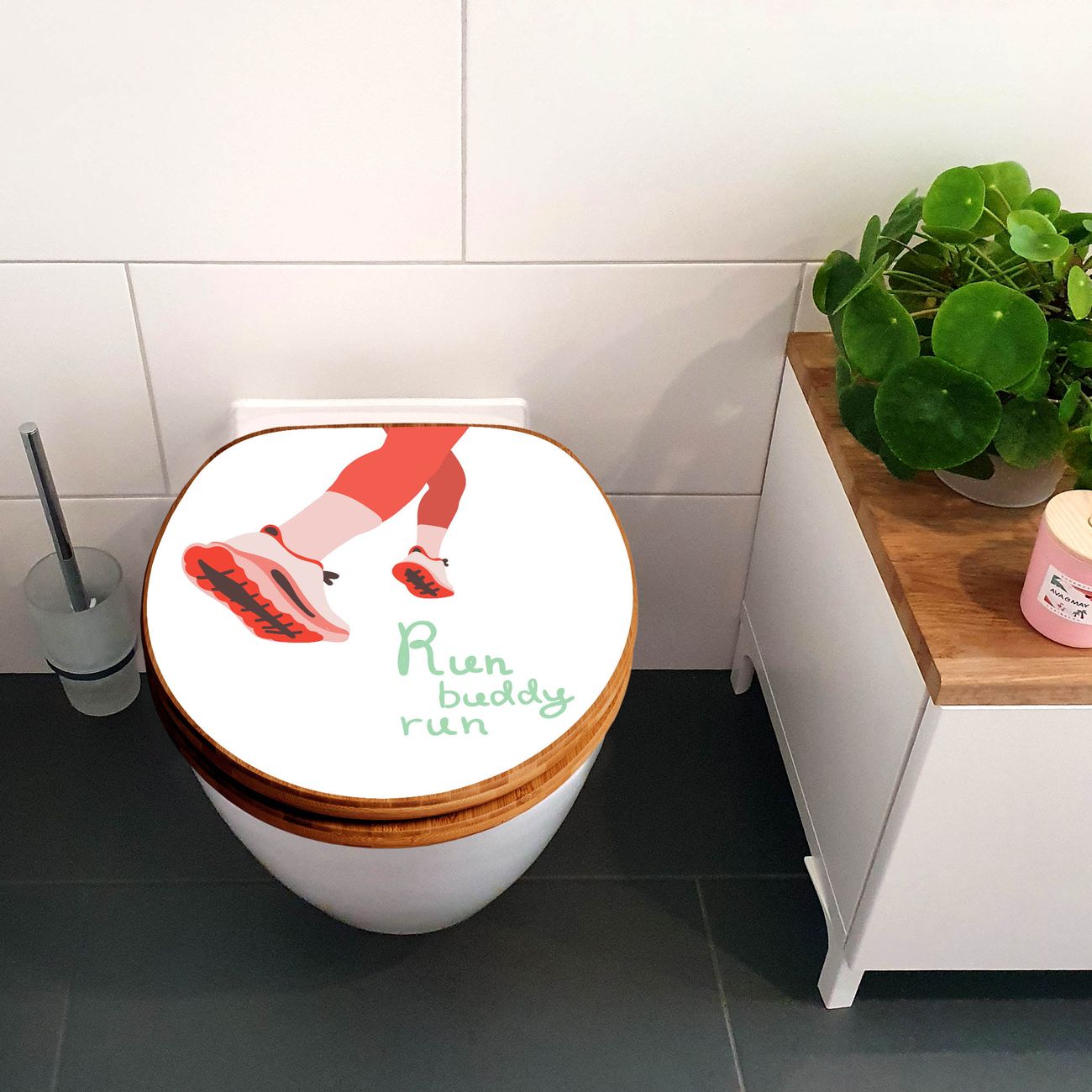 Design WC-Sitz Bambus Holz Motiv Laufschuh Bewegung