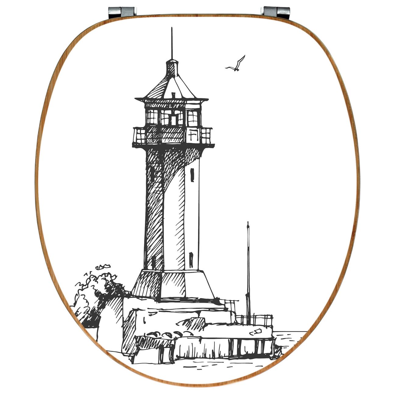 Design WC-Sitz Bambus Holz Motiv Leuchtturm 10