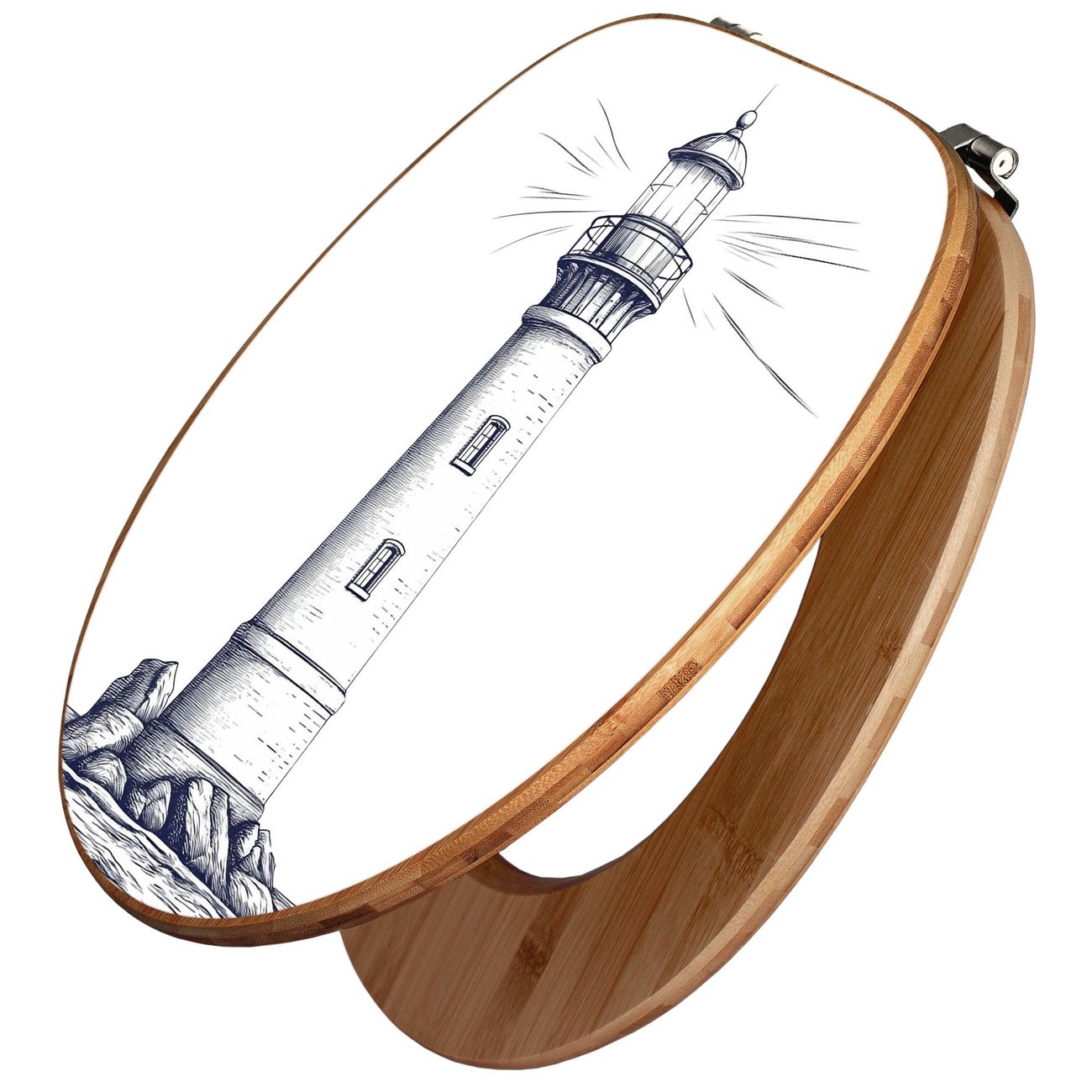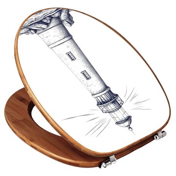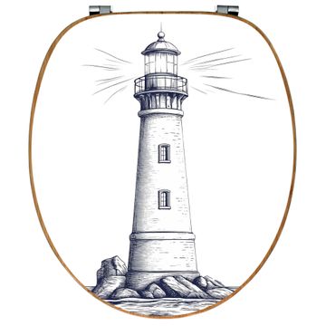 Design WC-Sitz Bambus Holz Motiv Leuchtturm-Skizze