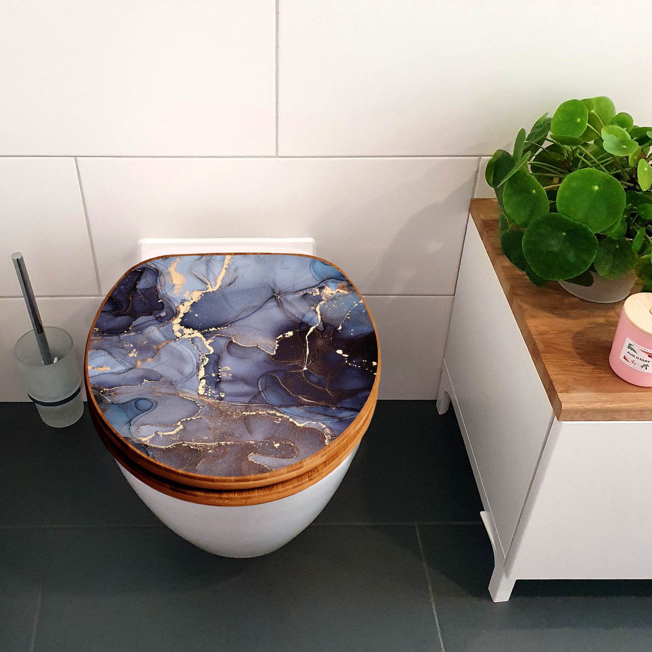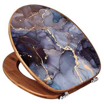 Design WC-Sitz Bambus Holz Motiv Lila Marmor mit Gold 1