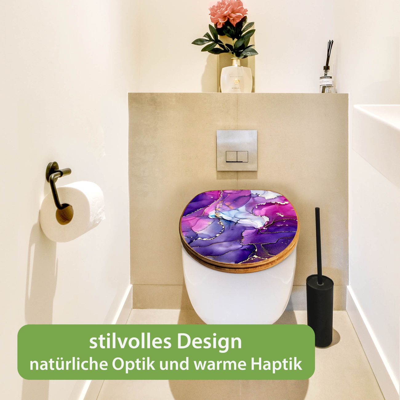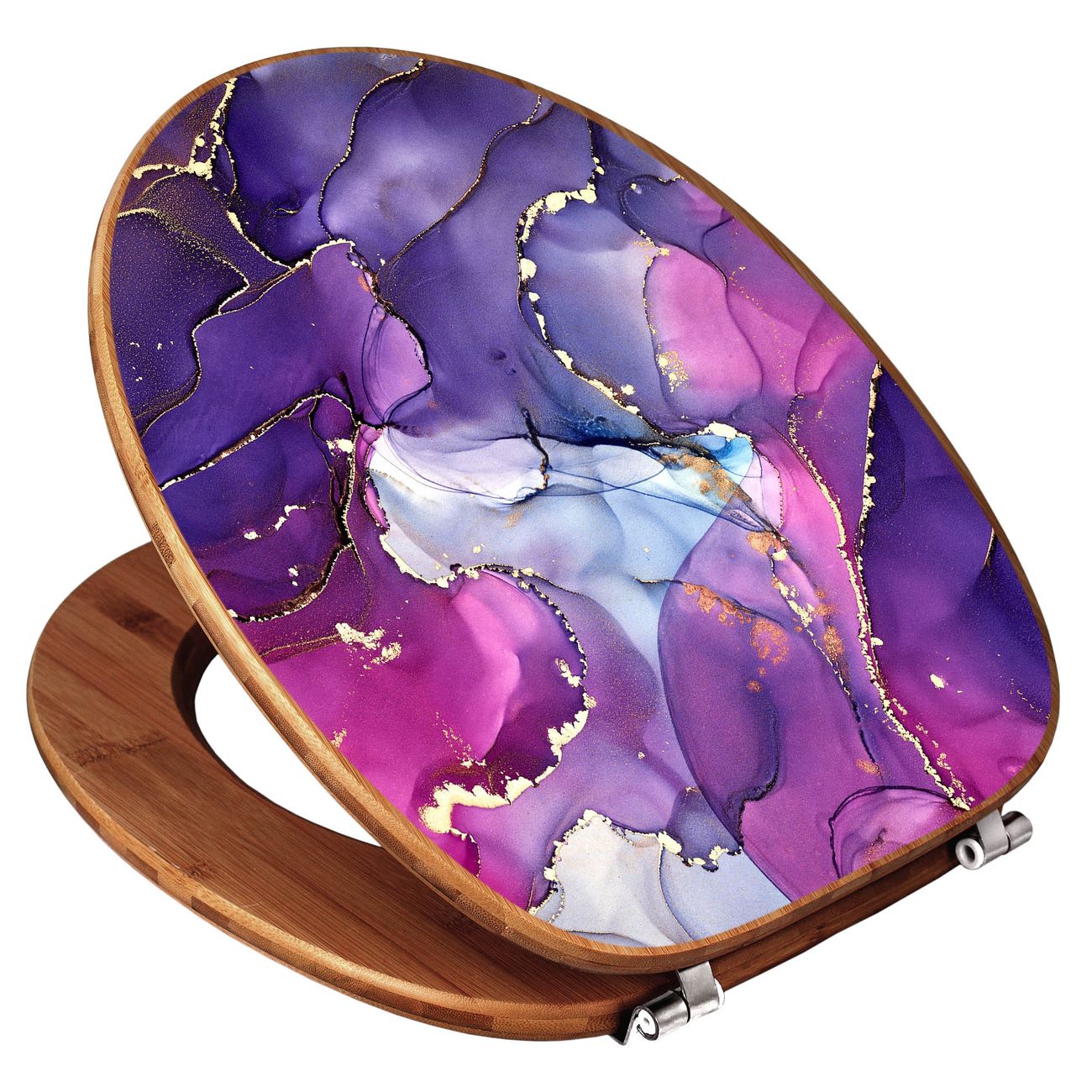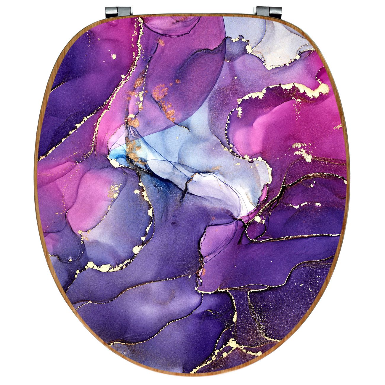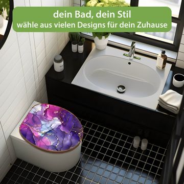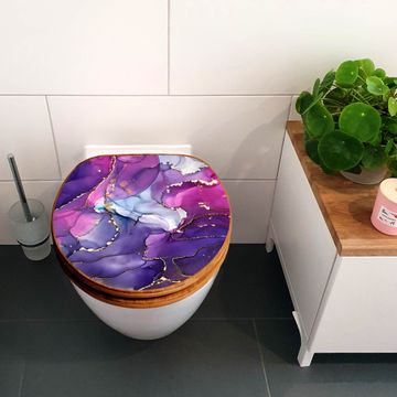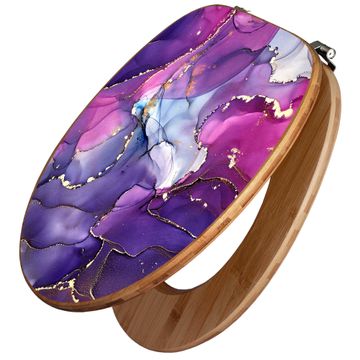 Design WC-Sitz Bambus Holz Motiv Lila Marmor mit Gold 2