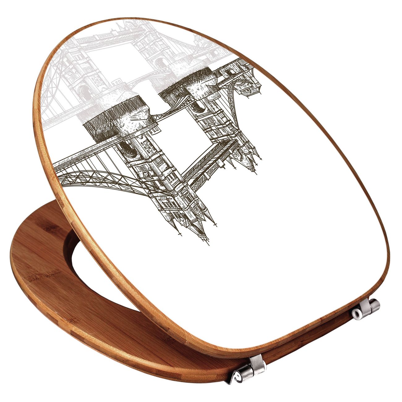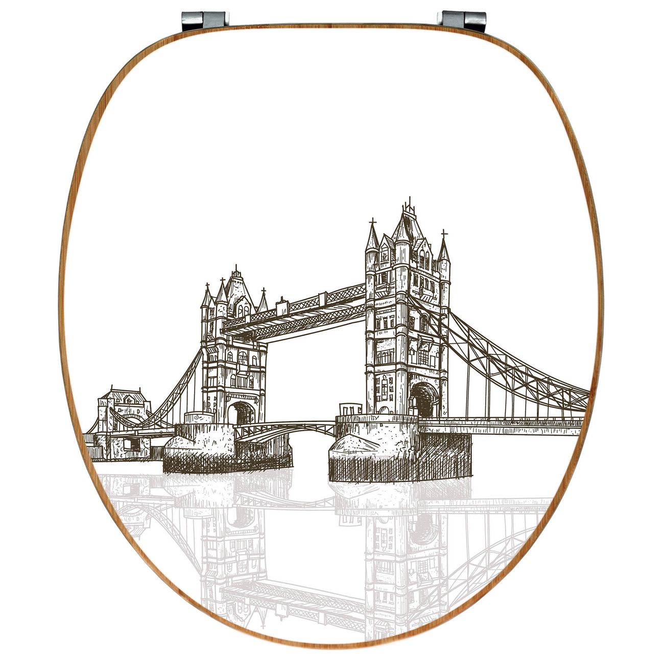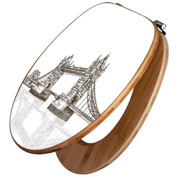 Design WC-Sitz Bambus Holz Motiv London Brücke Skizze