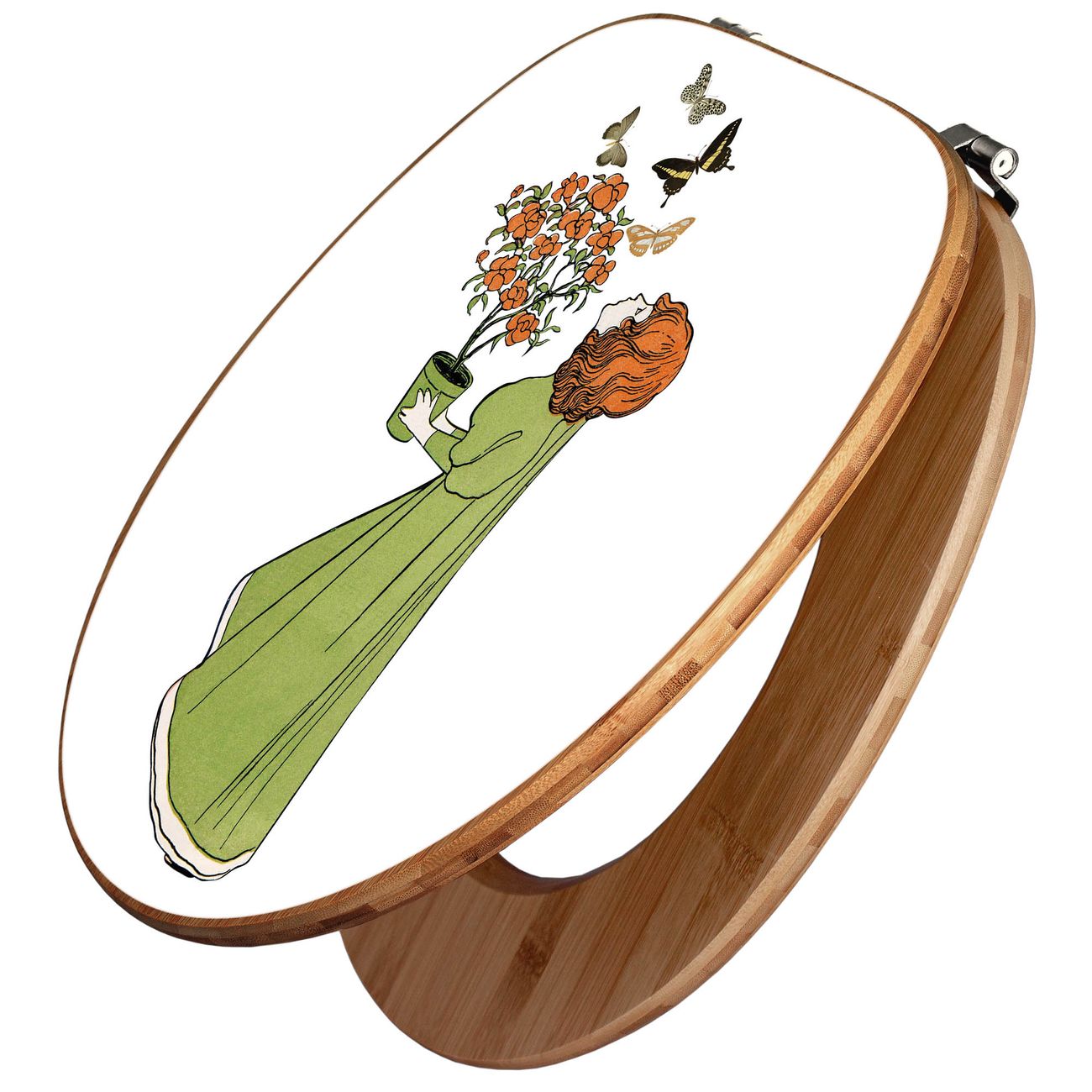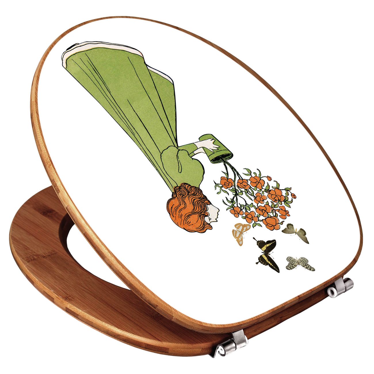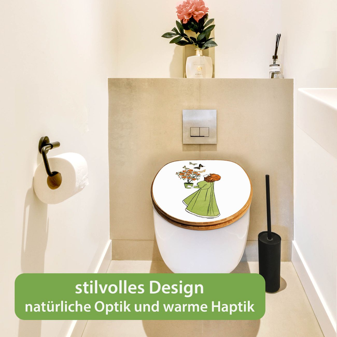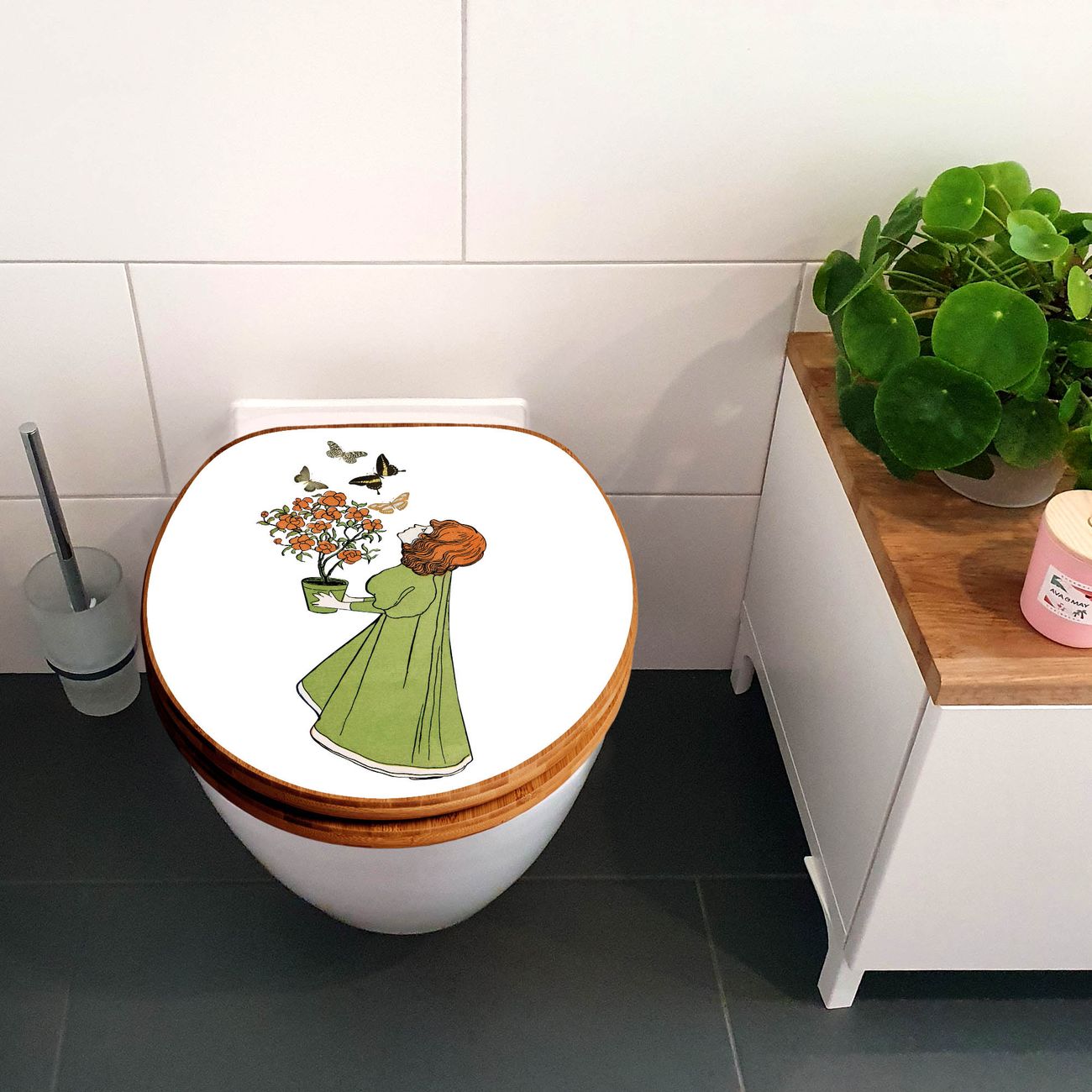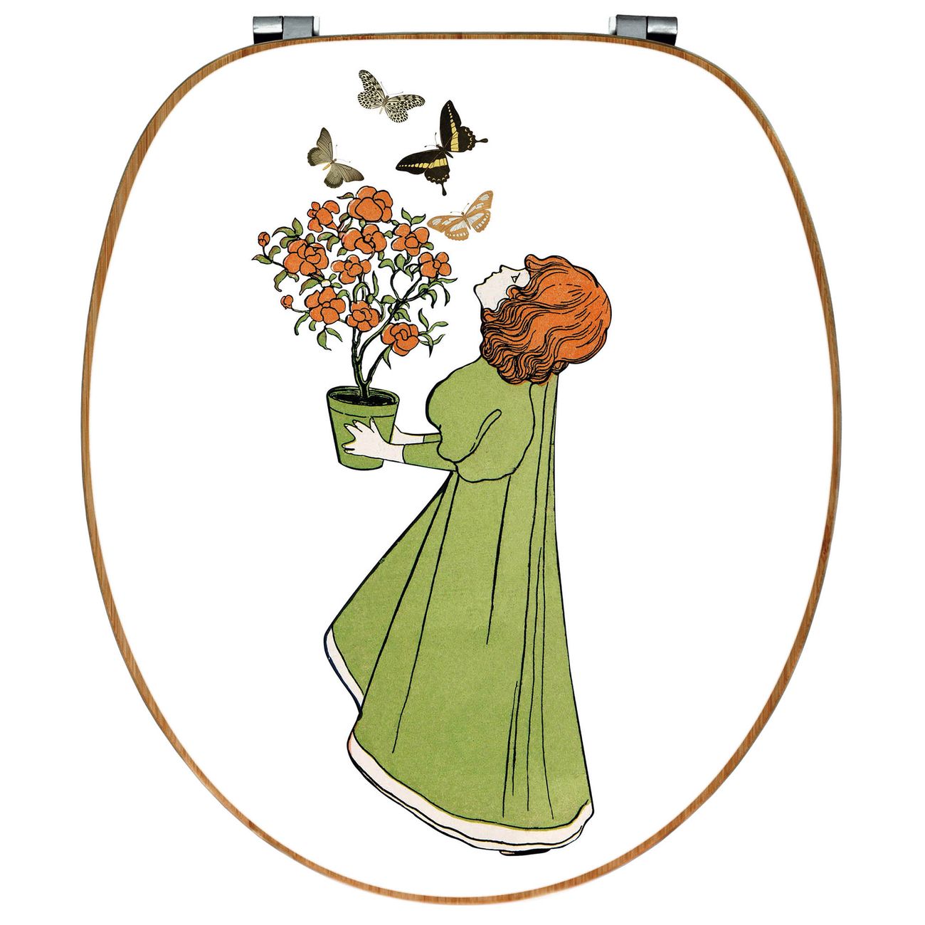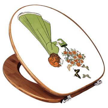 Design WC-Sitz Bambus Holz Motiv Mädchen mit Blumentopf Vintage