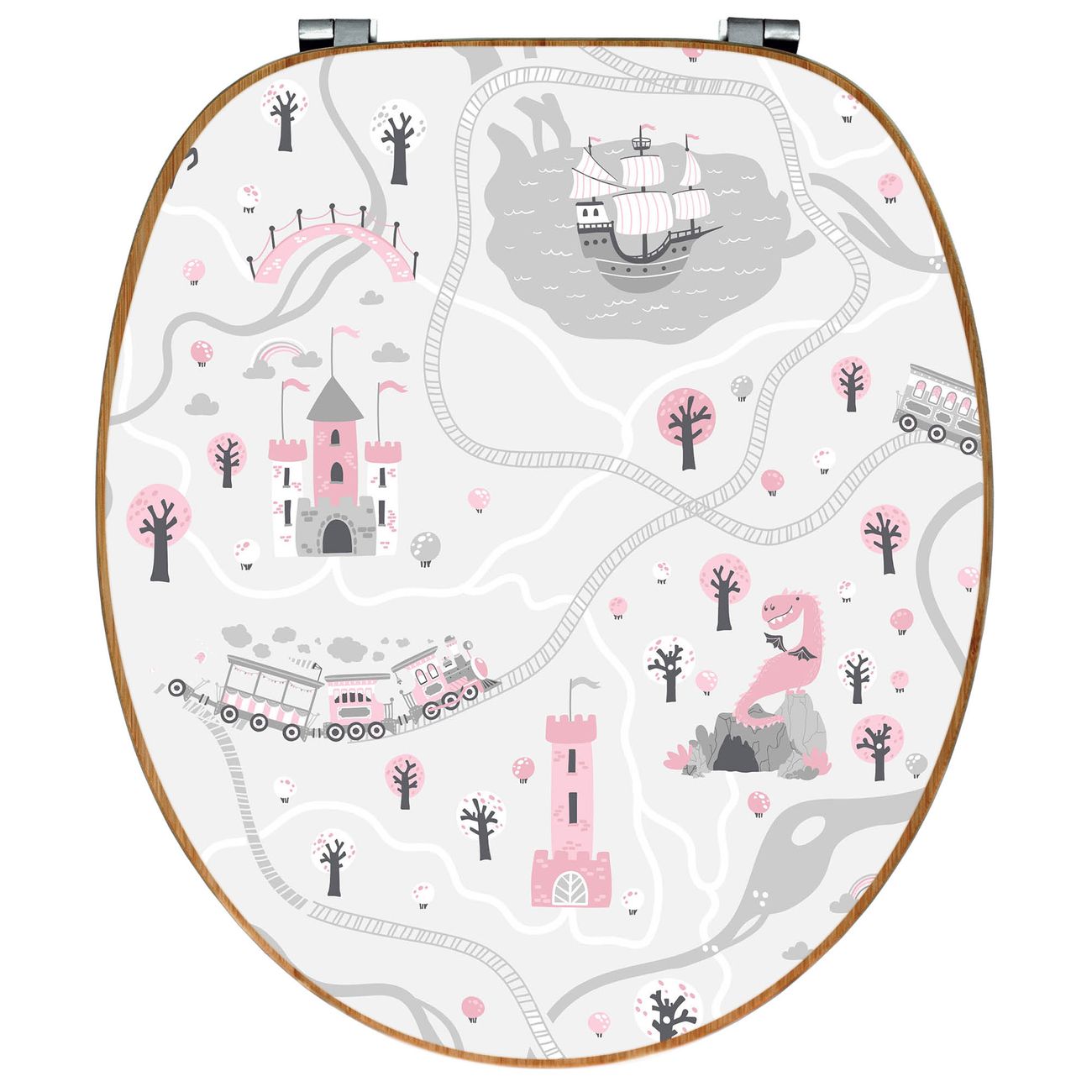Design WC-Sitz Bambus Holz Motiv Märchendorf 1