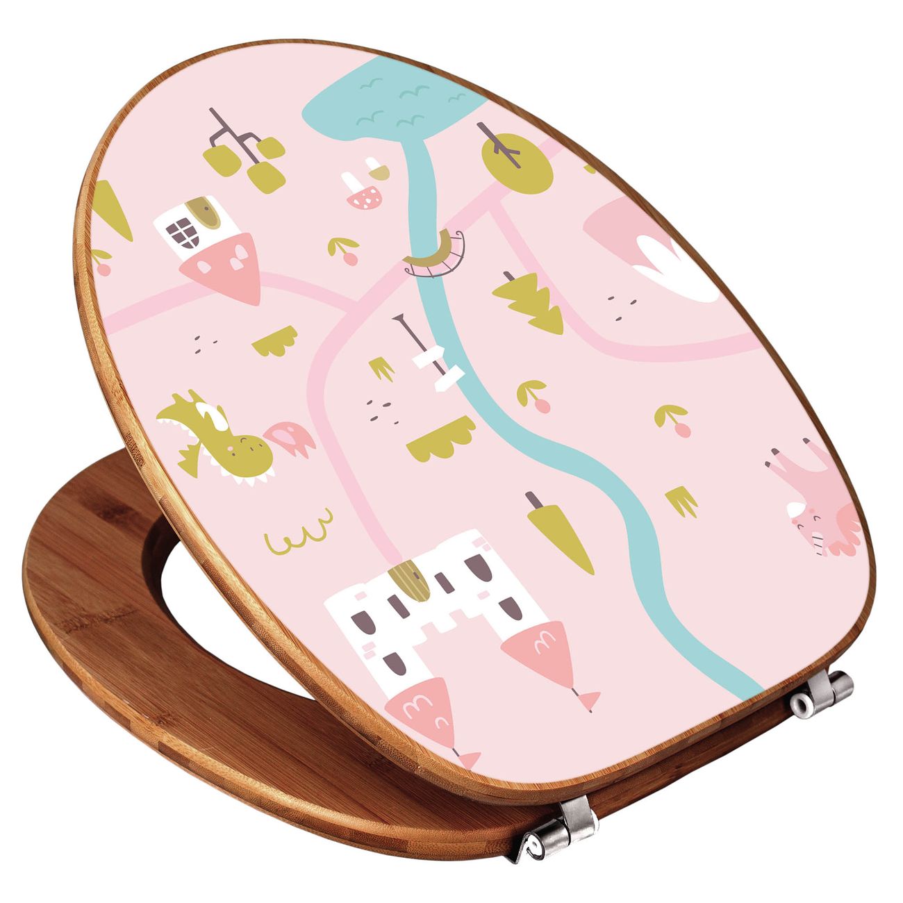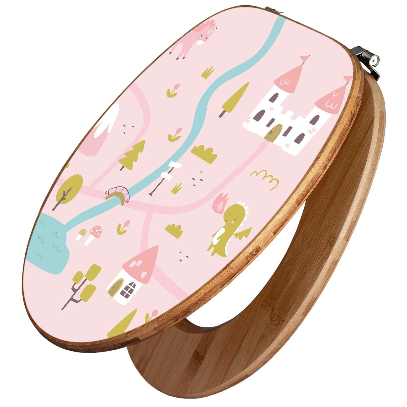 Design WC-Sitz Bambus Holz Motiv Märchendorf 2