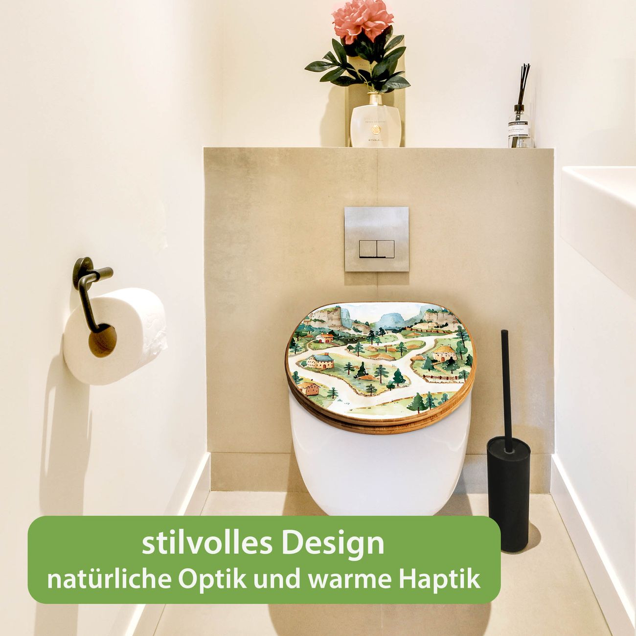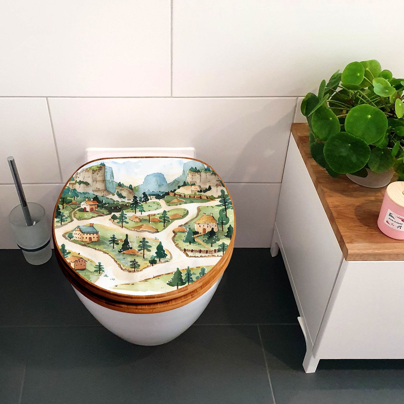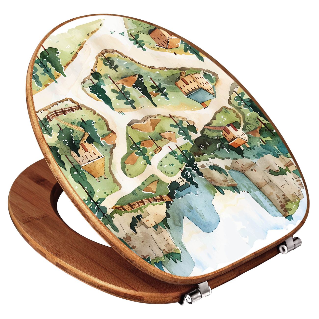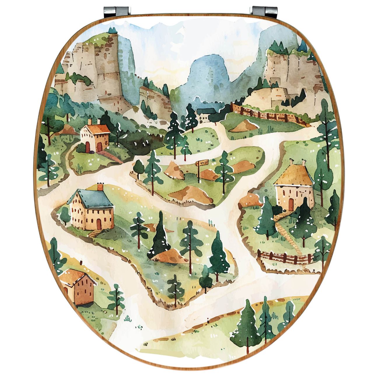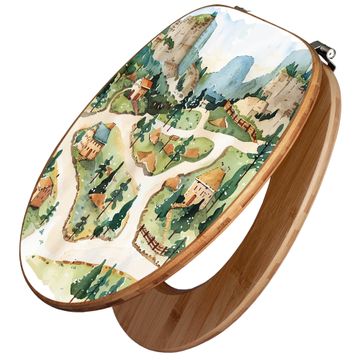 Design WC-Sitz Bambus Holz Motiv Märchendorf 3