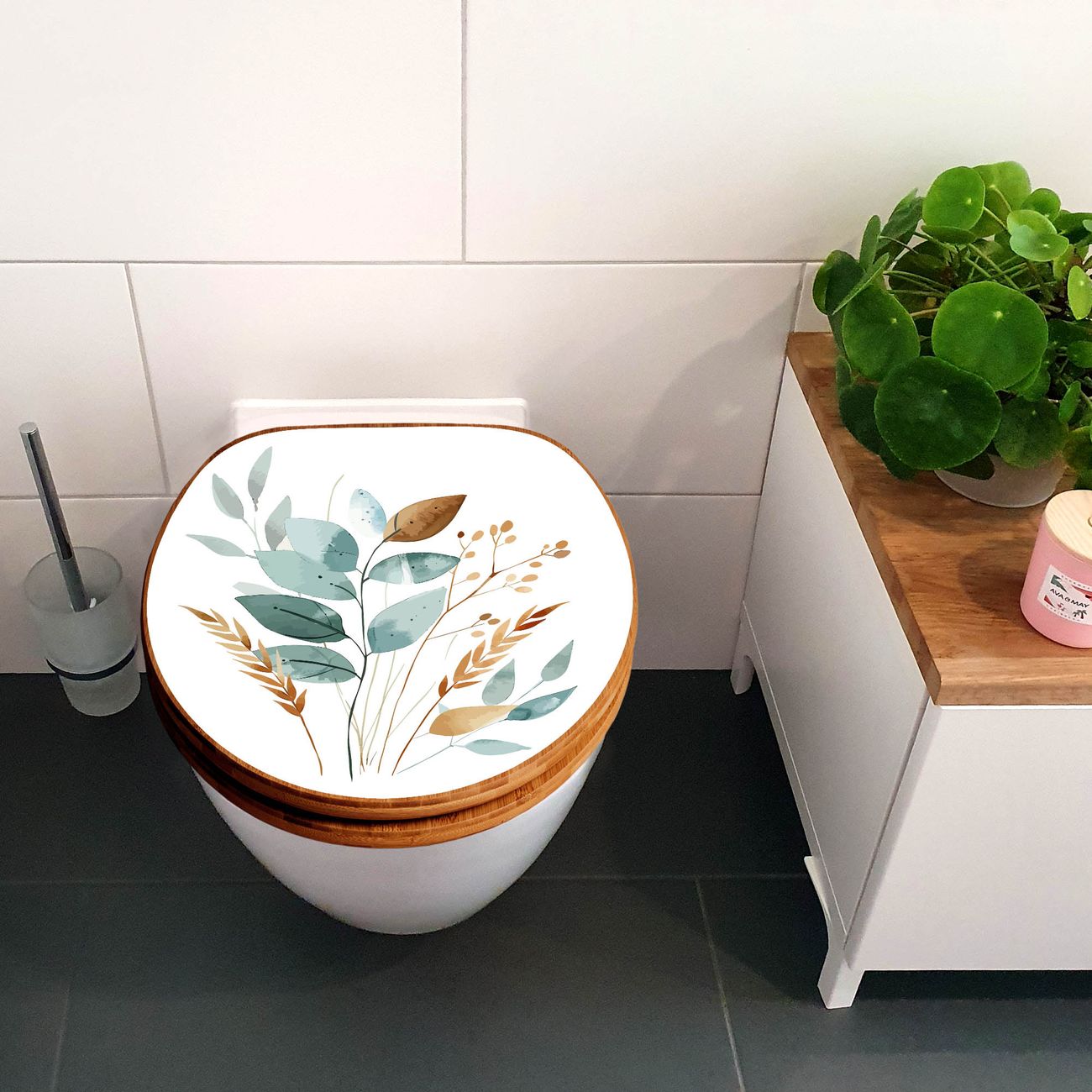 Design WC-Sitz Bambus Holz Motiv Minimalistische Blätter