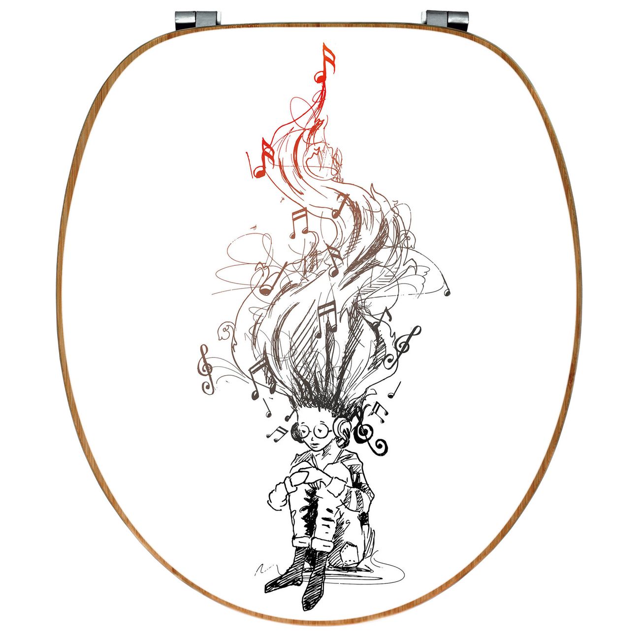 Design WC-Sitz Bambus Holz Motiv Musikträume Illustration