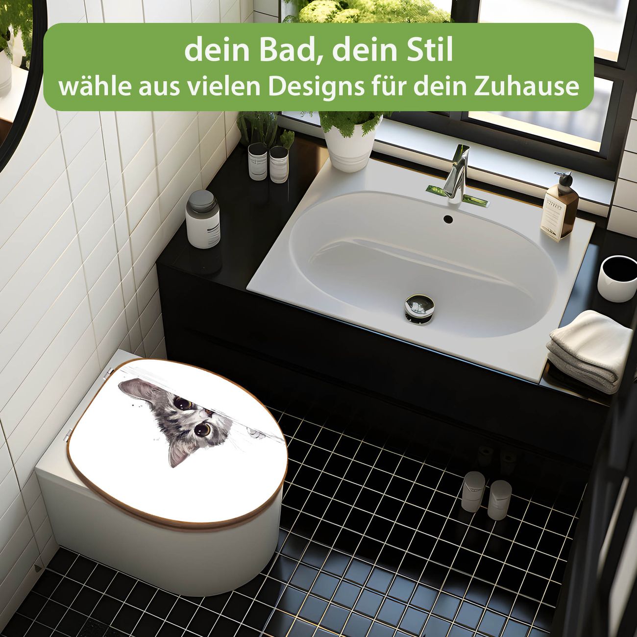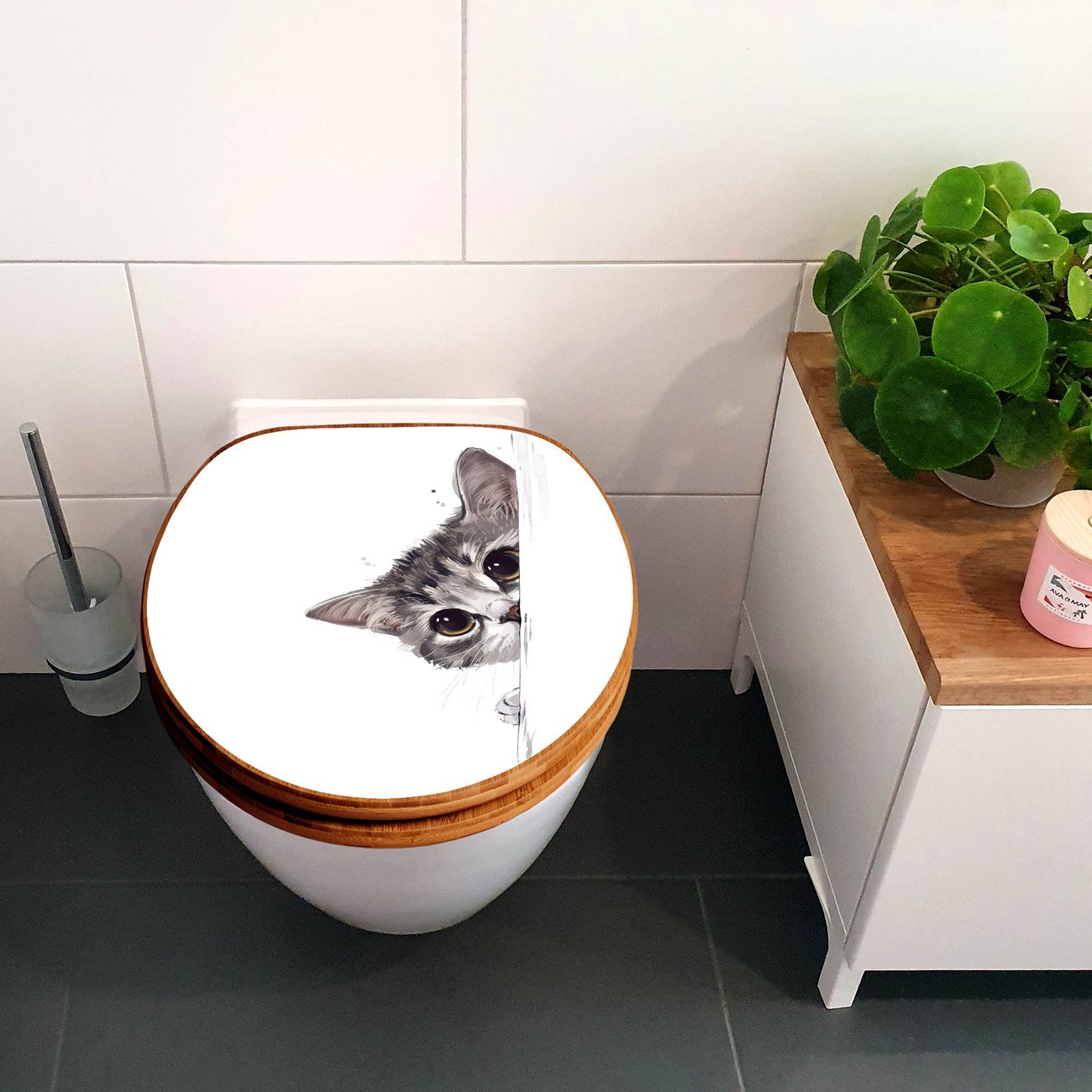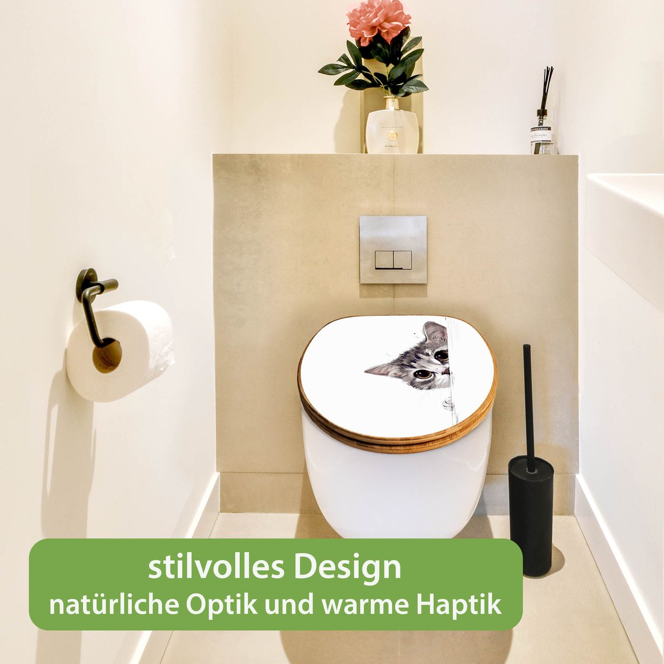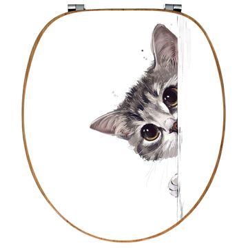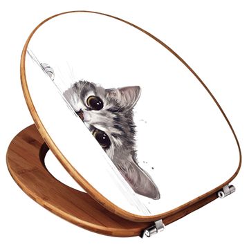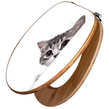 Design WC-Sitz Bambus Holz Motiv Neugierige Katze