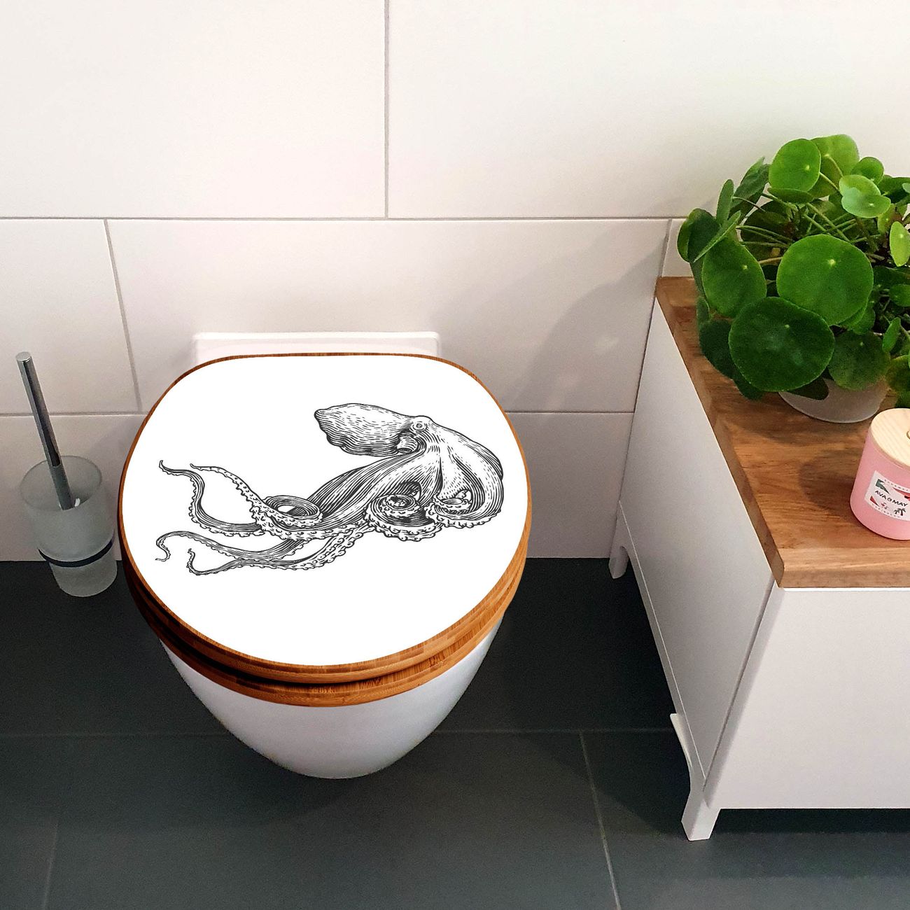 Design WC-Sitz Bambus Holz Motiv Oktopus 6