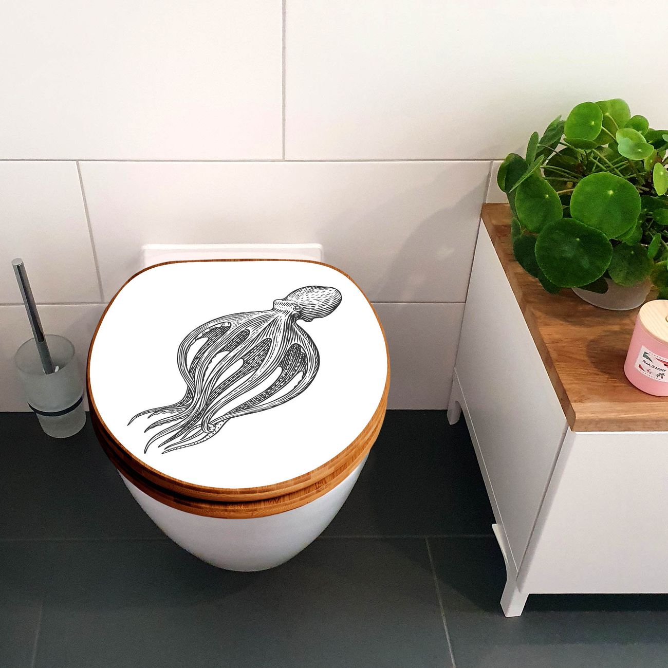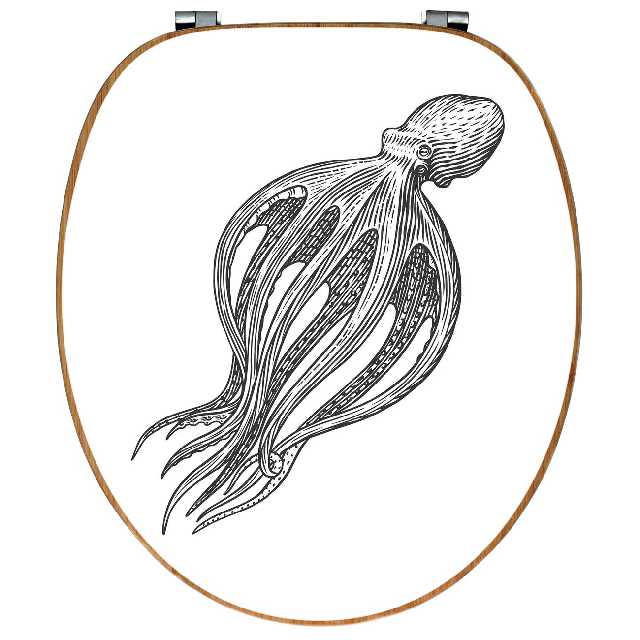 Design WC-Sitz Bambus Holz Motiv Oktopus 8
