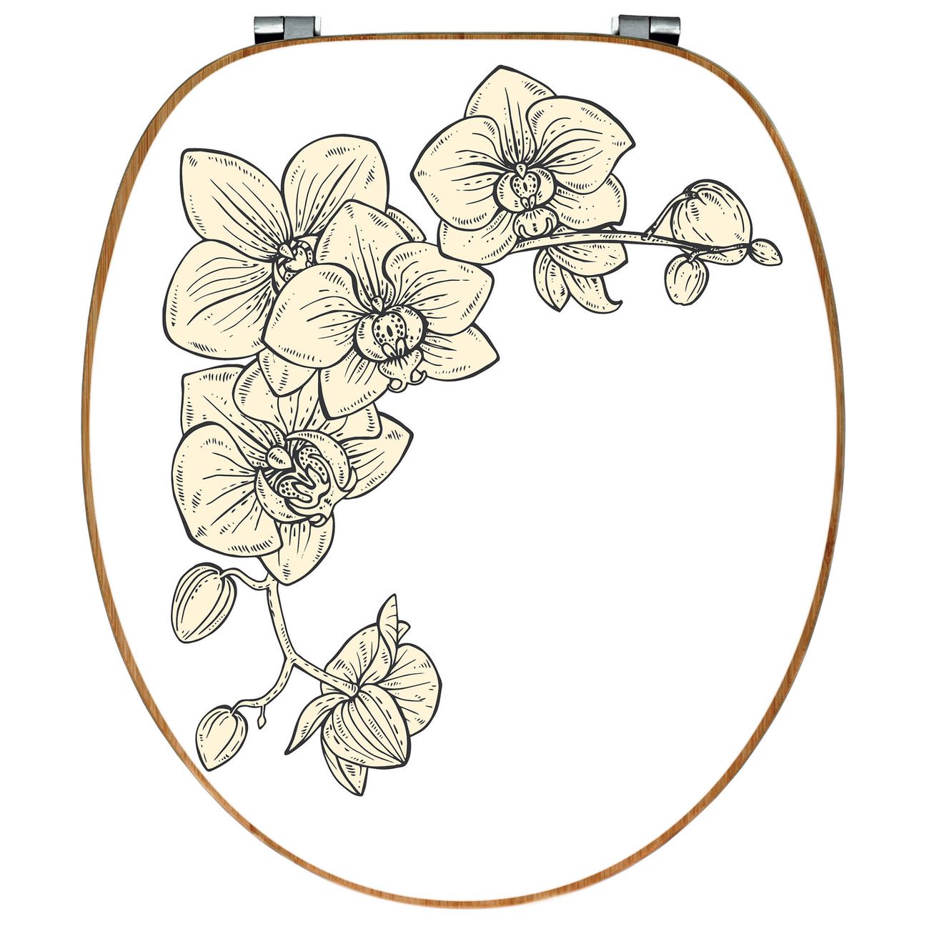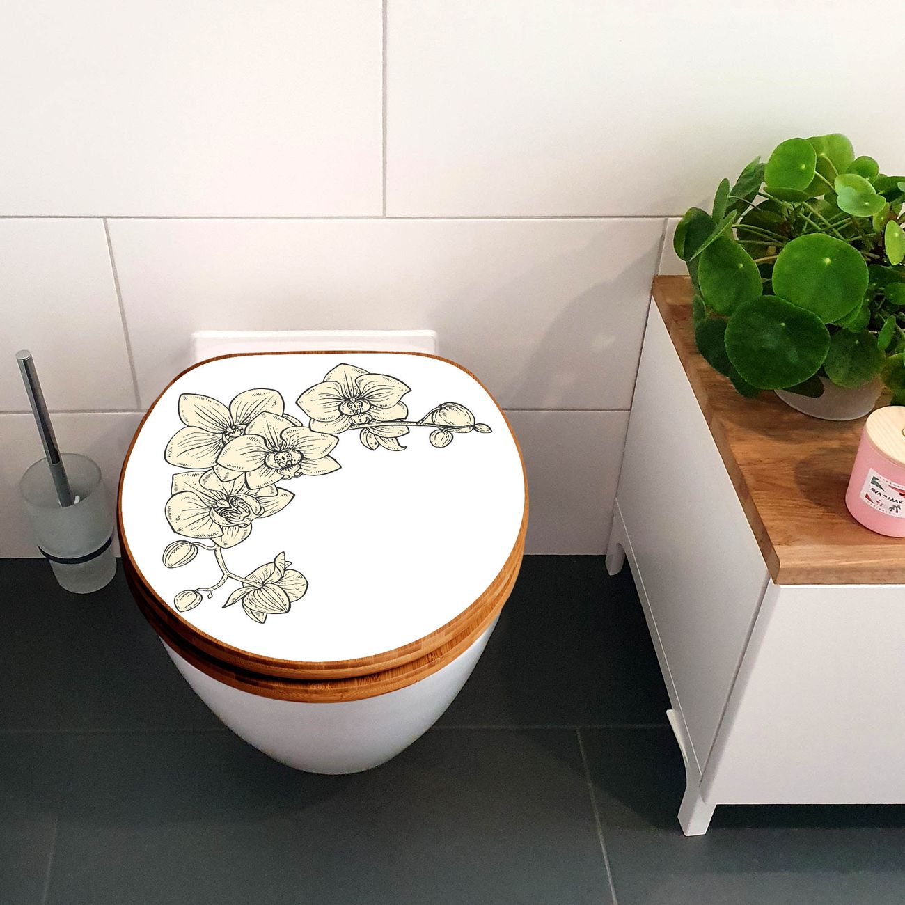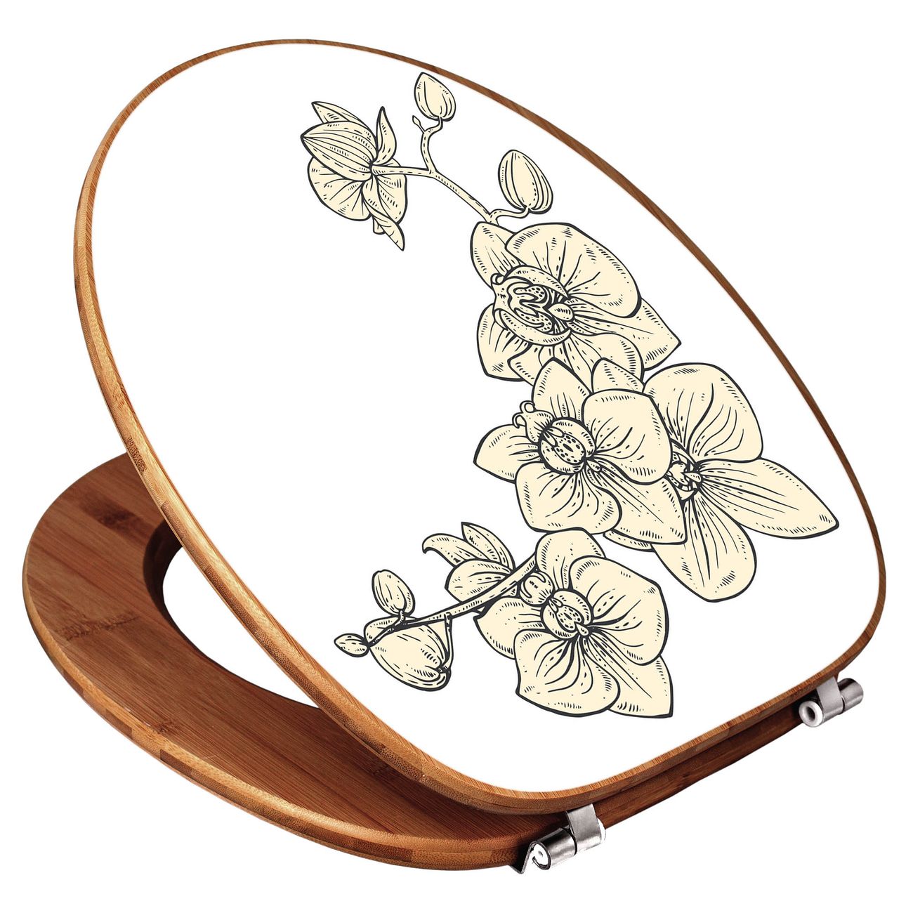 Design WC-Sitz Bambus Holz Motiv Orchideenzeichnung