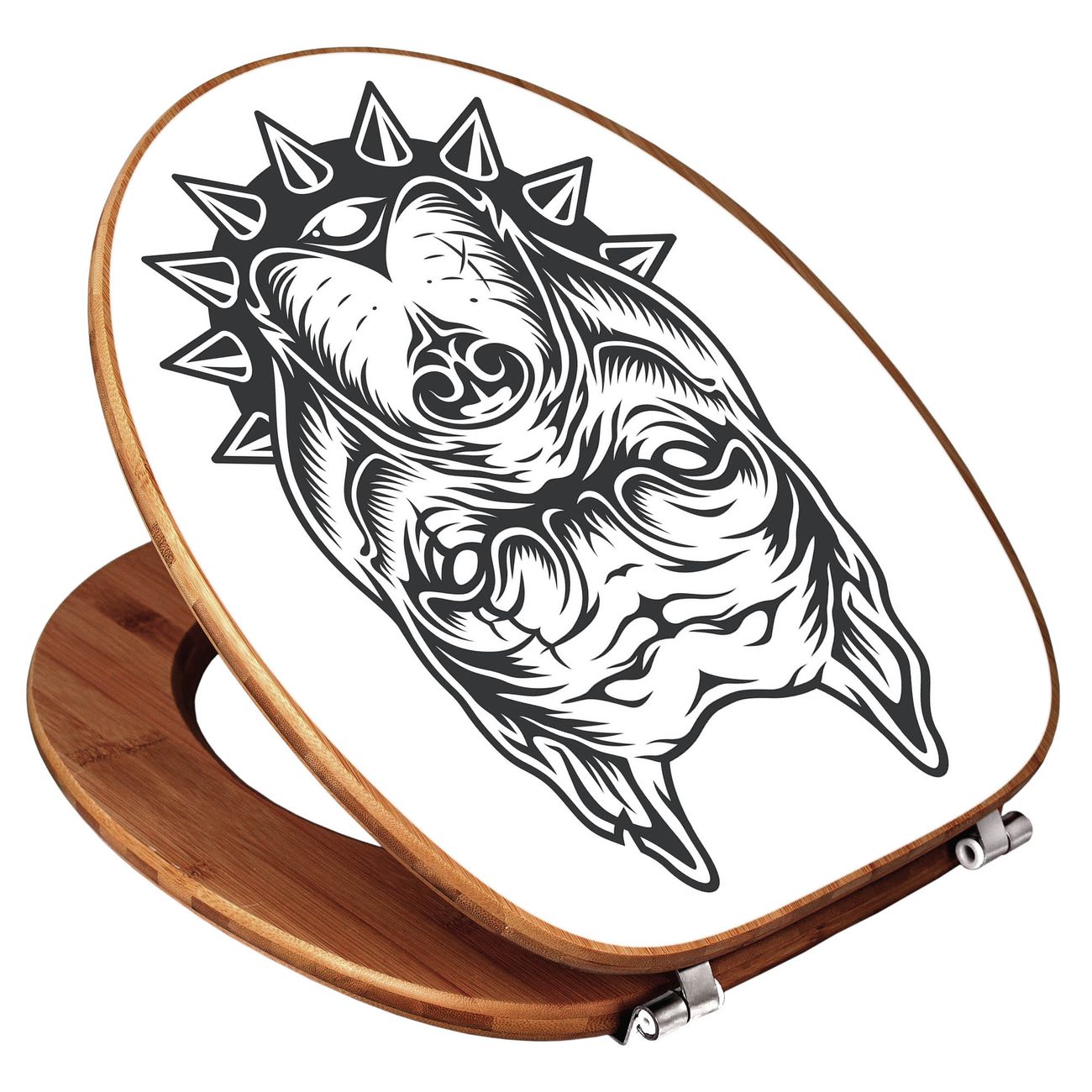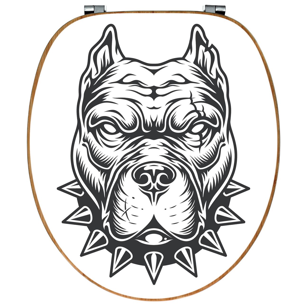 Design WC-Sitz Bambus Holz Motiv Pitbull Silhouette