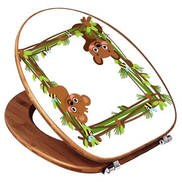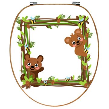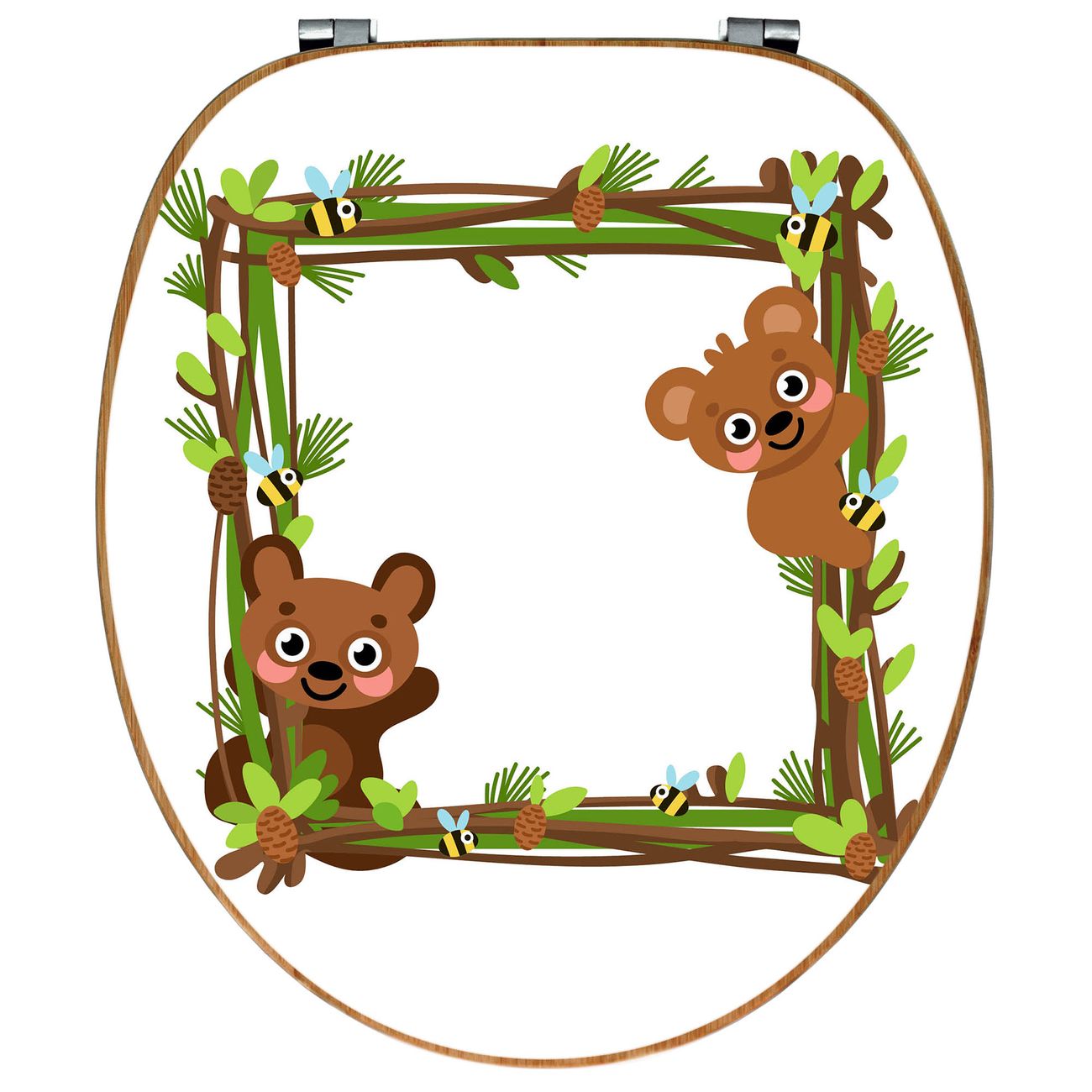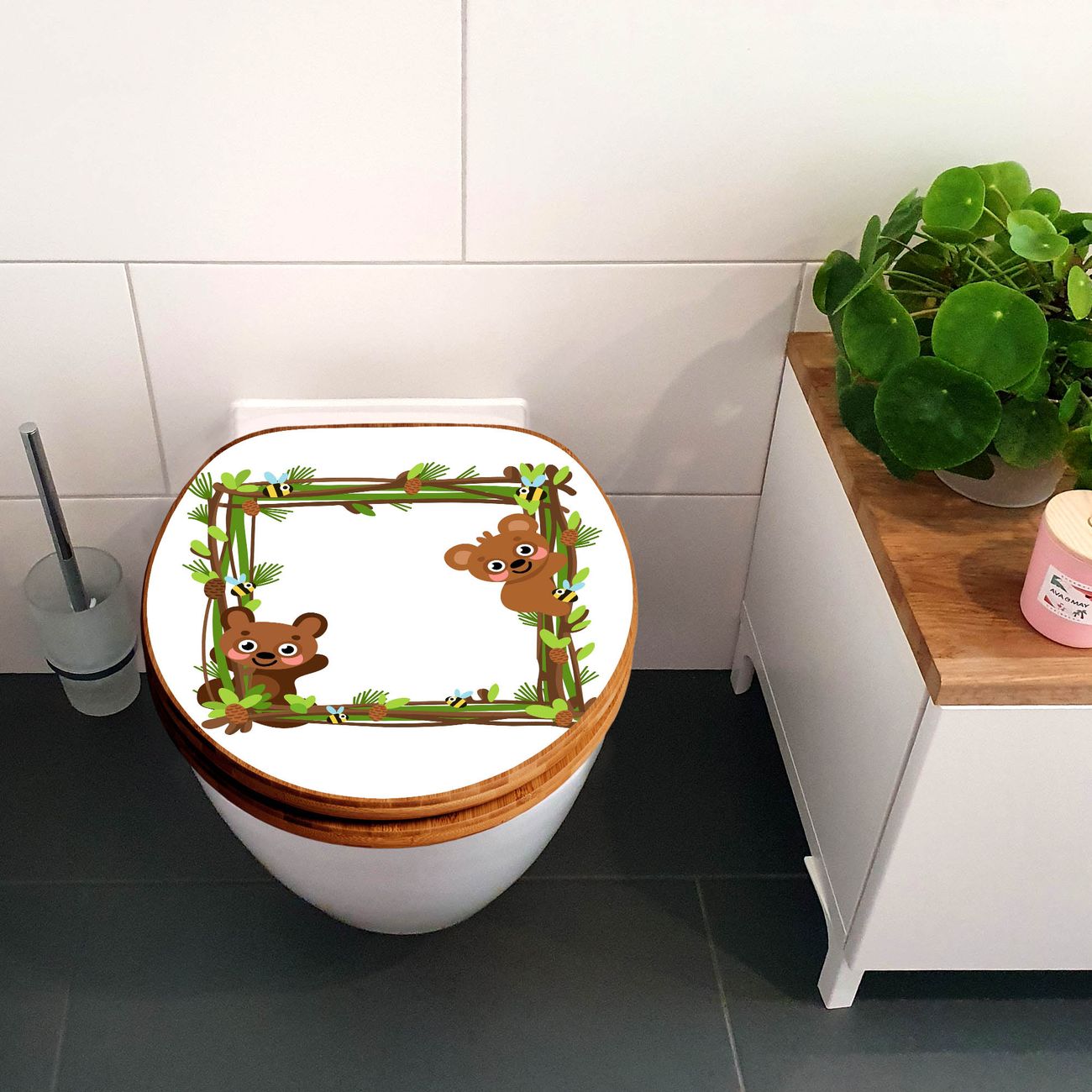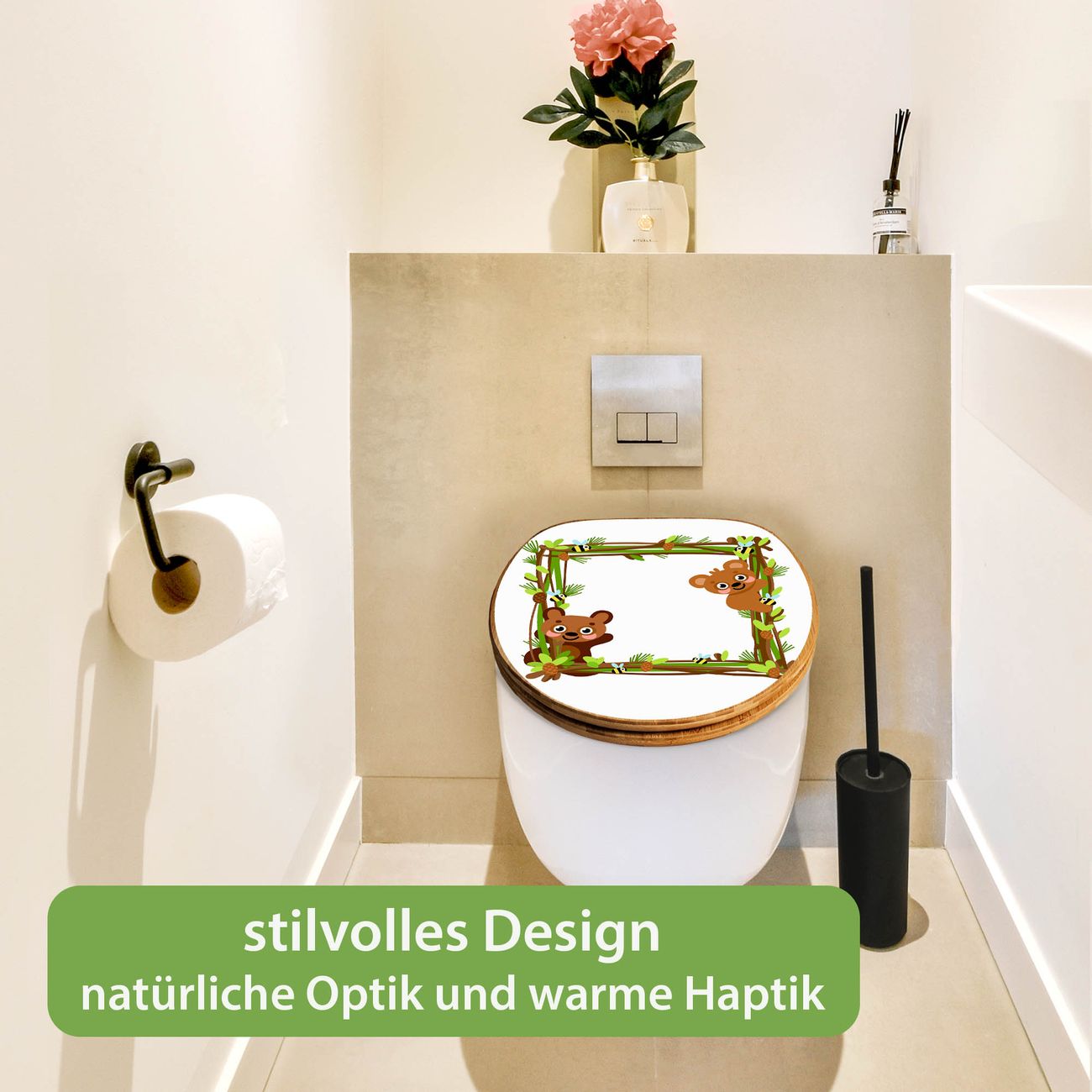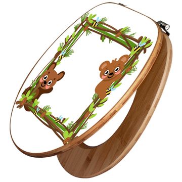 Design WC-Sitz Bambus Holz Motiv Rahmen Bären und Bienen