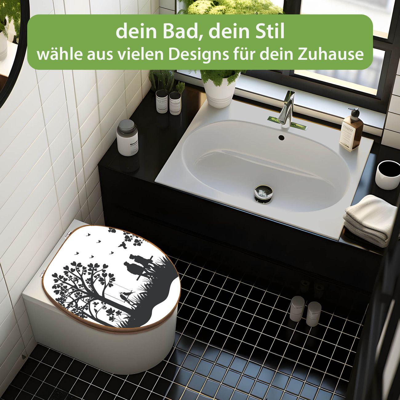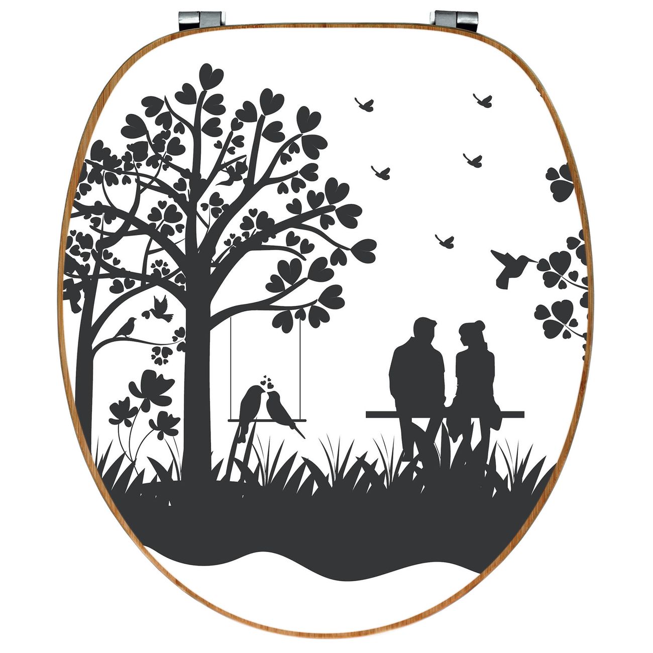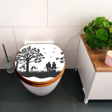 Design WC-Sitz Bambus Holz Motiv Romantische Silhouette im Park
